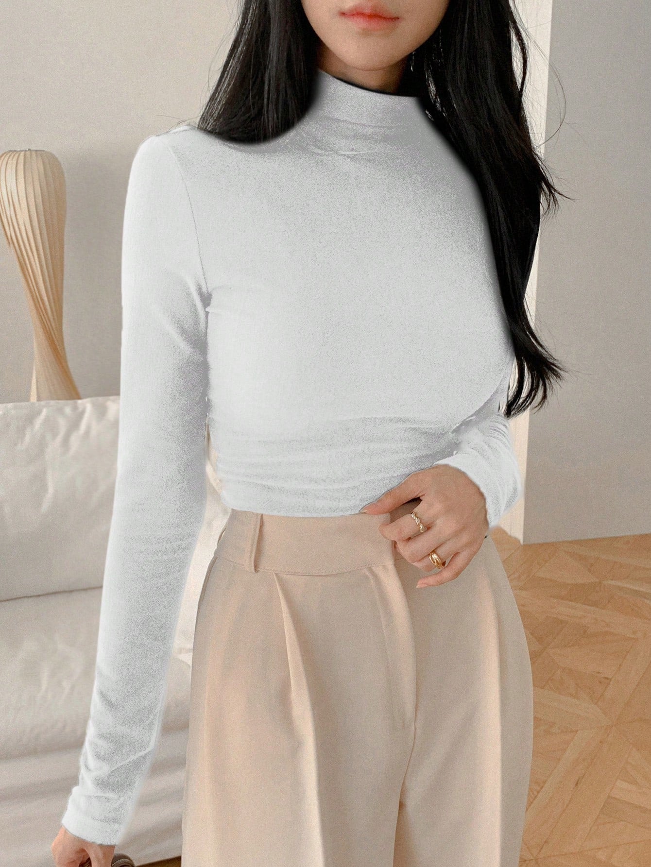 تيشيرت نسائي ضيق بياقة عالية من DAZY - مناسب للارتداء في المكتب