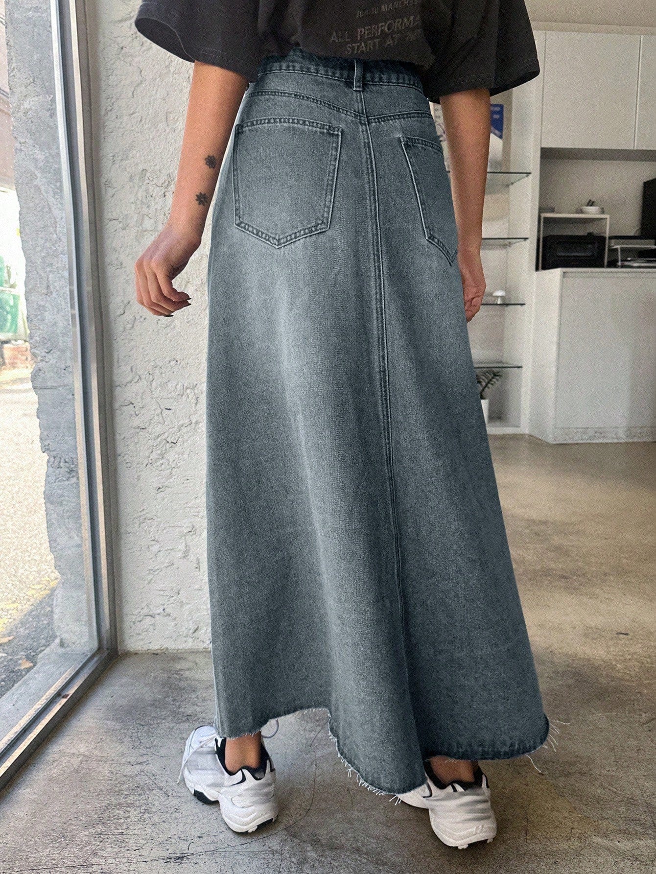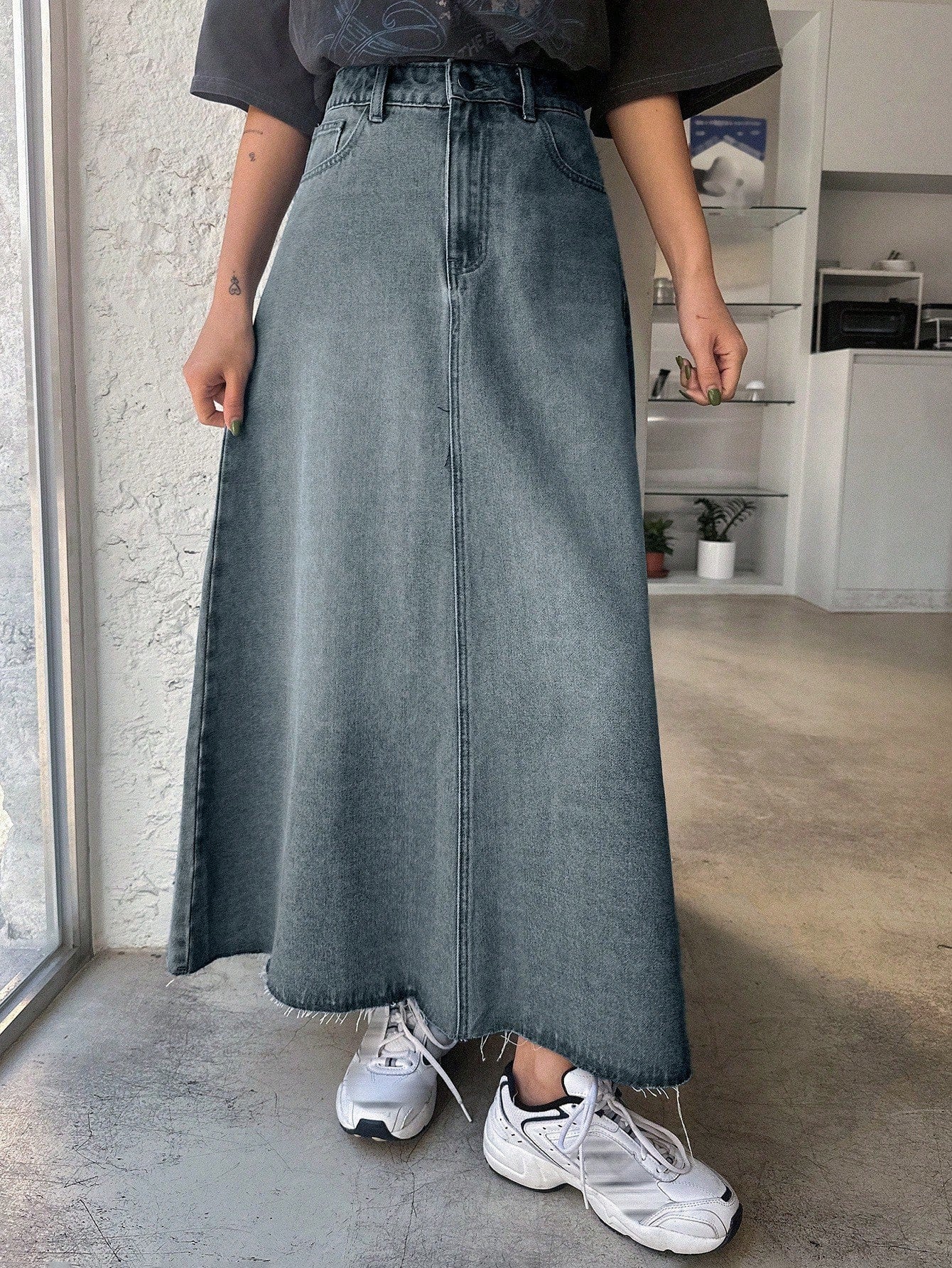 DAZY Women's Solid Color A-Line Skirt, Fashionable For Summer Jeans Skirt