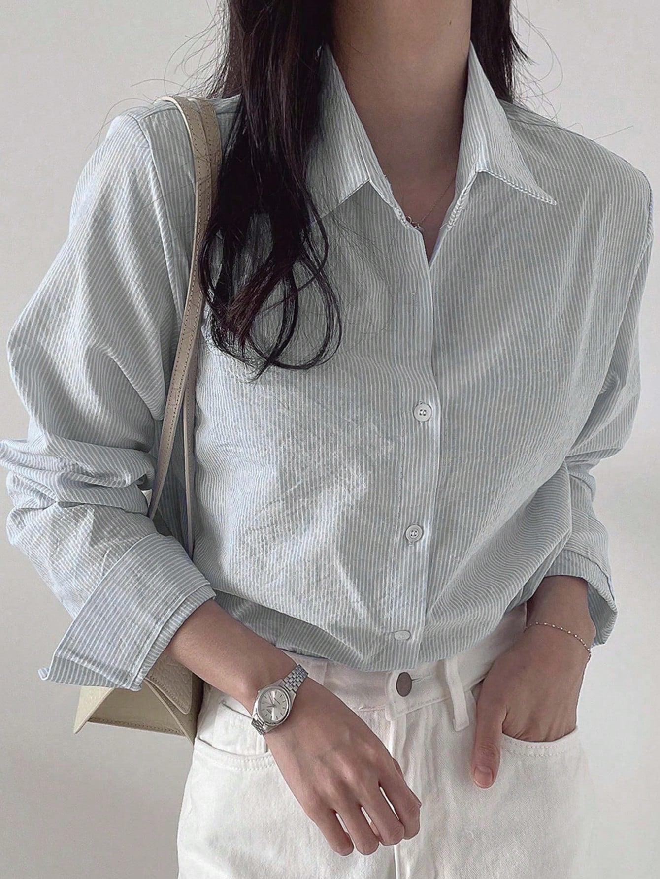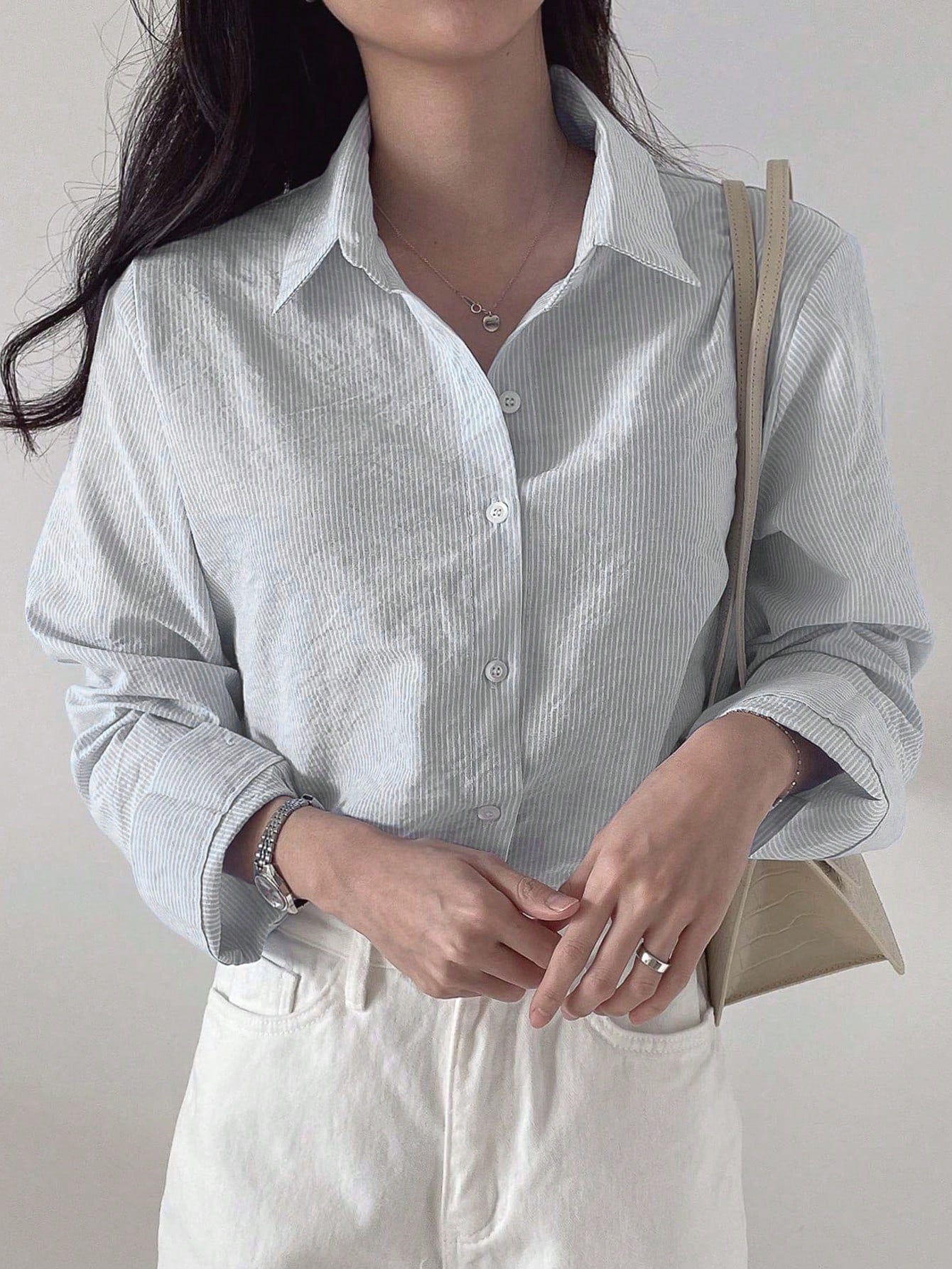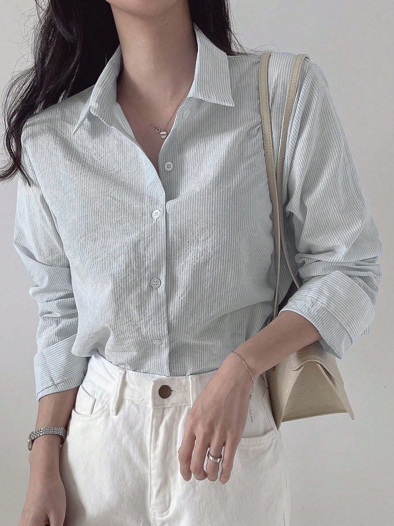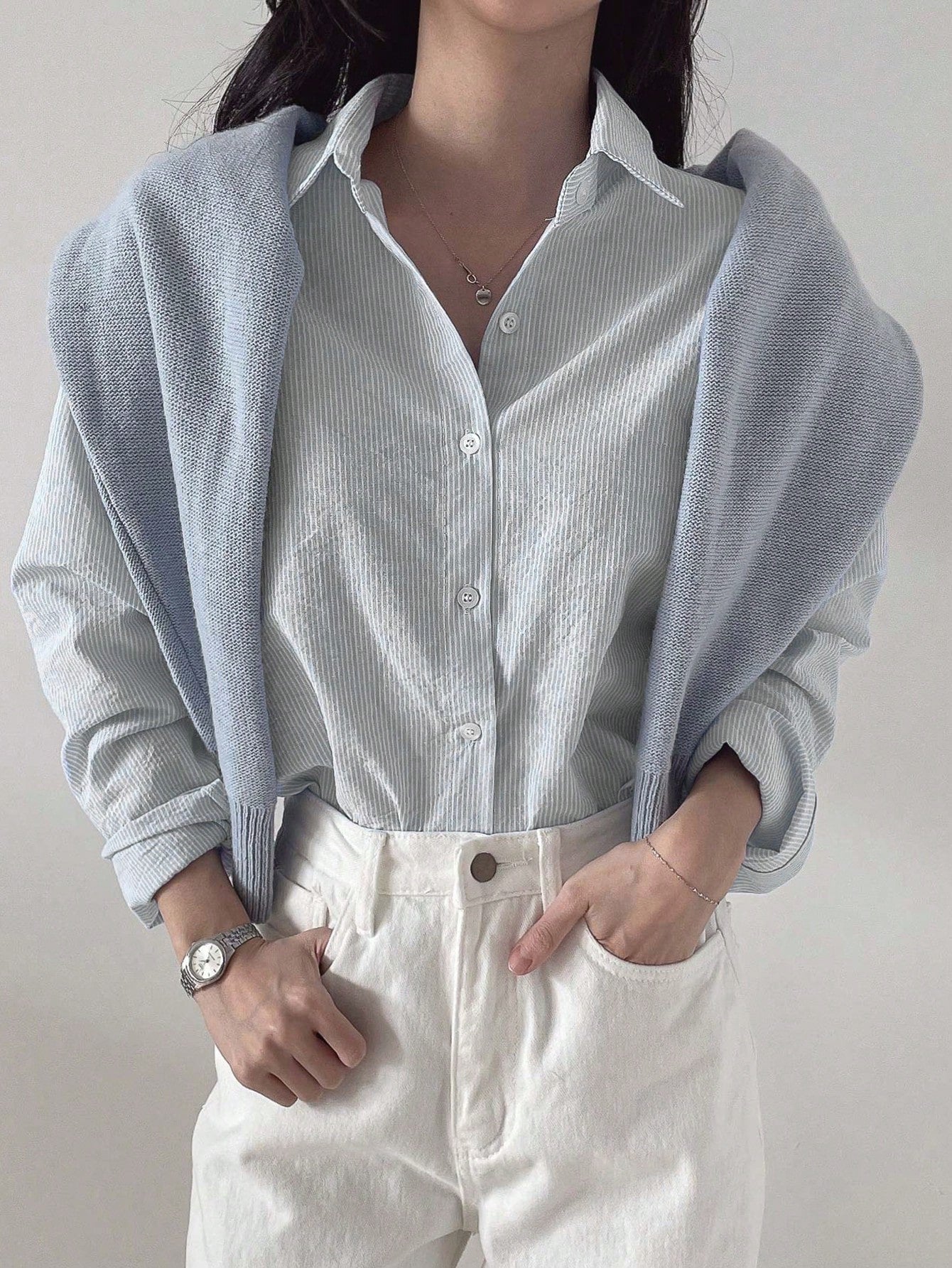 قميص نسائي بأكمام طويلة بلون موحد من DAZY