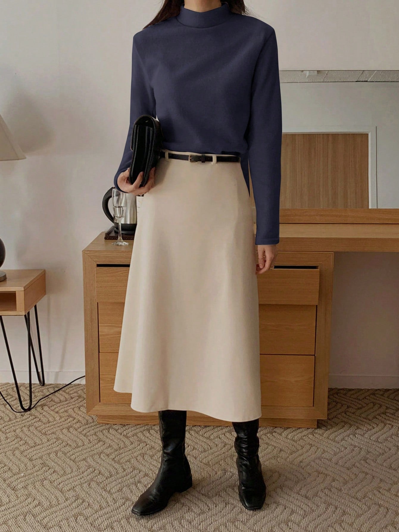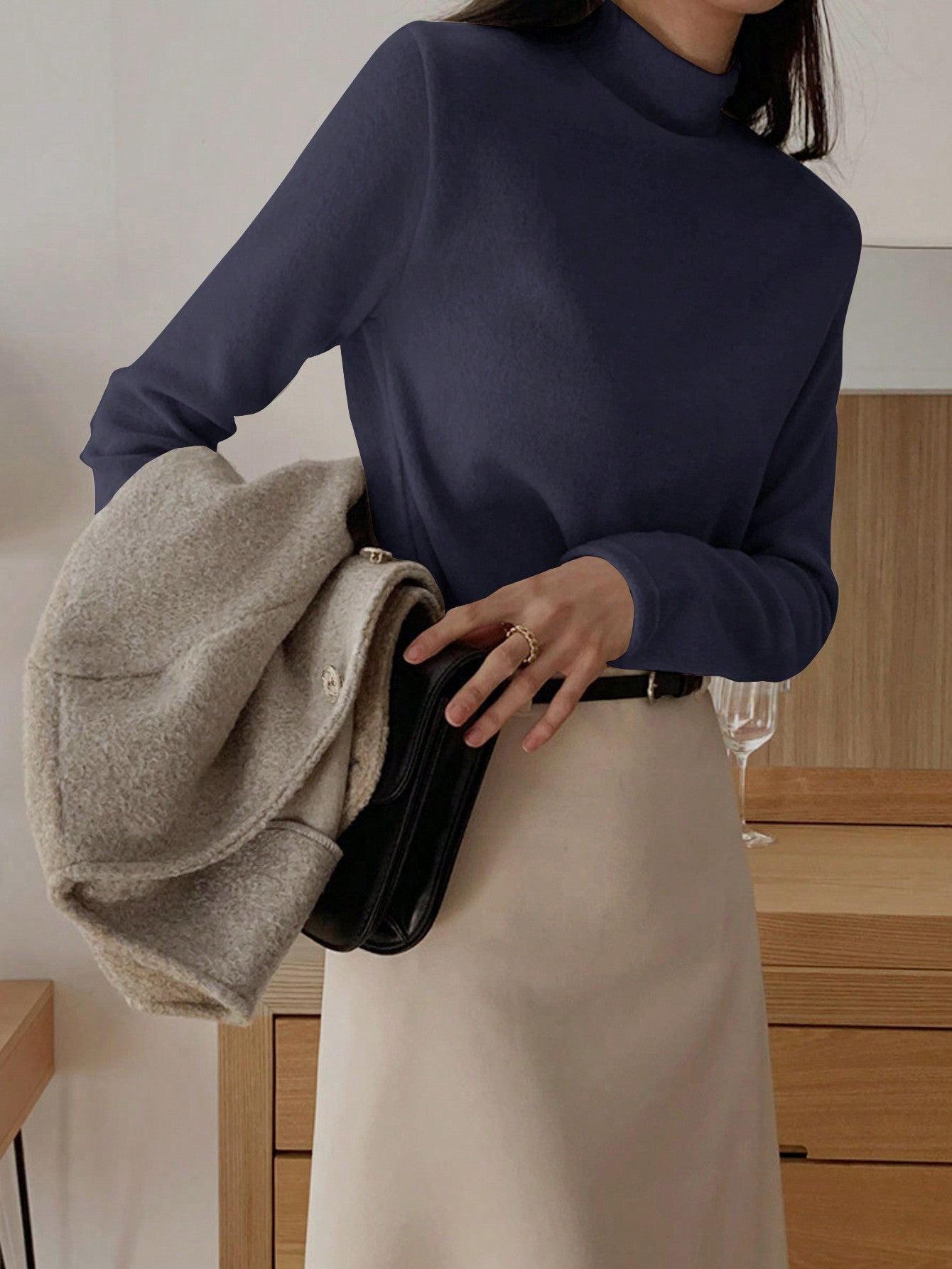 تيشيرت نسائي سادة بأكمام طويلة وياقة واقفة من DAZY