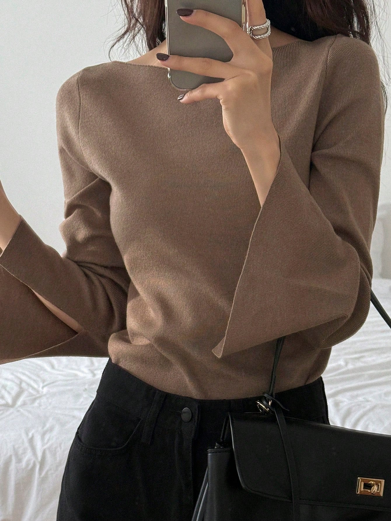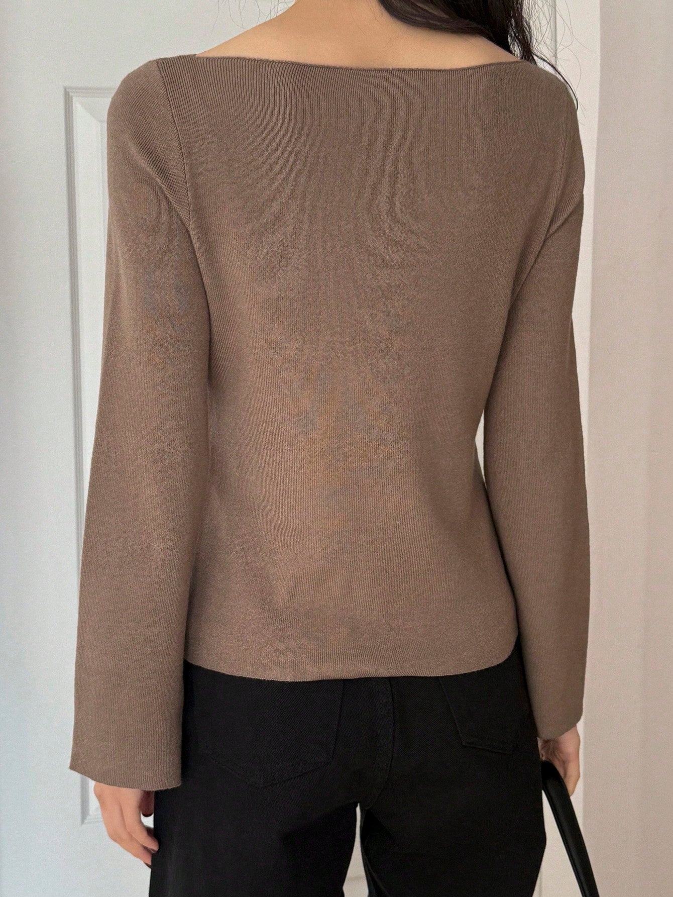 كنزة نسائية مخططة بياقة قارب وأكمام واسعة وقصة ضيقة من DAZY