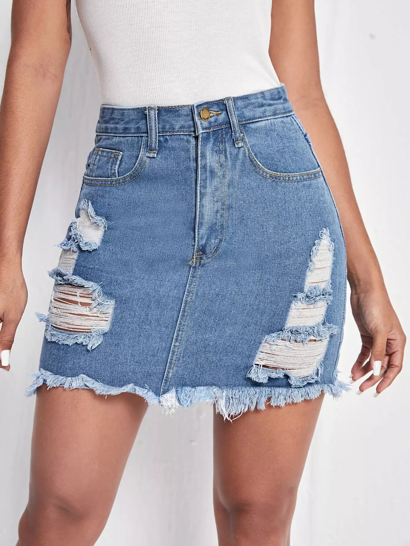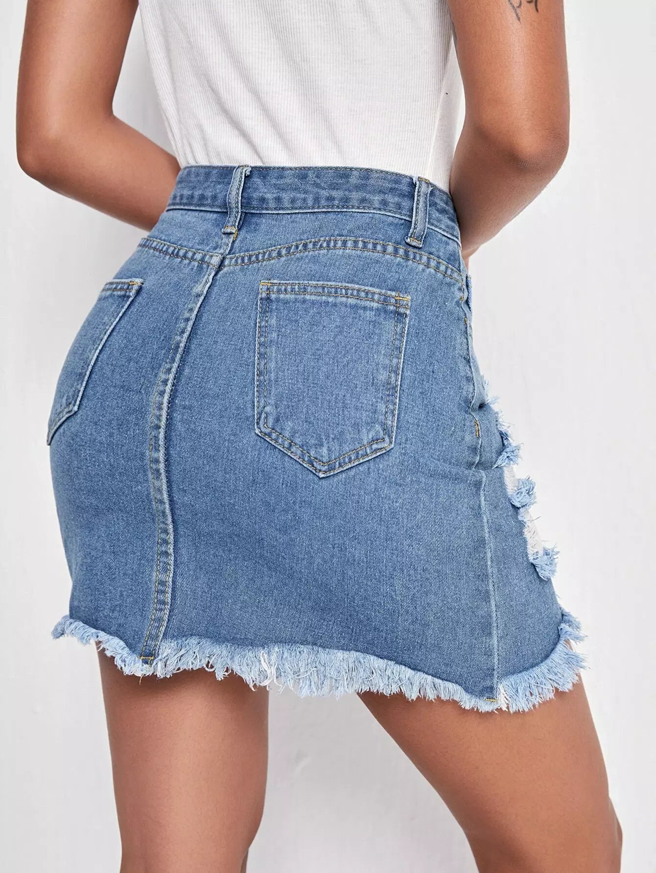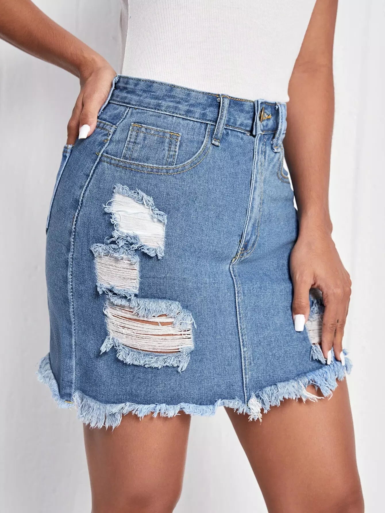 تنورة قصيرة من الدنيم عالية الخصر ممزقة