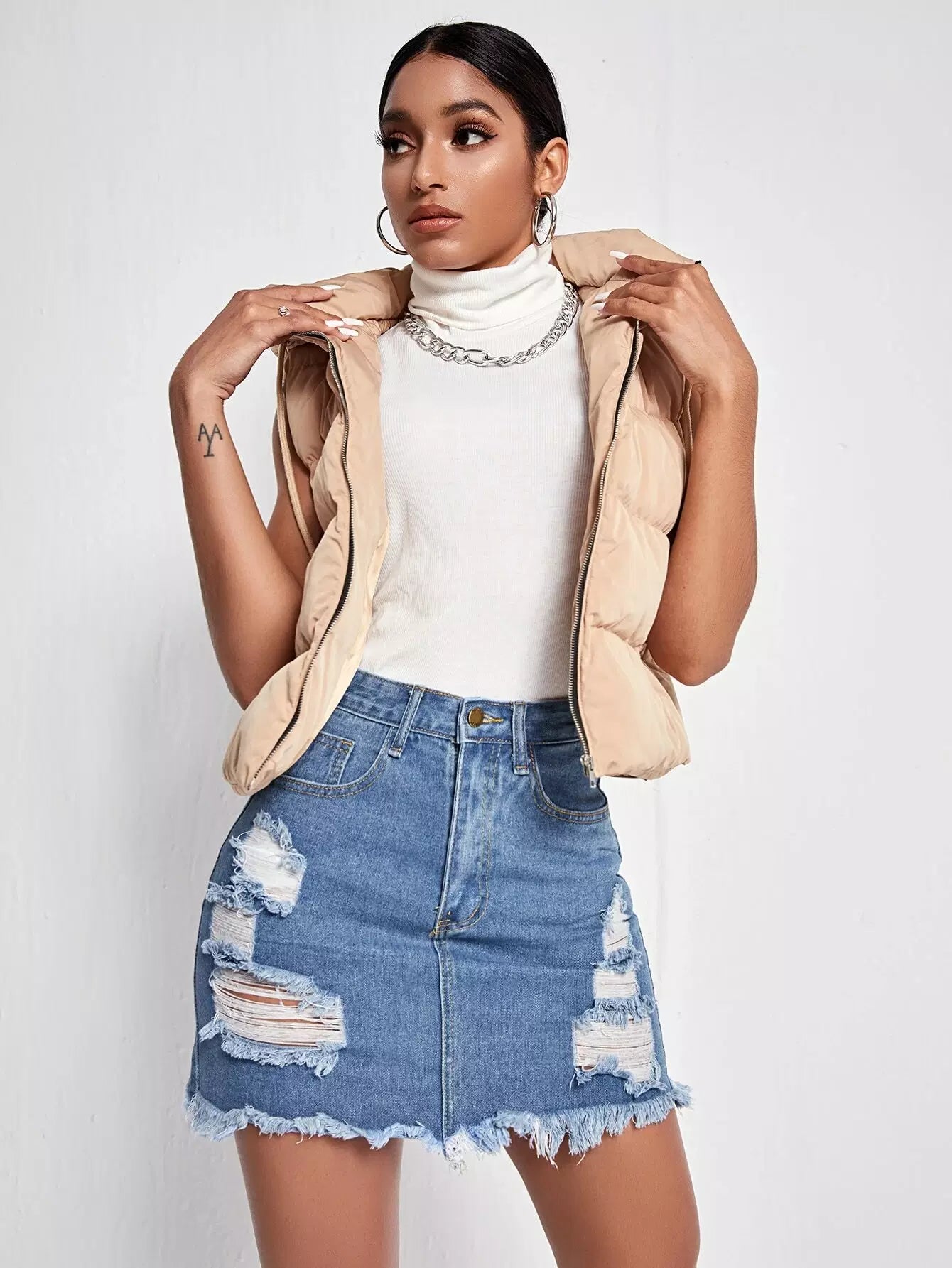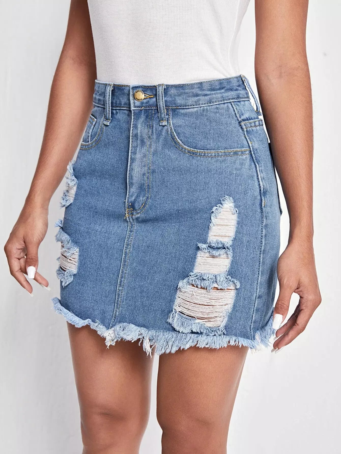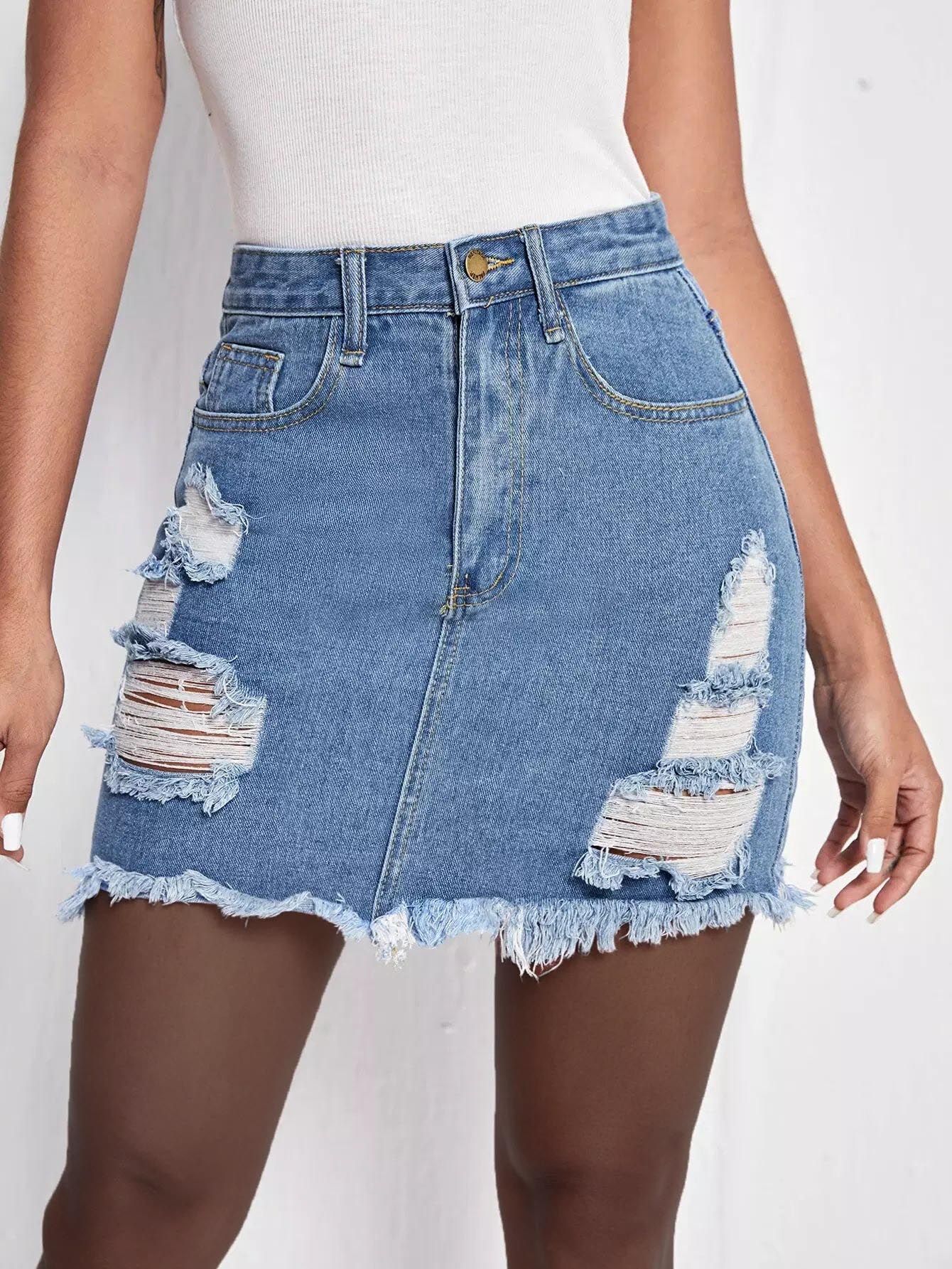 تنورة قصيرة من الدنيم عالية الخصر ممزقة