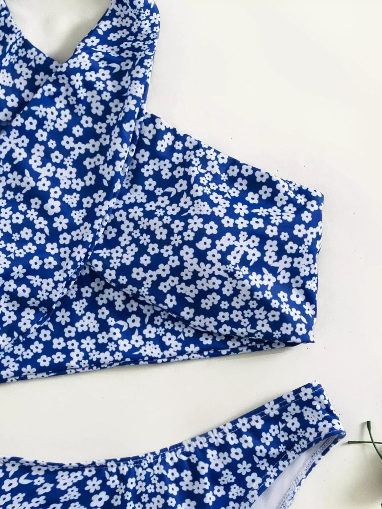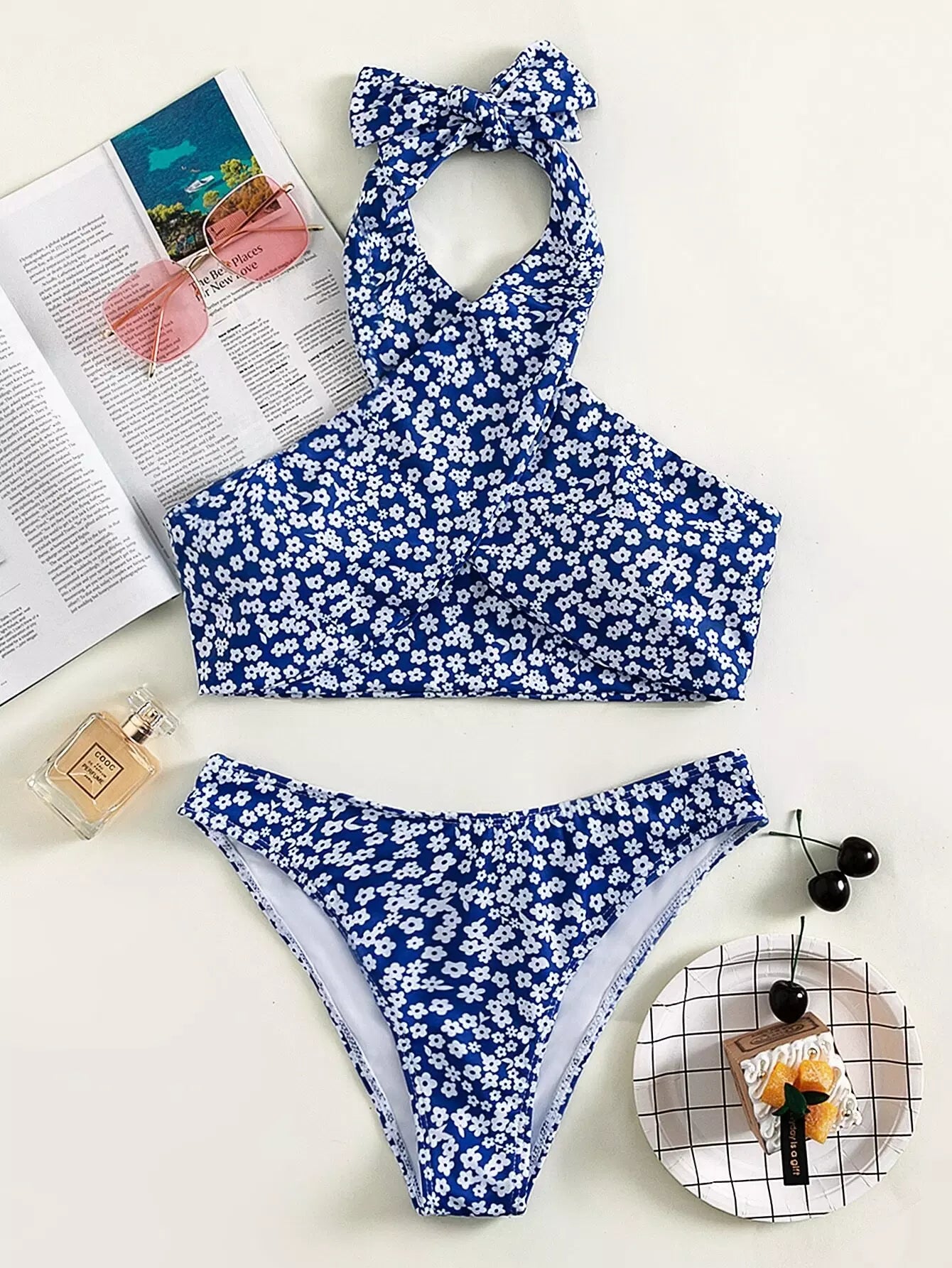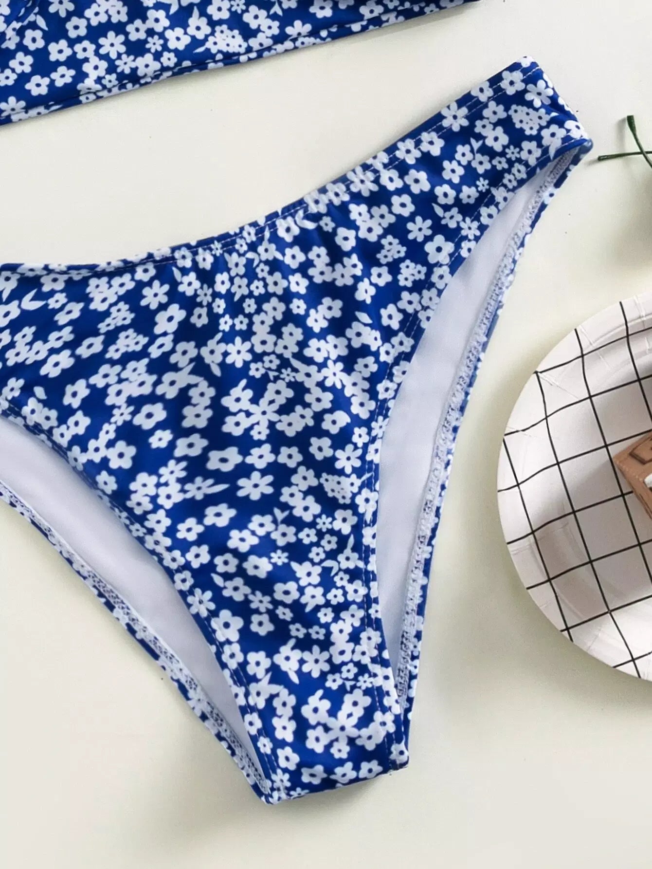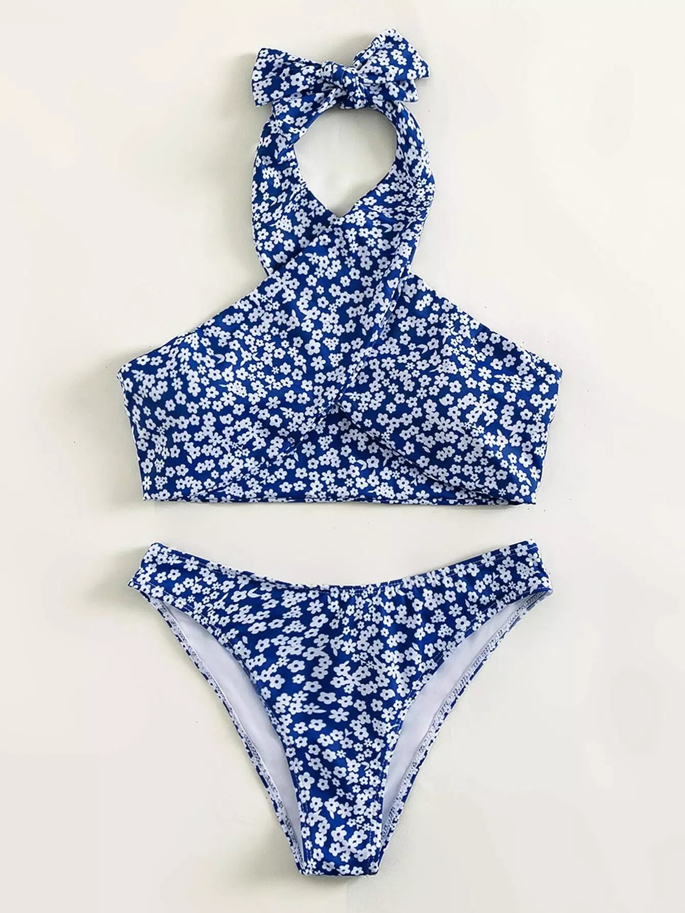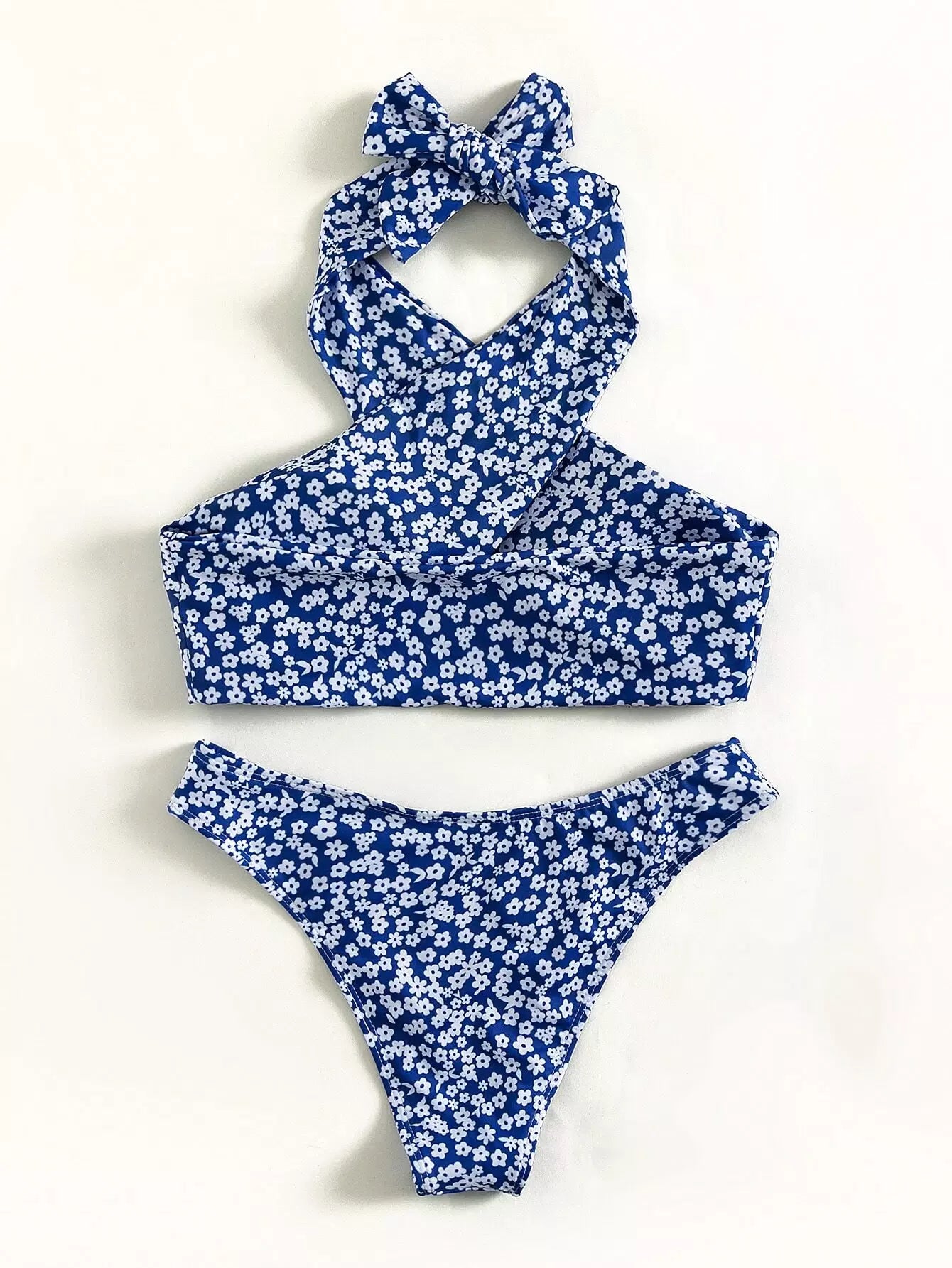 مايوه سباحة بيكيني بقصّة عالية بفتحة عالية مزين بالزهور المتقاطعة
