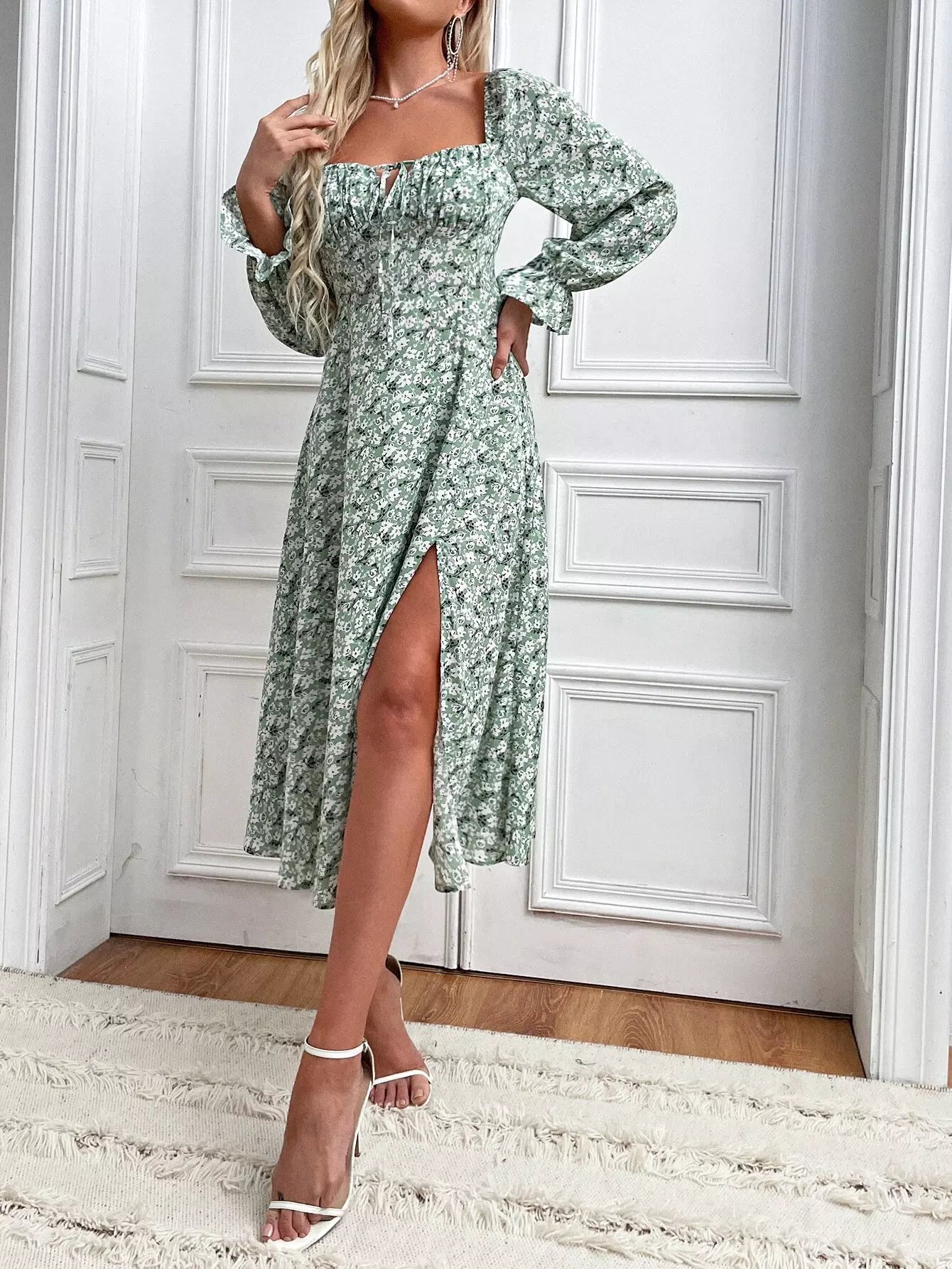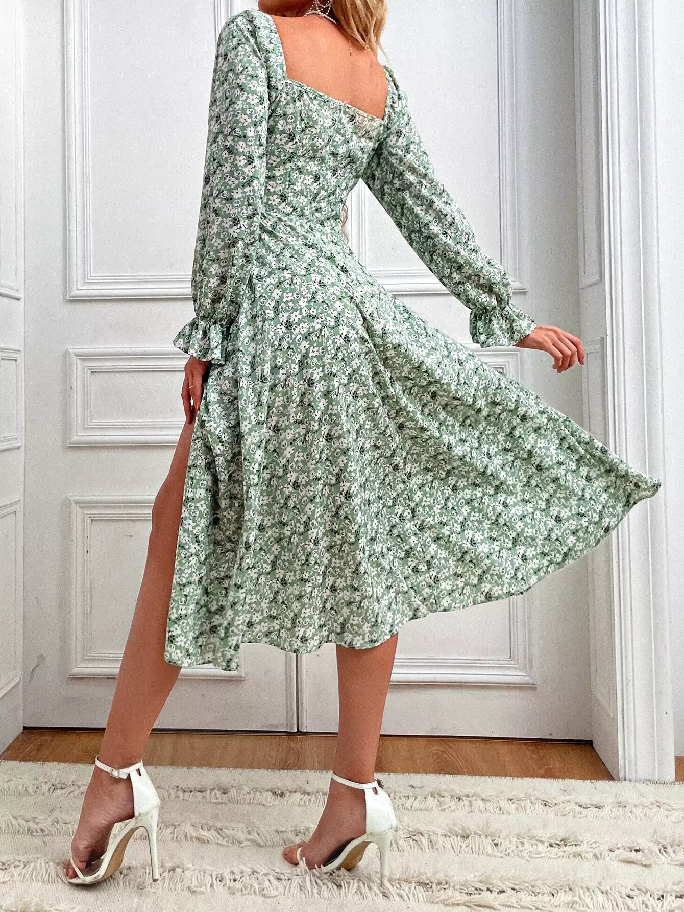 فستان ديتسي بطبعة زهور بطبعة زهور منقسمة على الفخذين