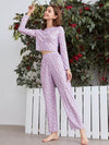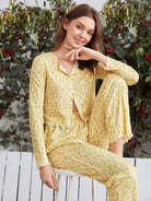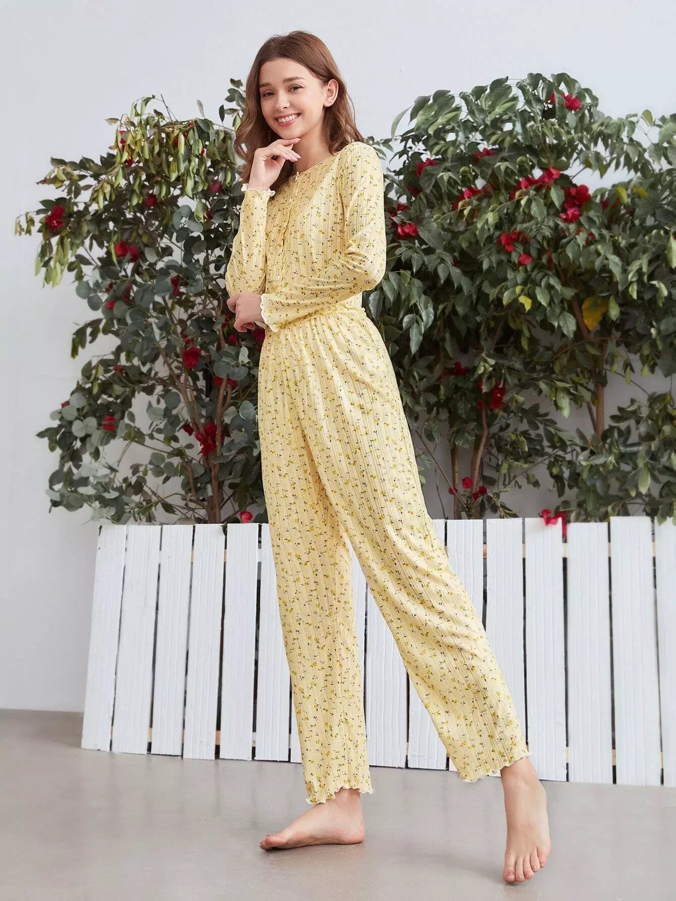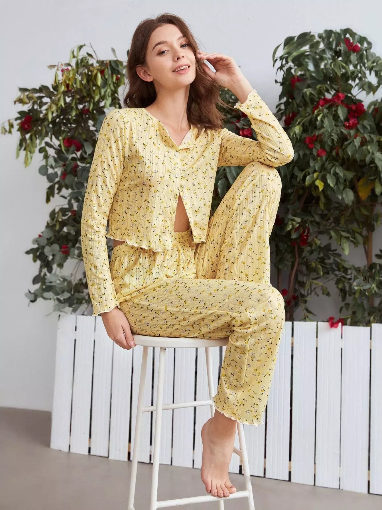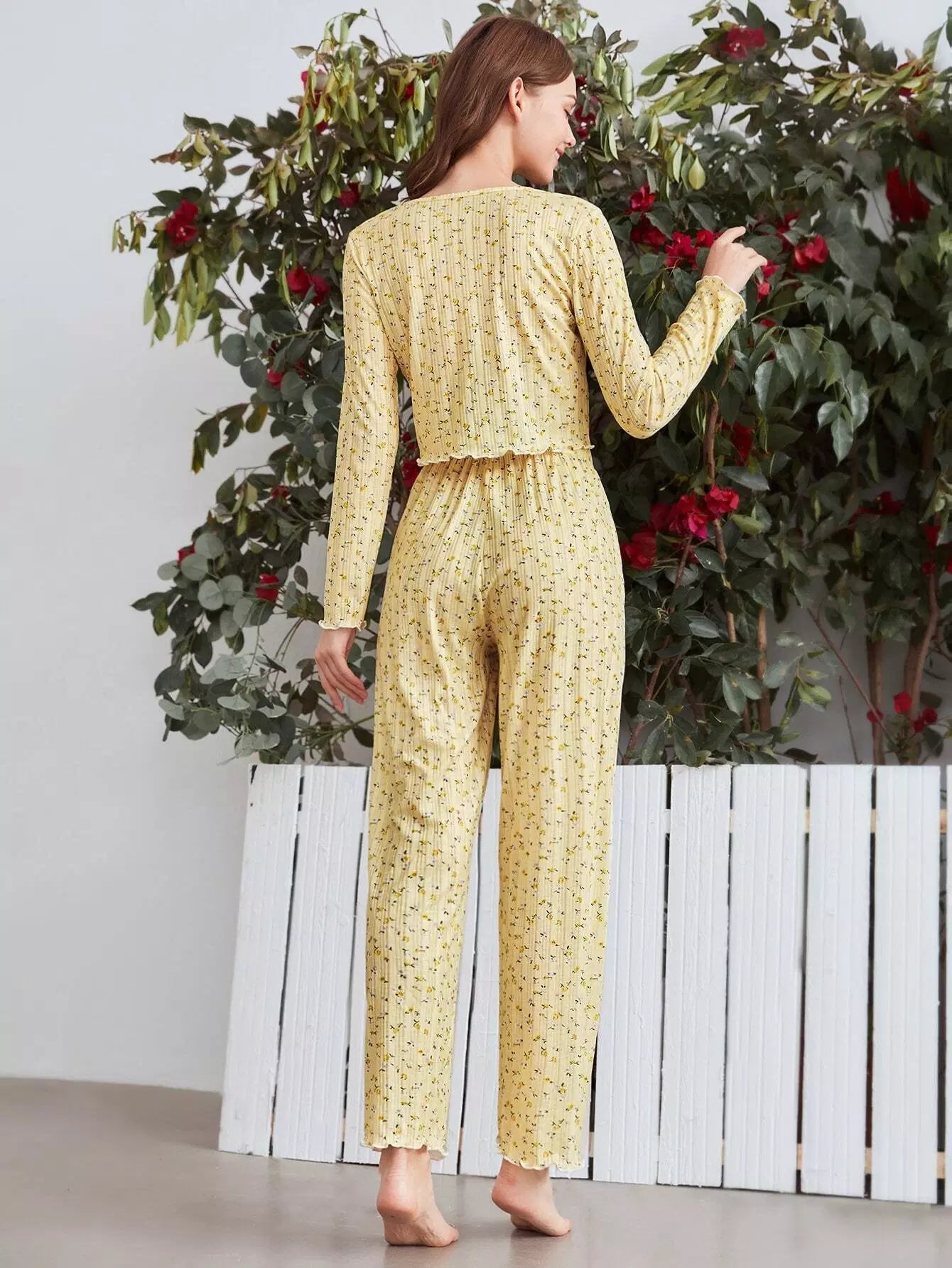 طقم بيجامة ديتسي مزين بنقشة زهور متماسكة على شكل ضلع
