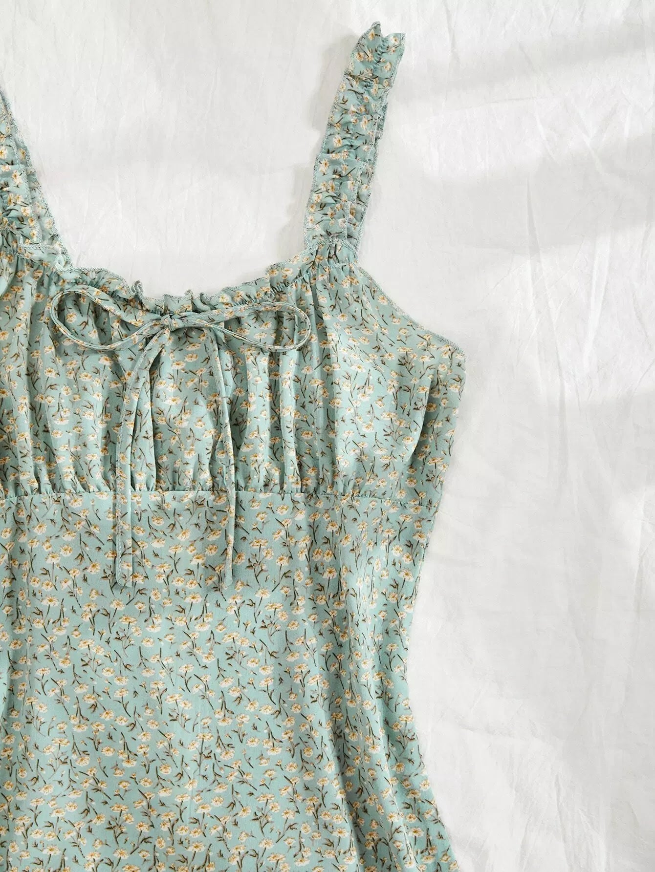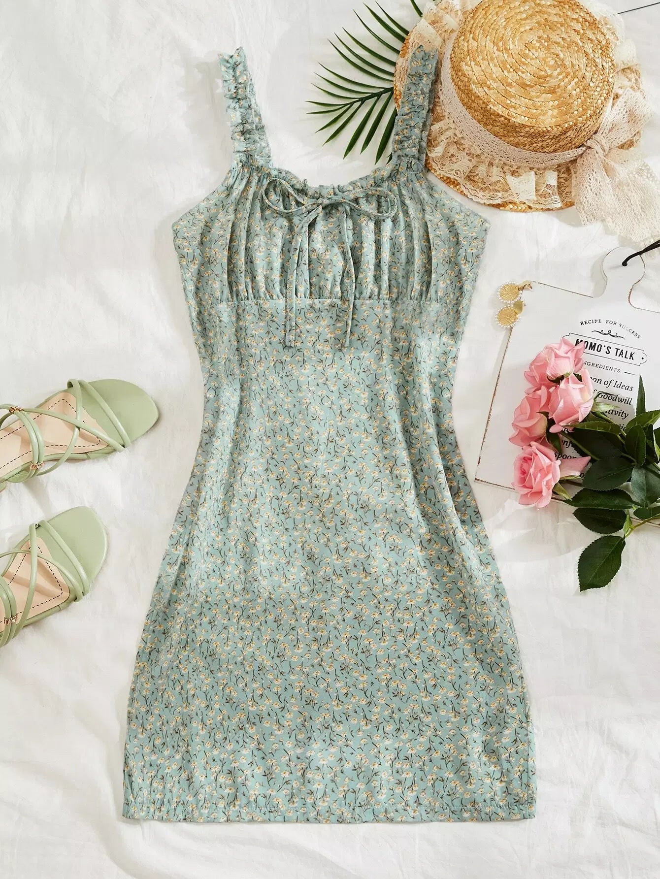 فستان ديتسي مزين بالورود ومزخرف عند الصدر
