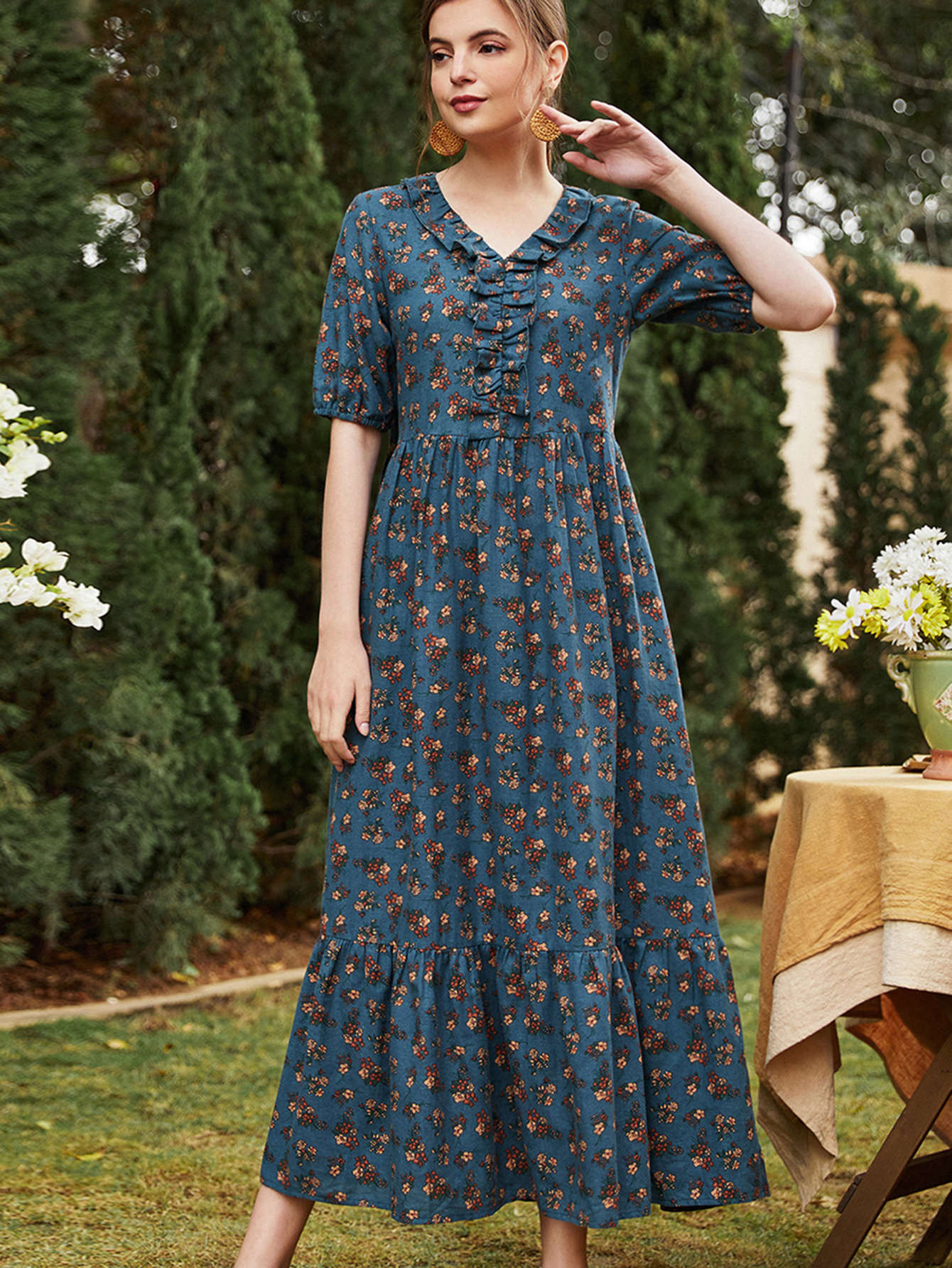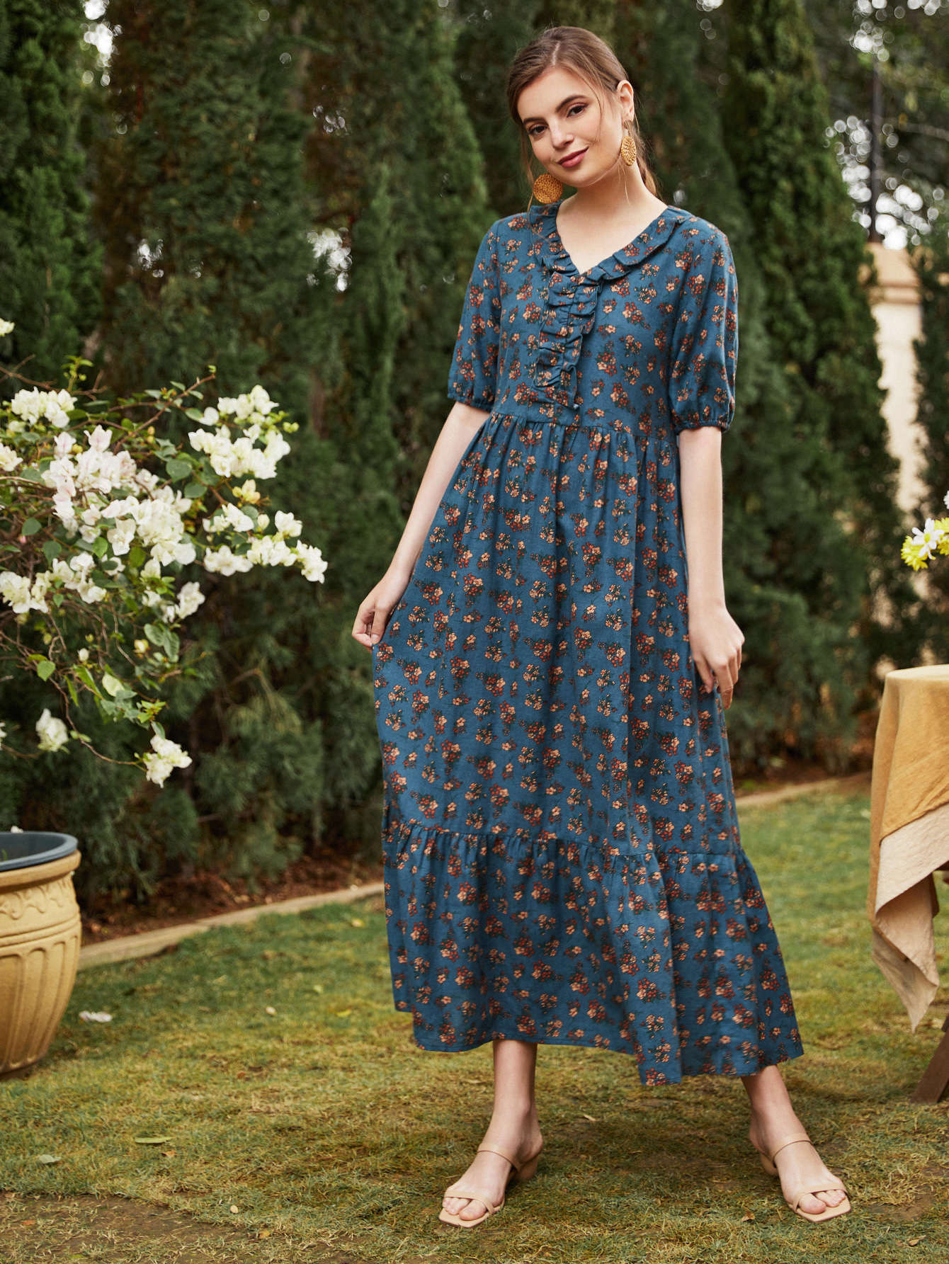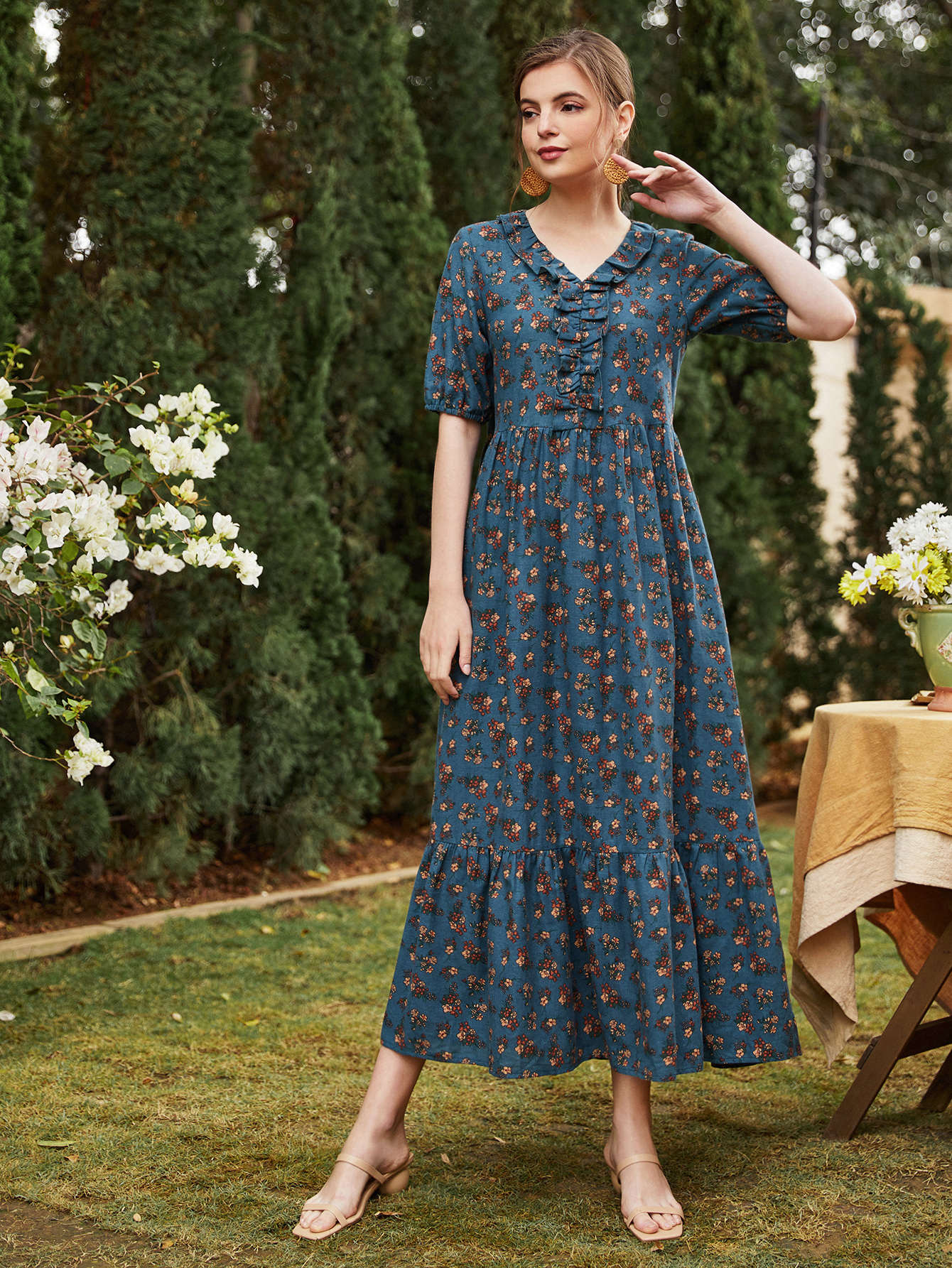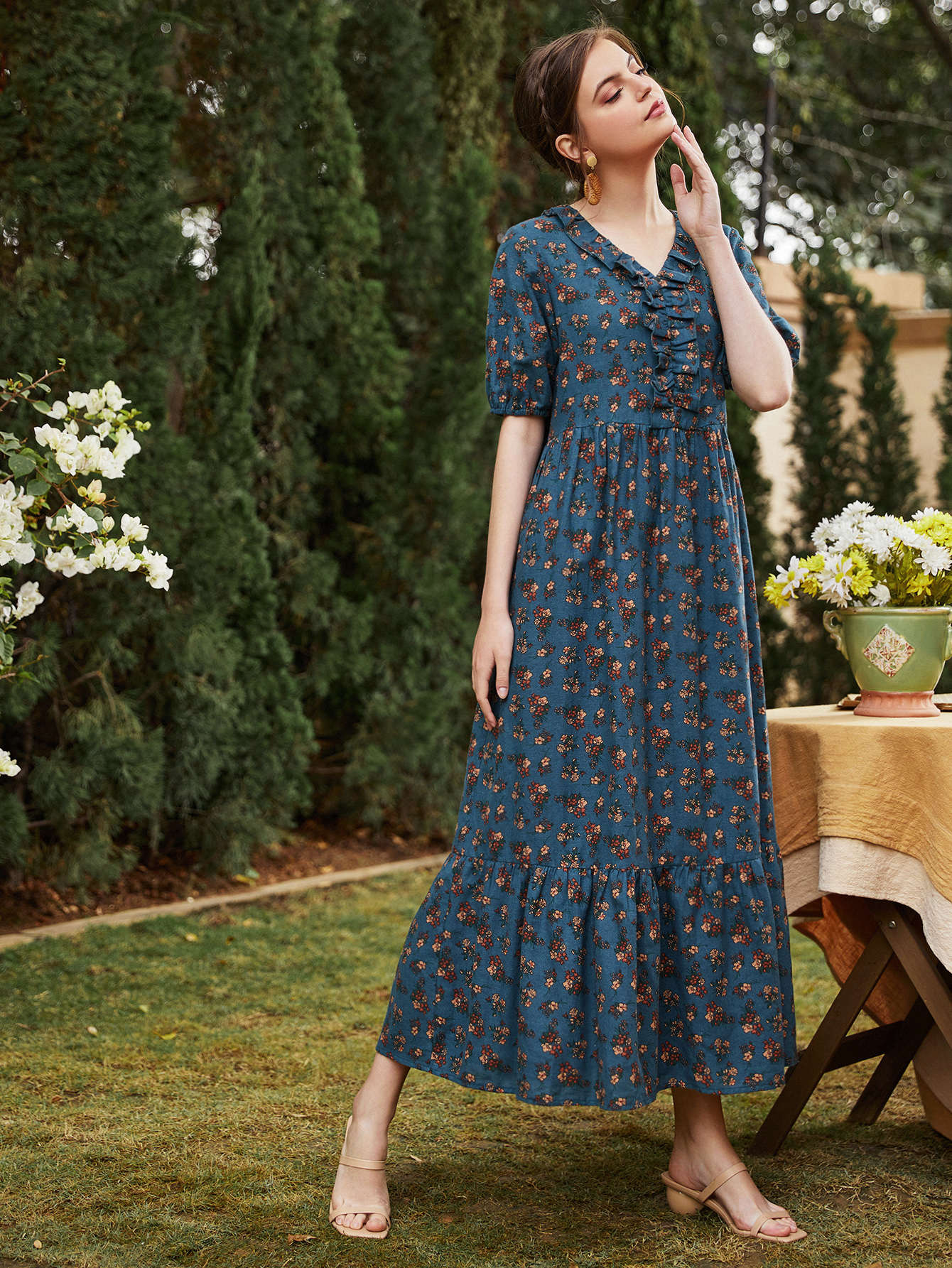 Ditsy Floral Ruffle Hem Dress