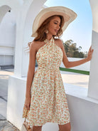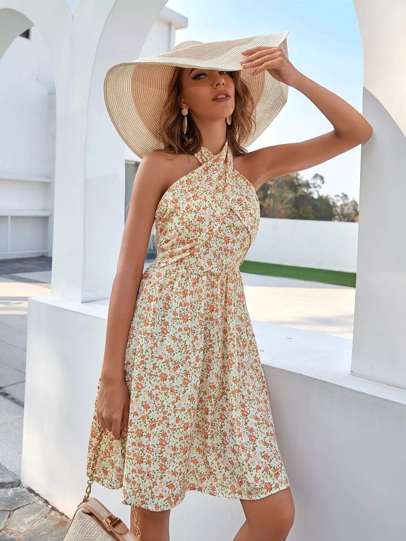 فستان ديتسي زهري بظهر مجعد وقصة متقاطعة
