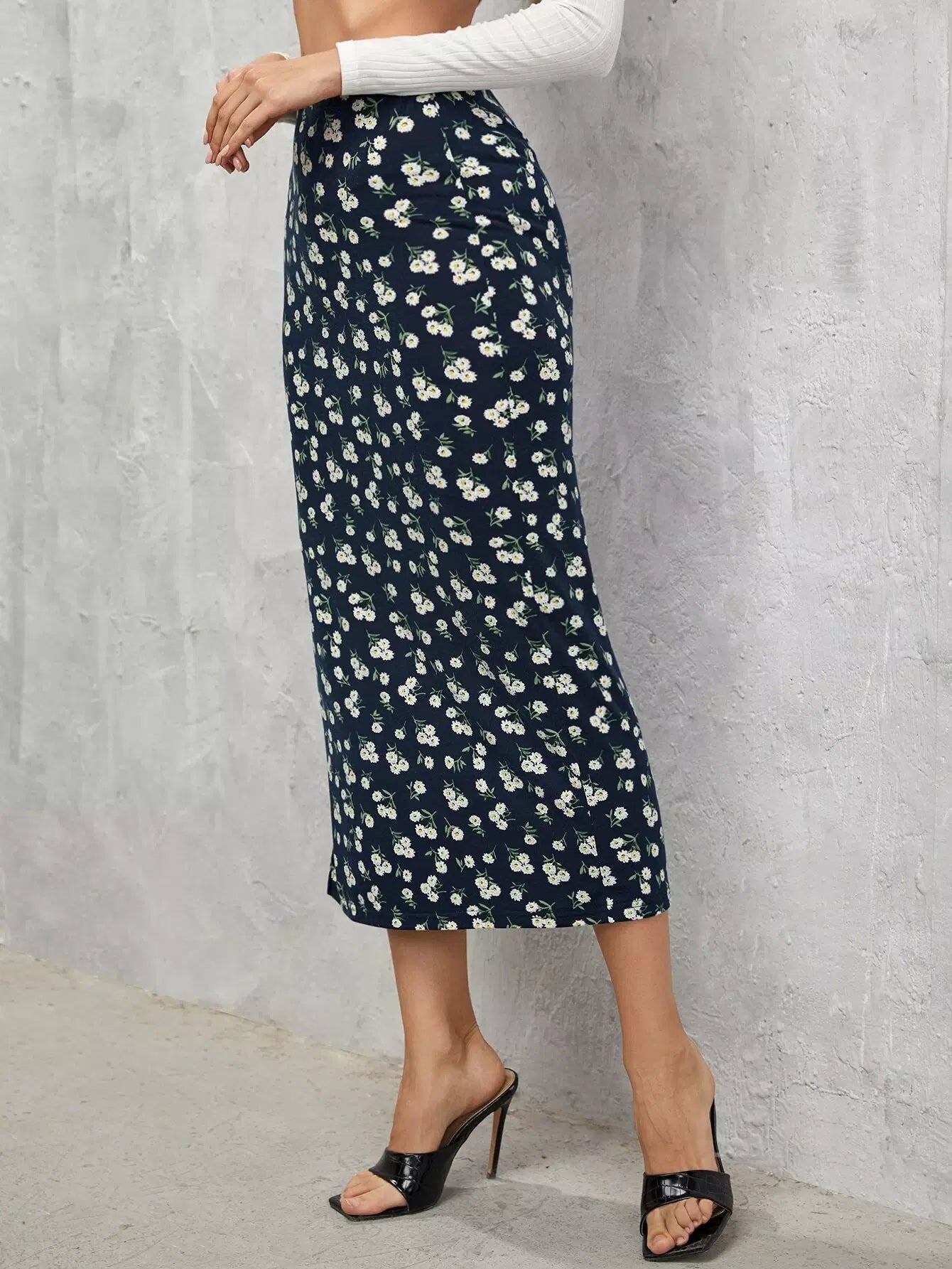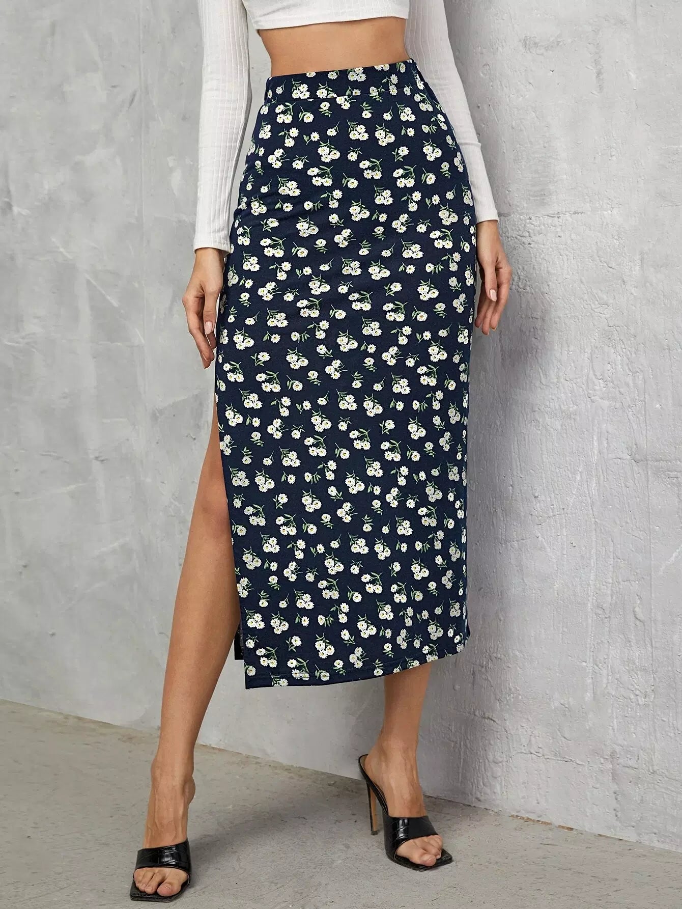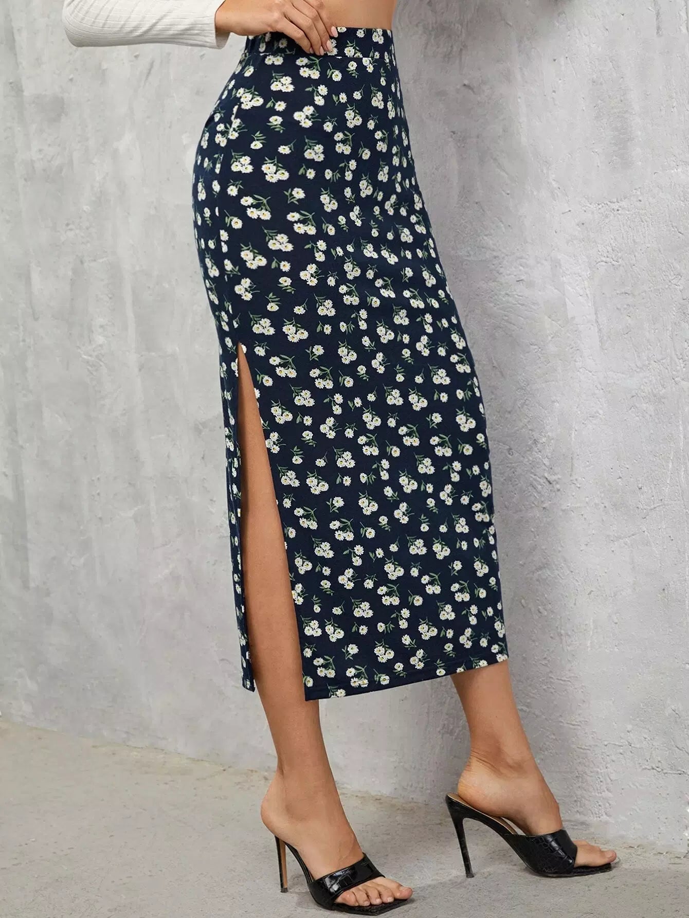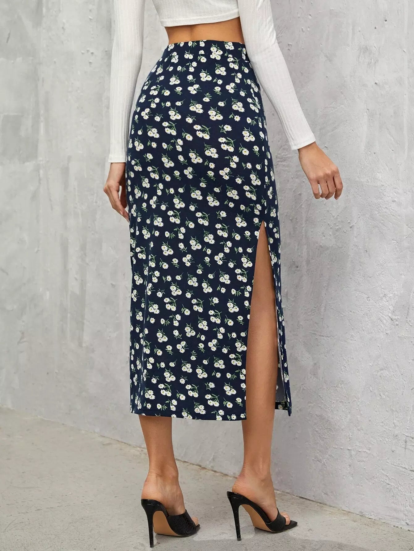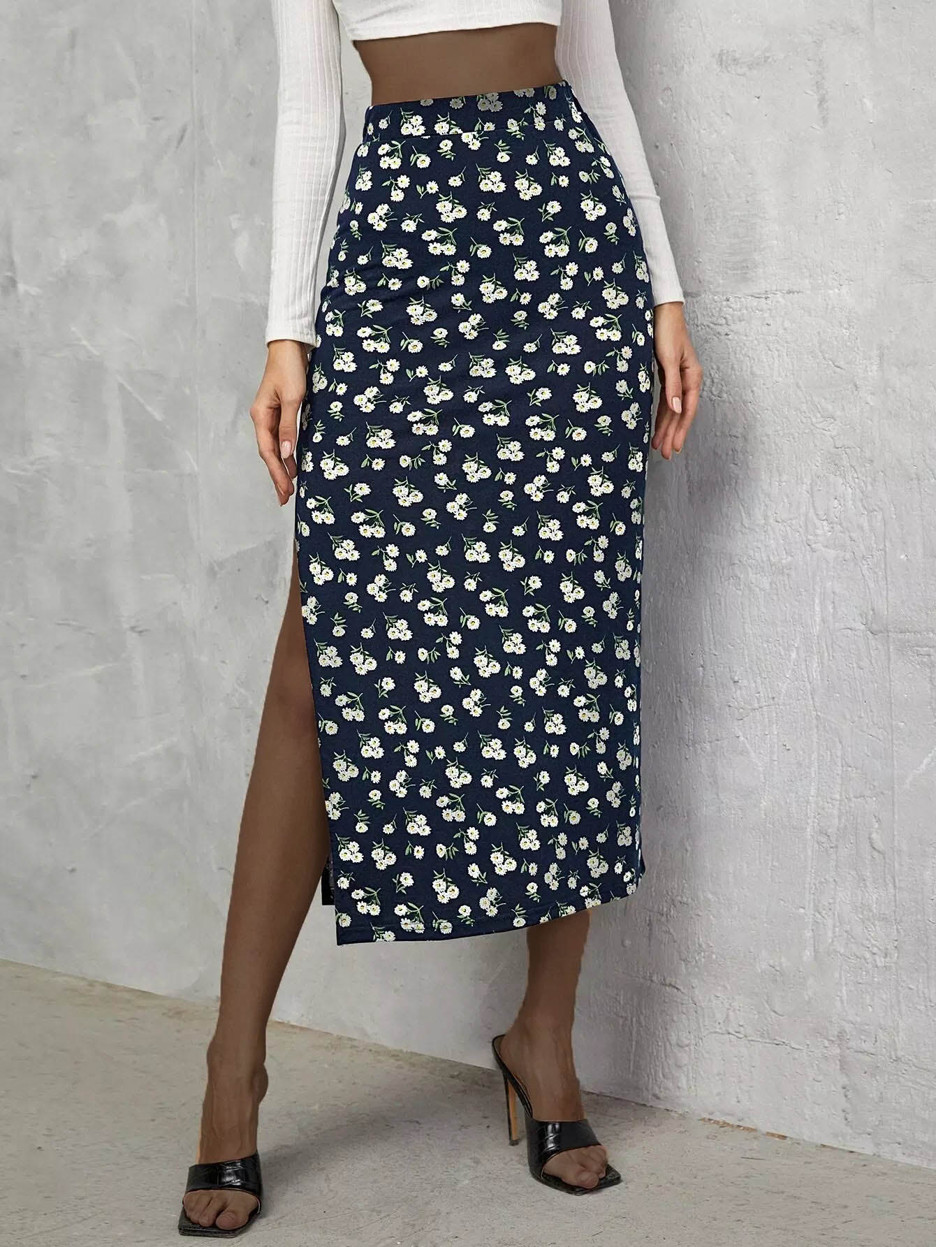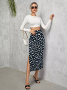 تنورة مزينة بالزهور الصغيرة حتى الفخذ
