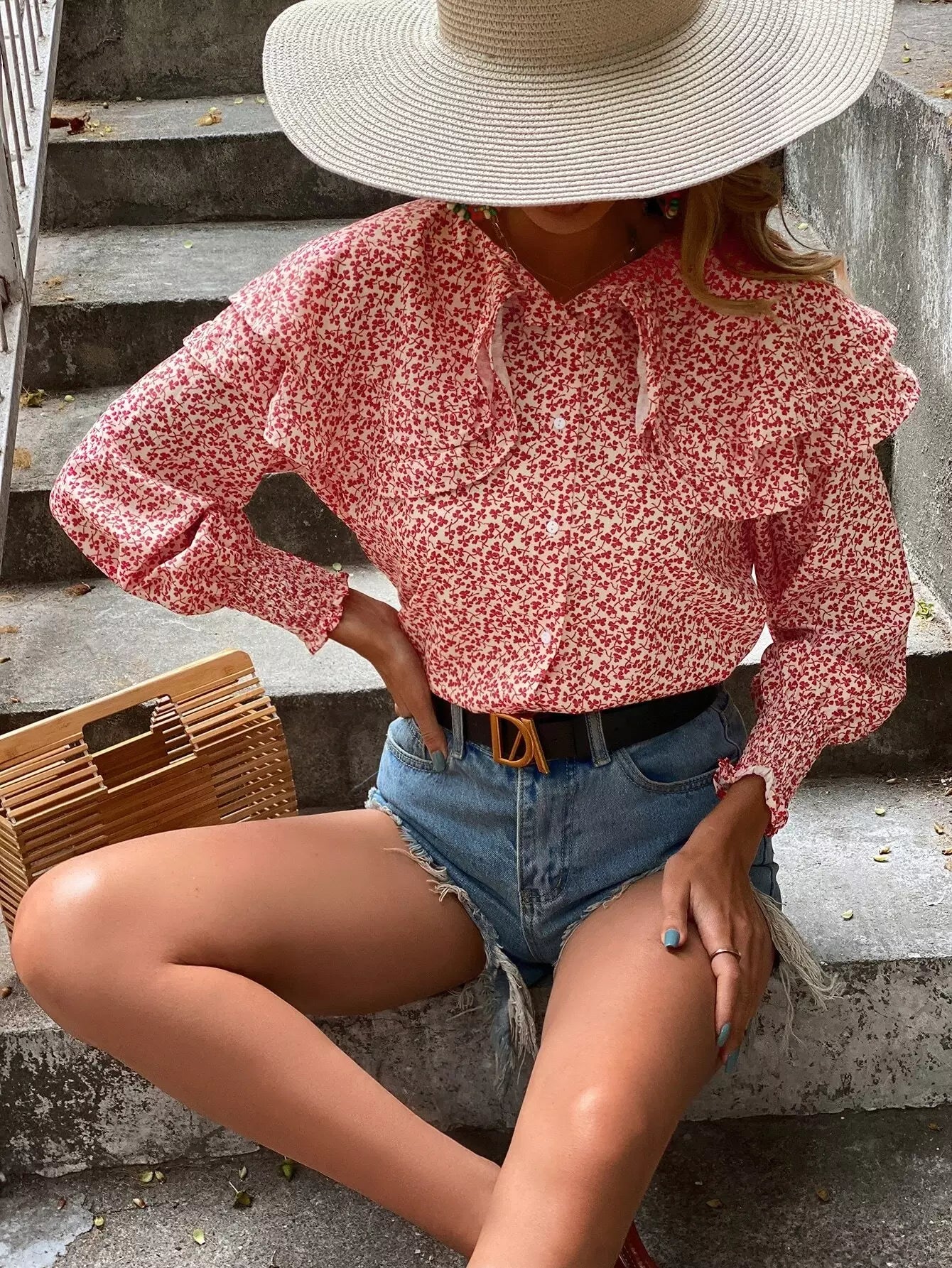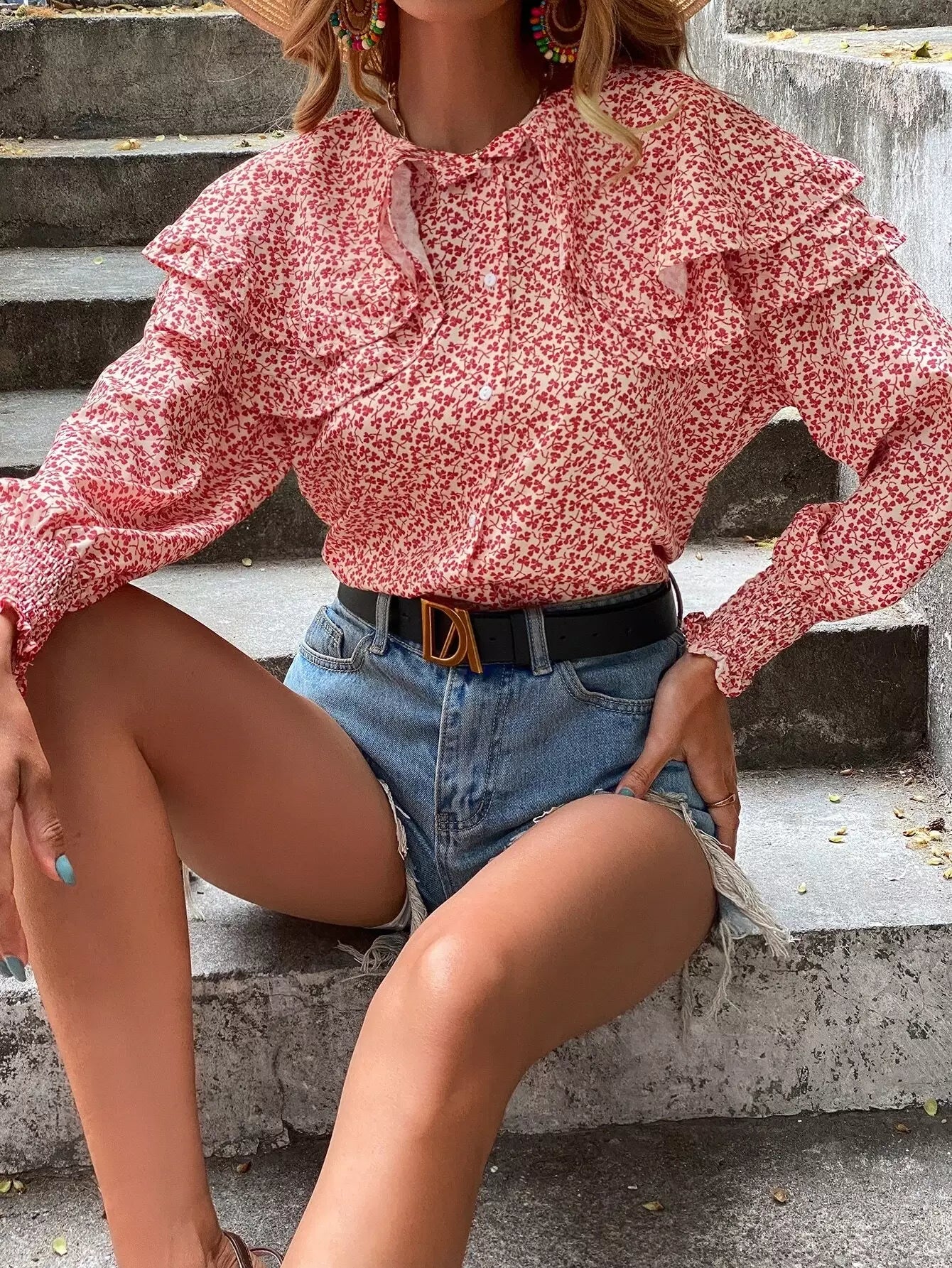 بلوزة ديتسي بياقة زهرية مزينة بالورود