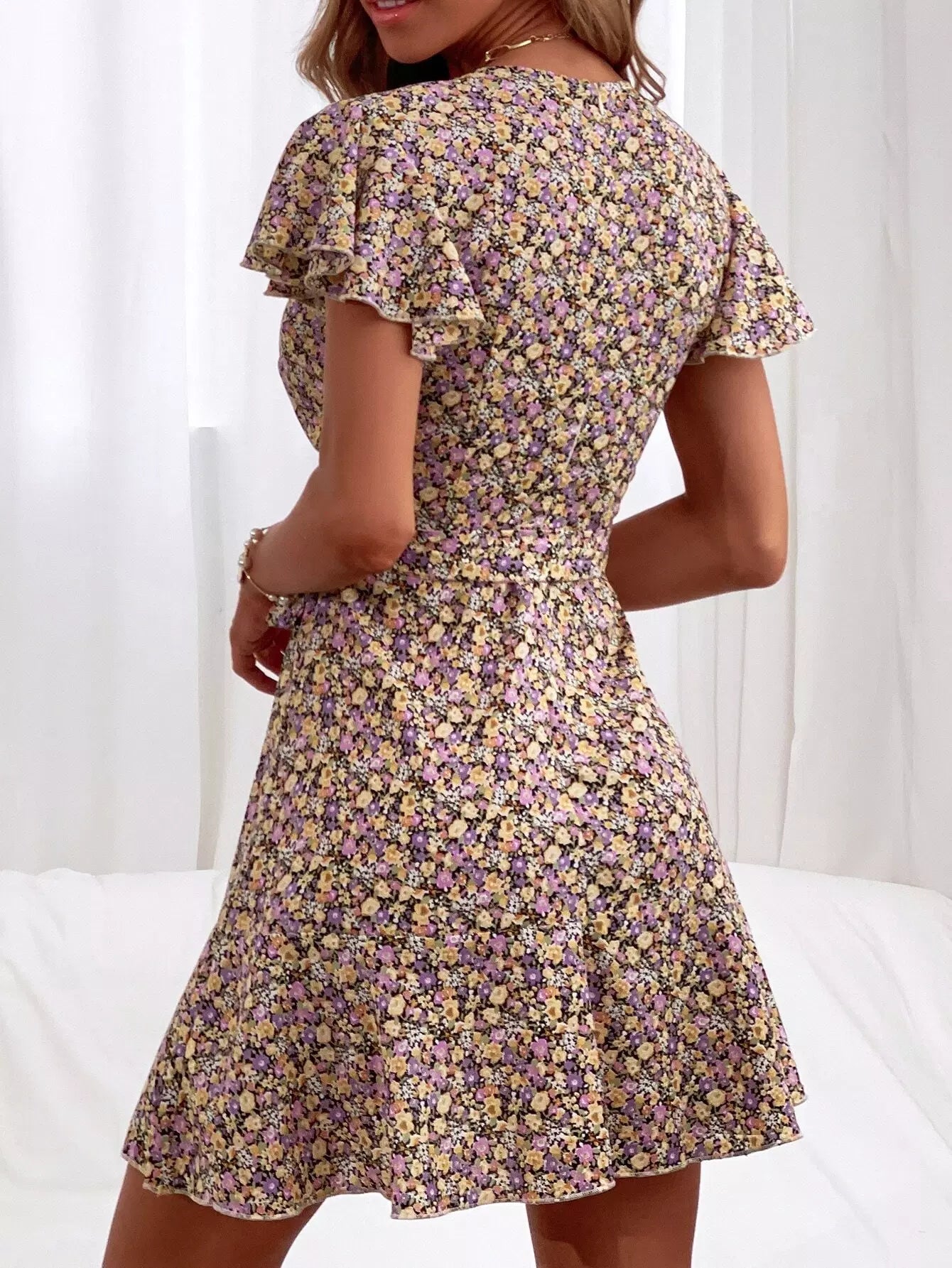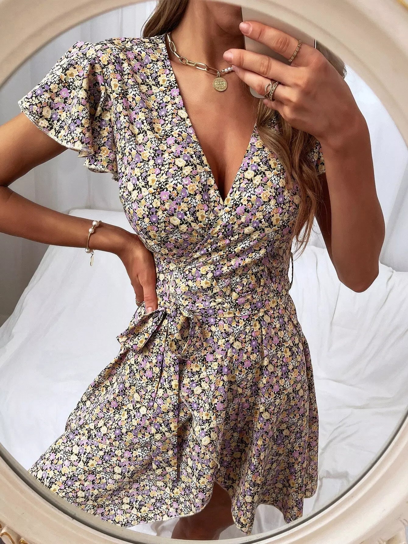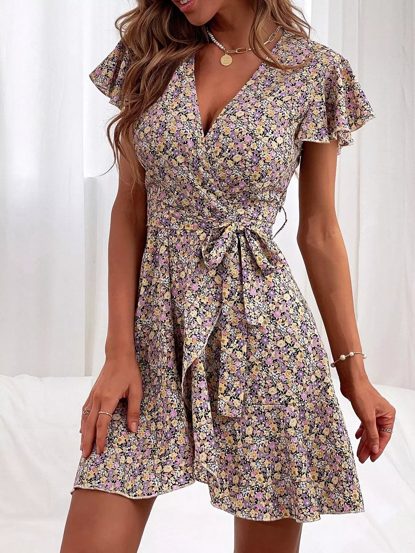 فستان Ditsy ملفوف بنقشة الزهور بدون حزام