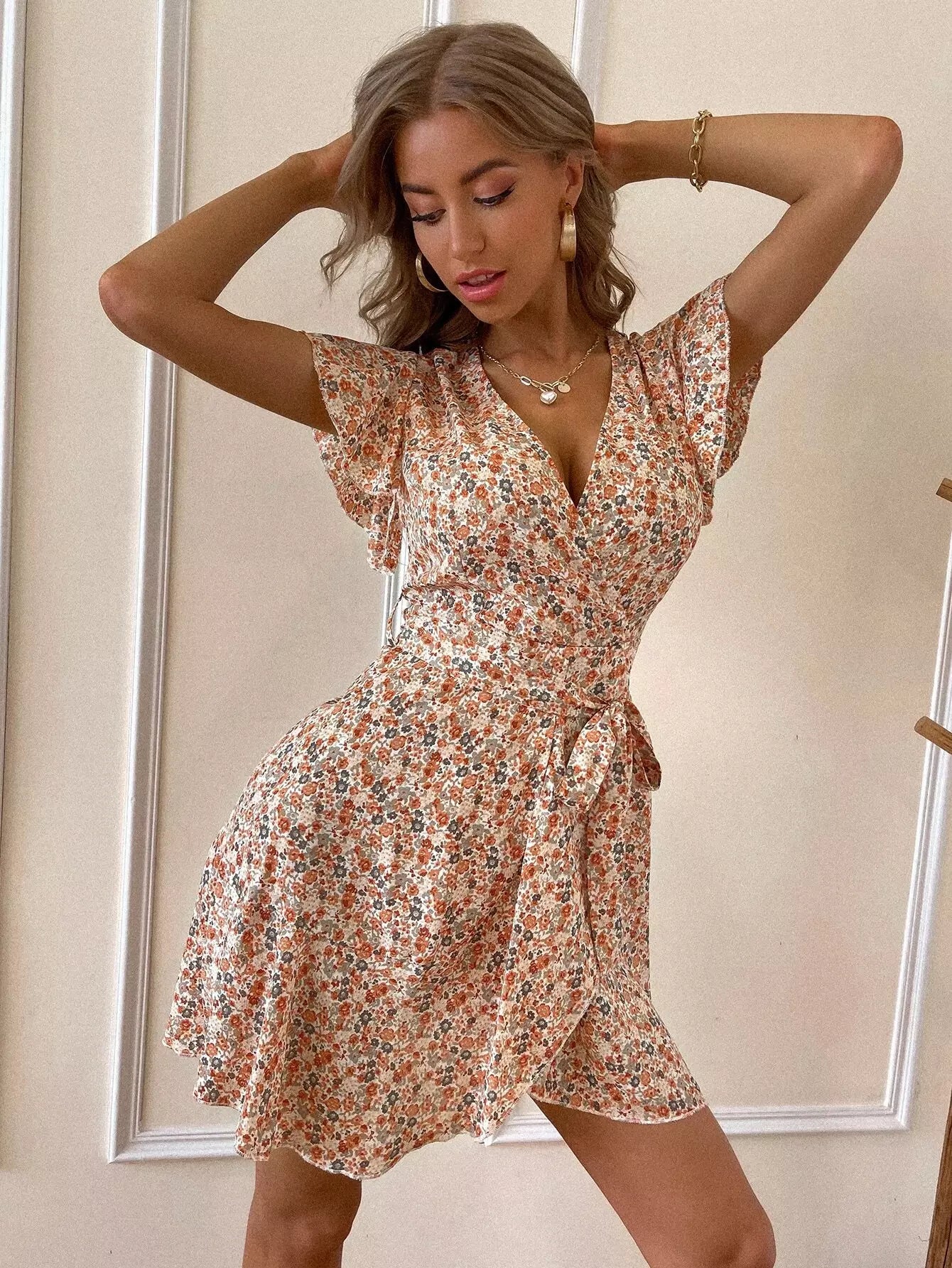 فستان Ditsy ملفوف بالزهور بدون حزام