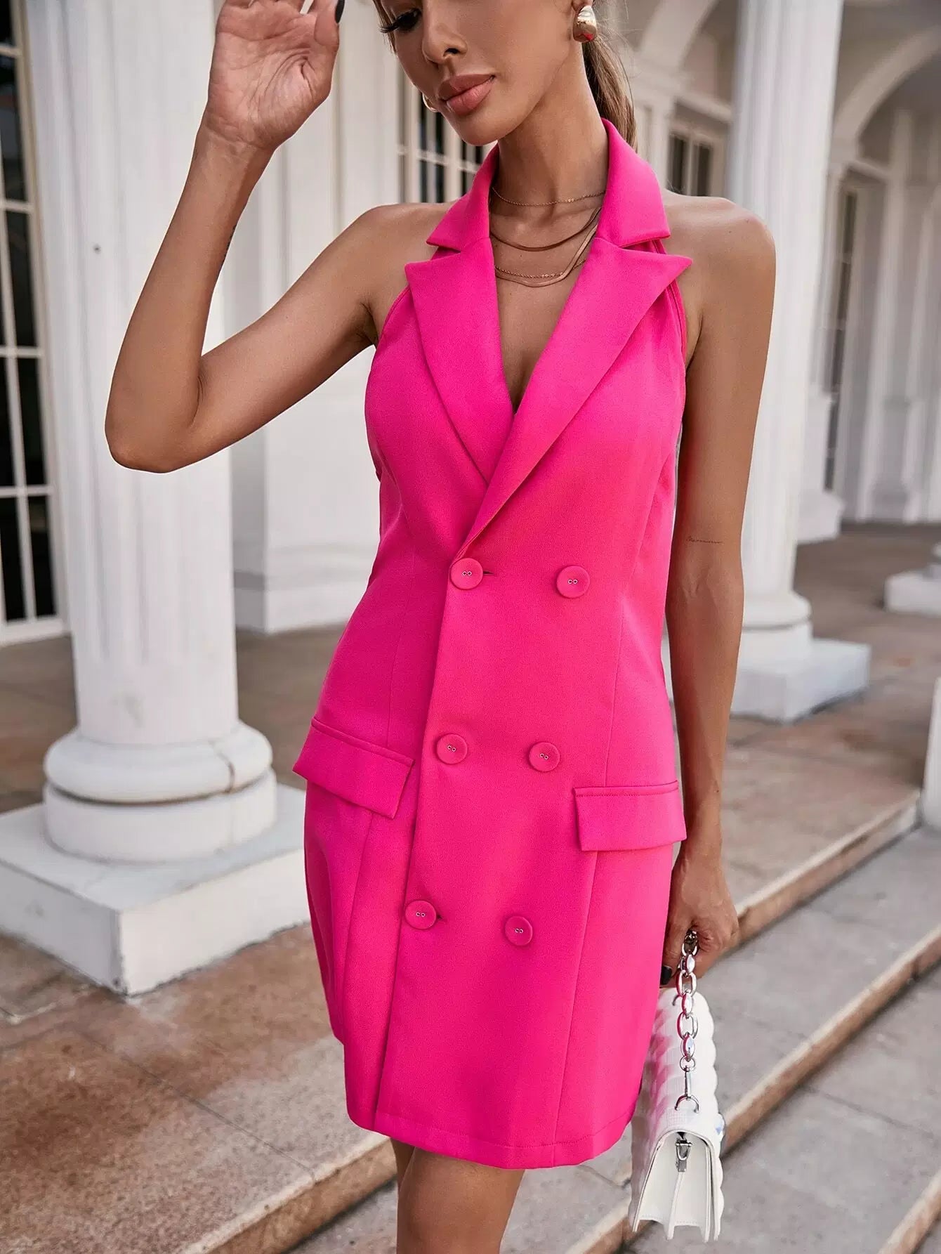 فستان بدون أكمام من دون أكمام بسترة بدون أكمام مزدوجة الصدر