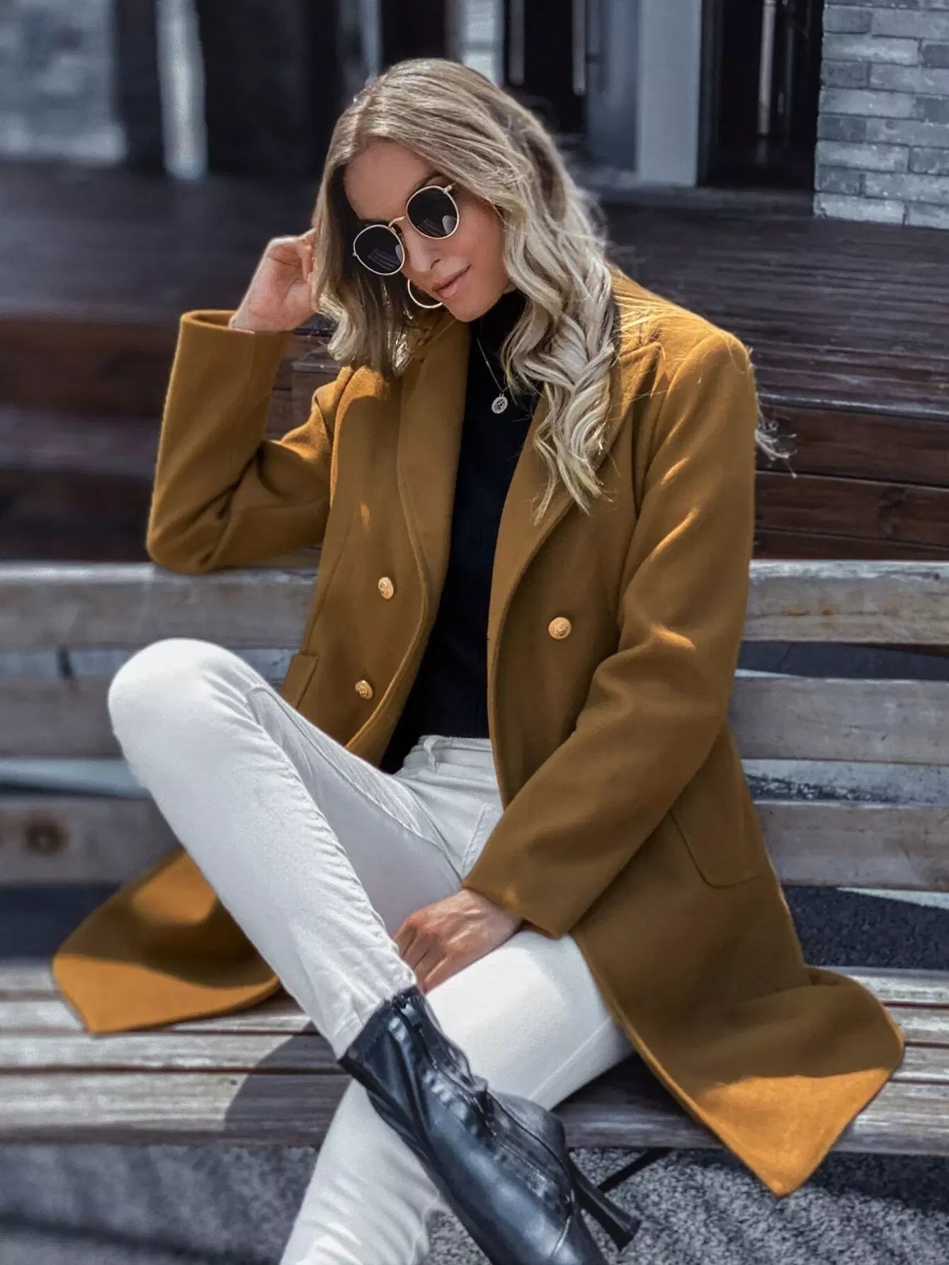 معطف فوقي مزدوج الصدر مزدوج الجيب