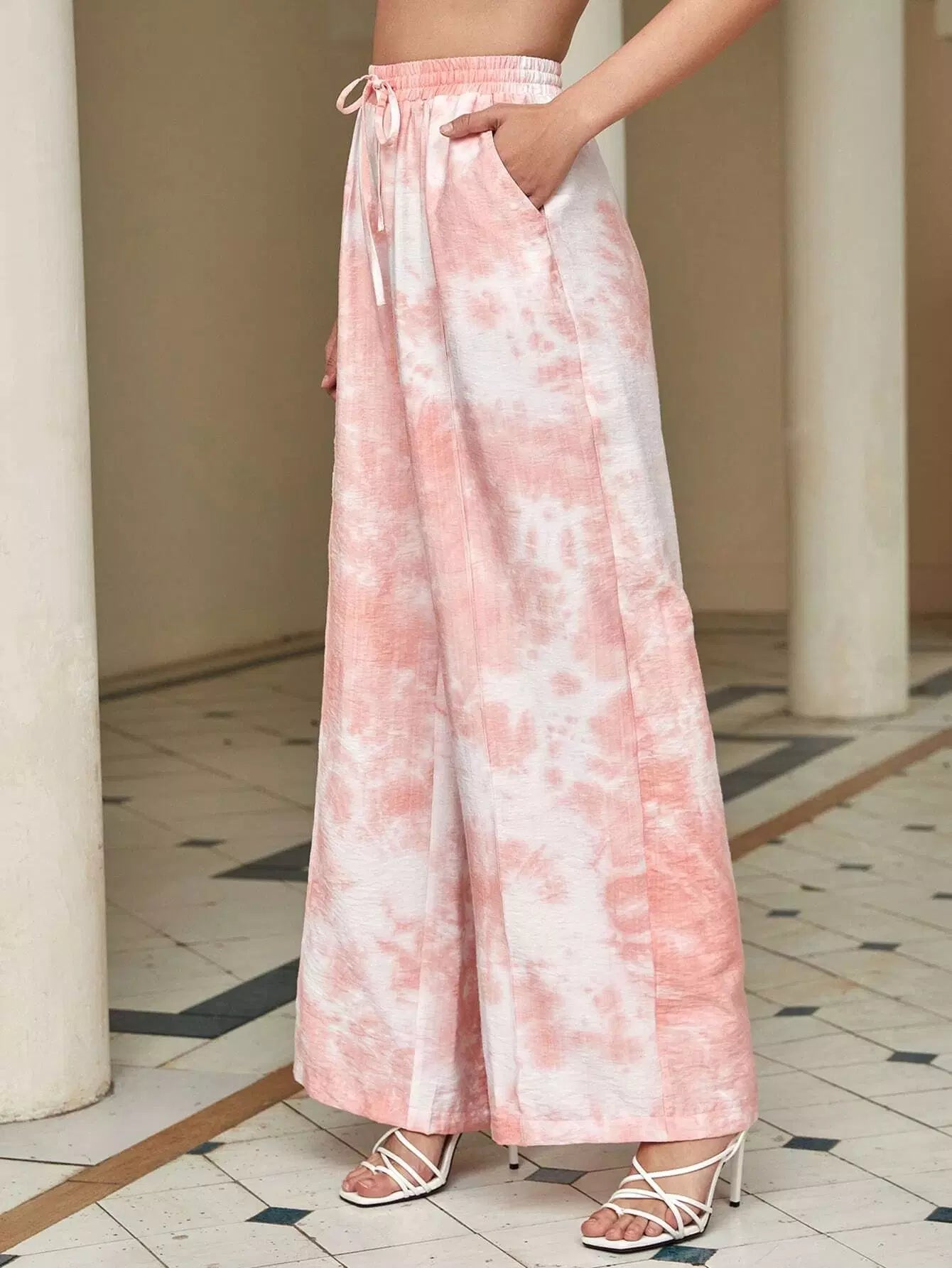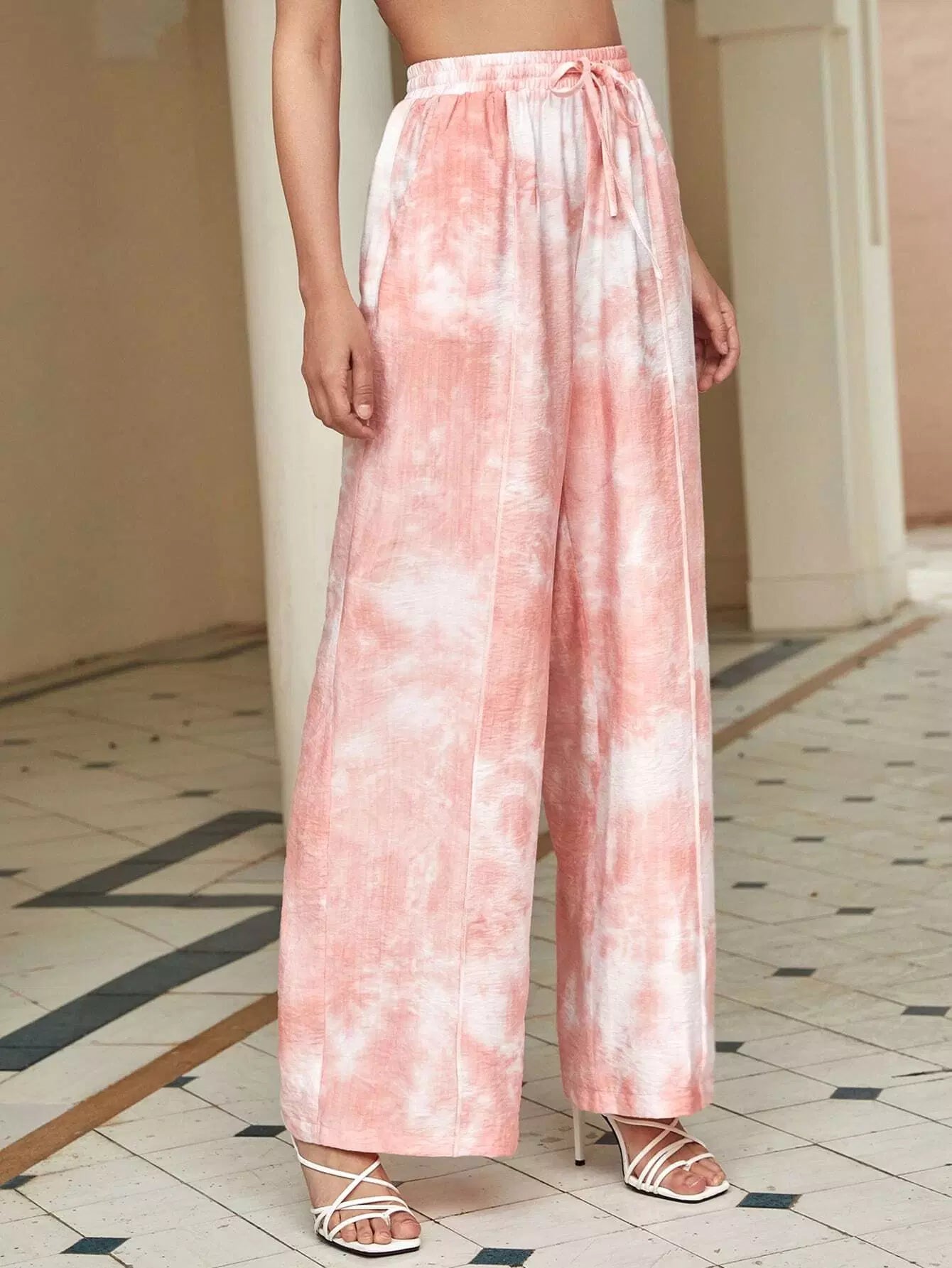 بنطلون مصبوغ برباط خصر برباط على الجانب