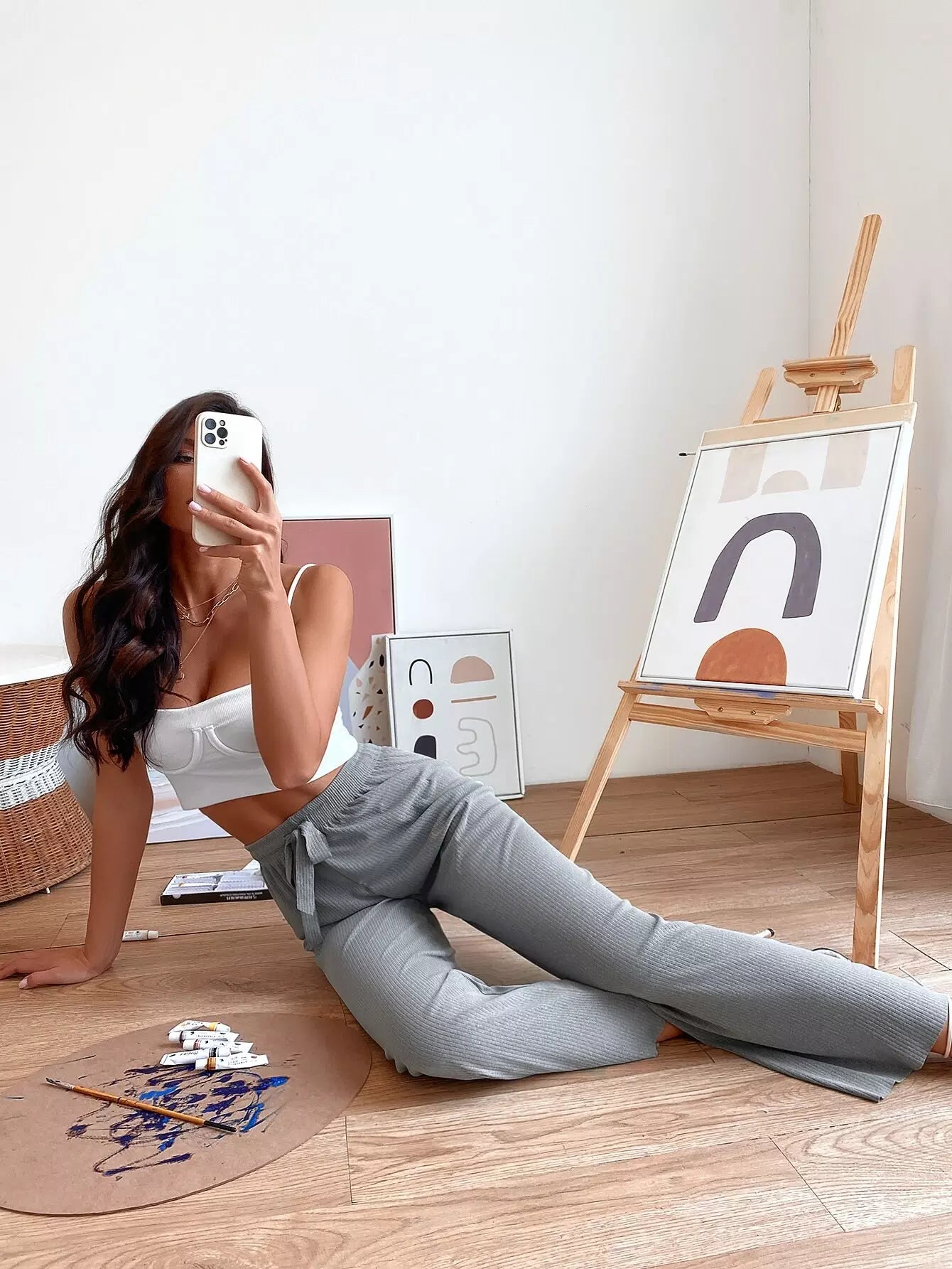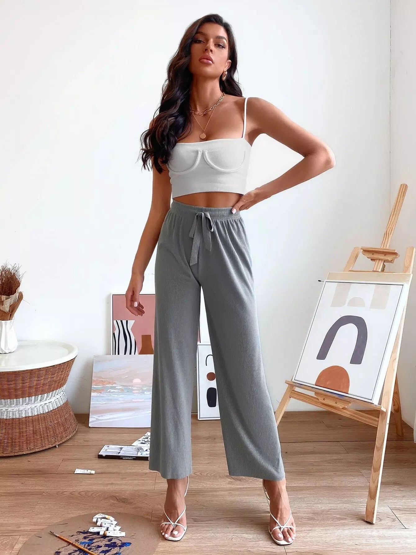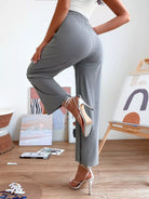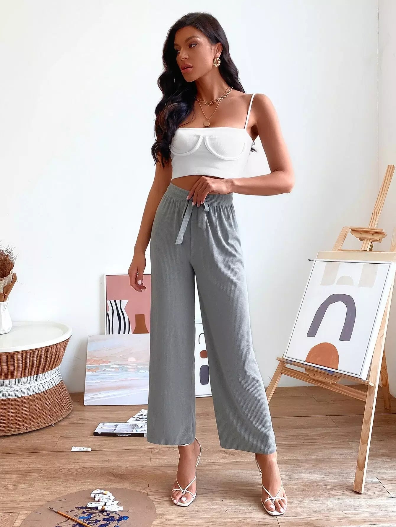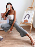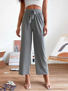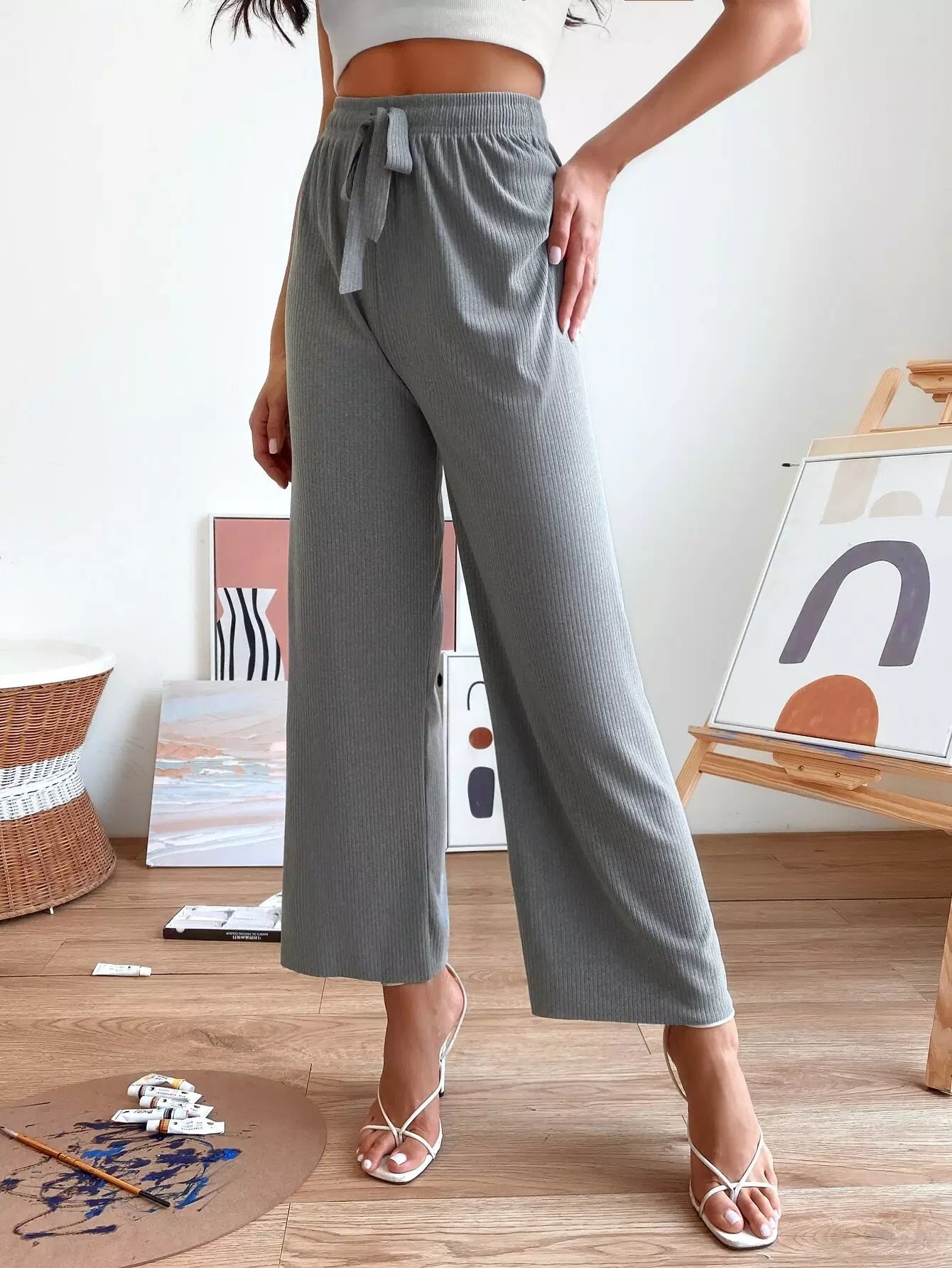 بنطلون واسع الساقين بخصر برباط خصر عريض