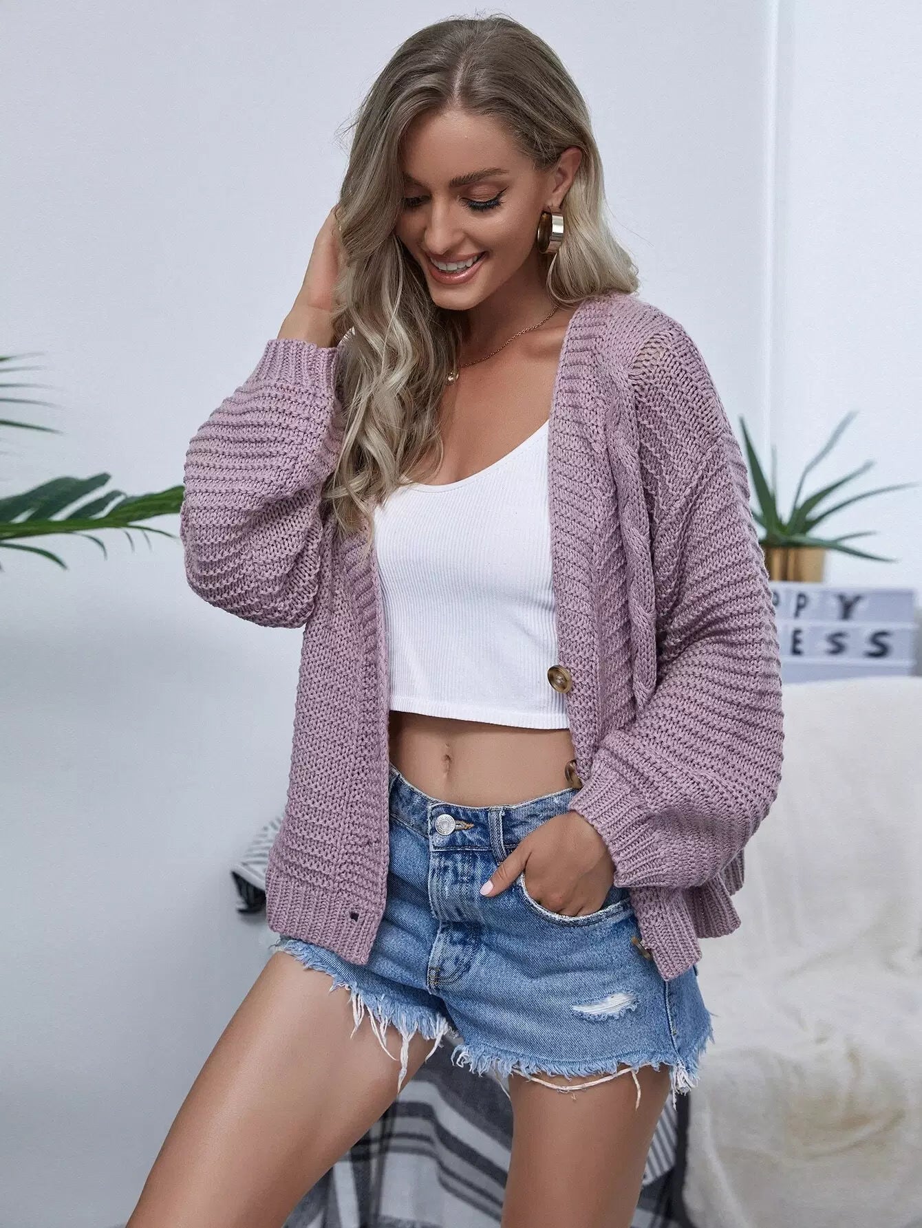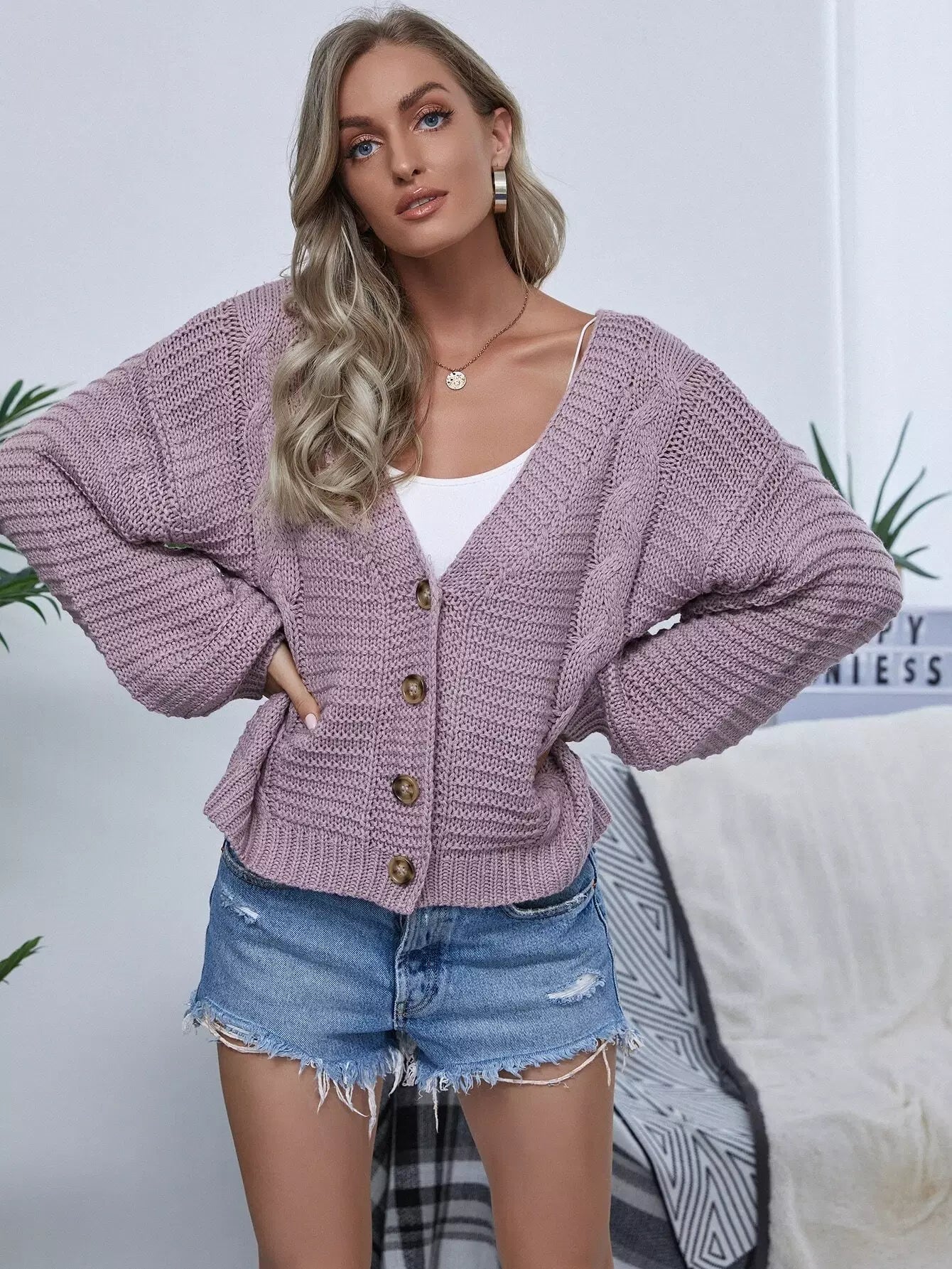 كارديغان بأزرار منسدلة على الكتفين بأزرار أمامية
