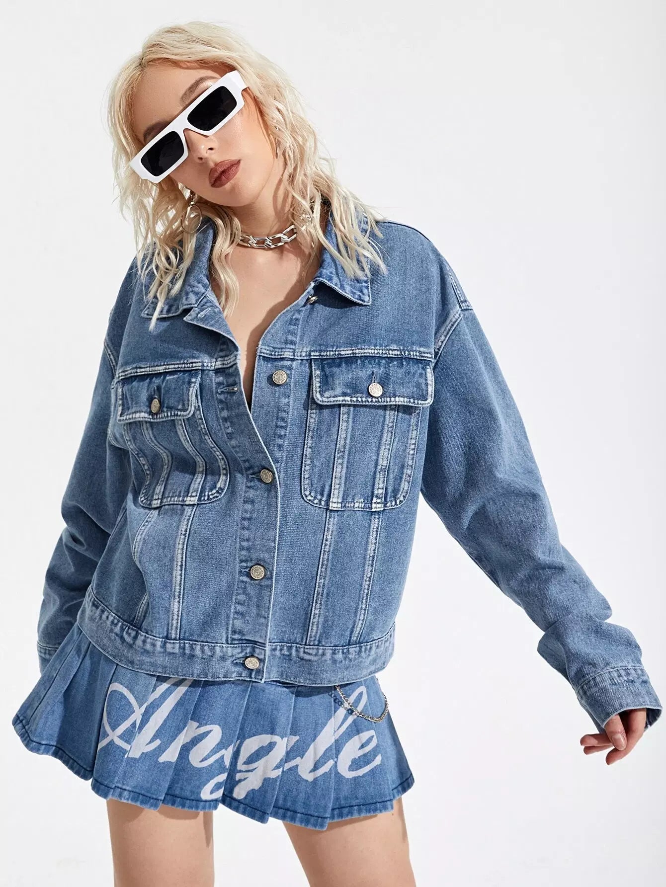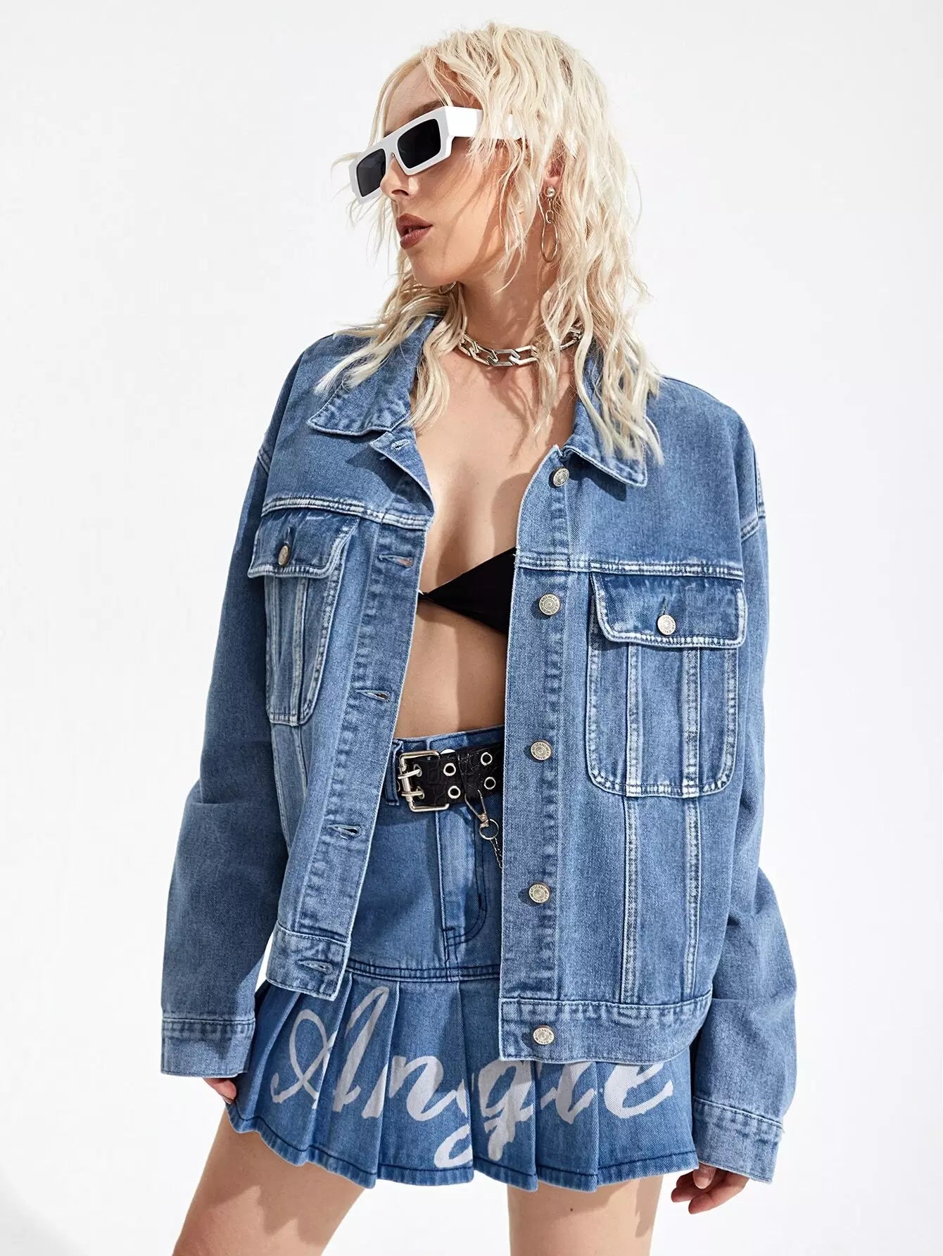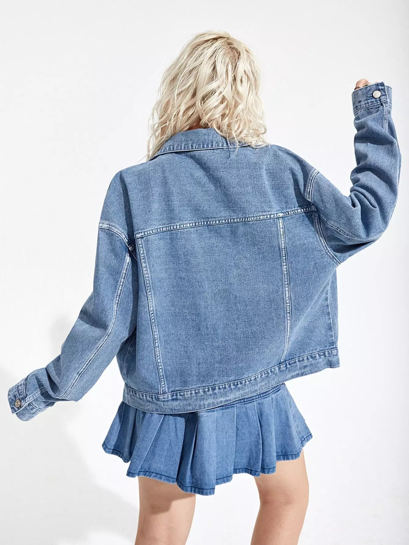 جاكيت جينز بأزرار منسدلة على الكتفين