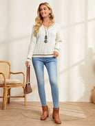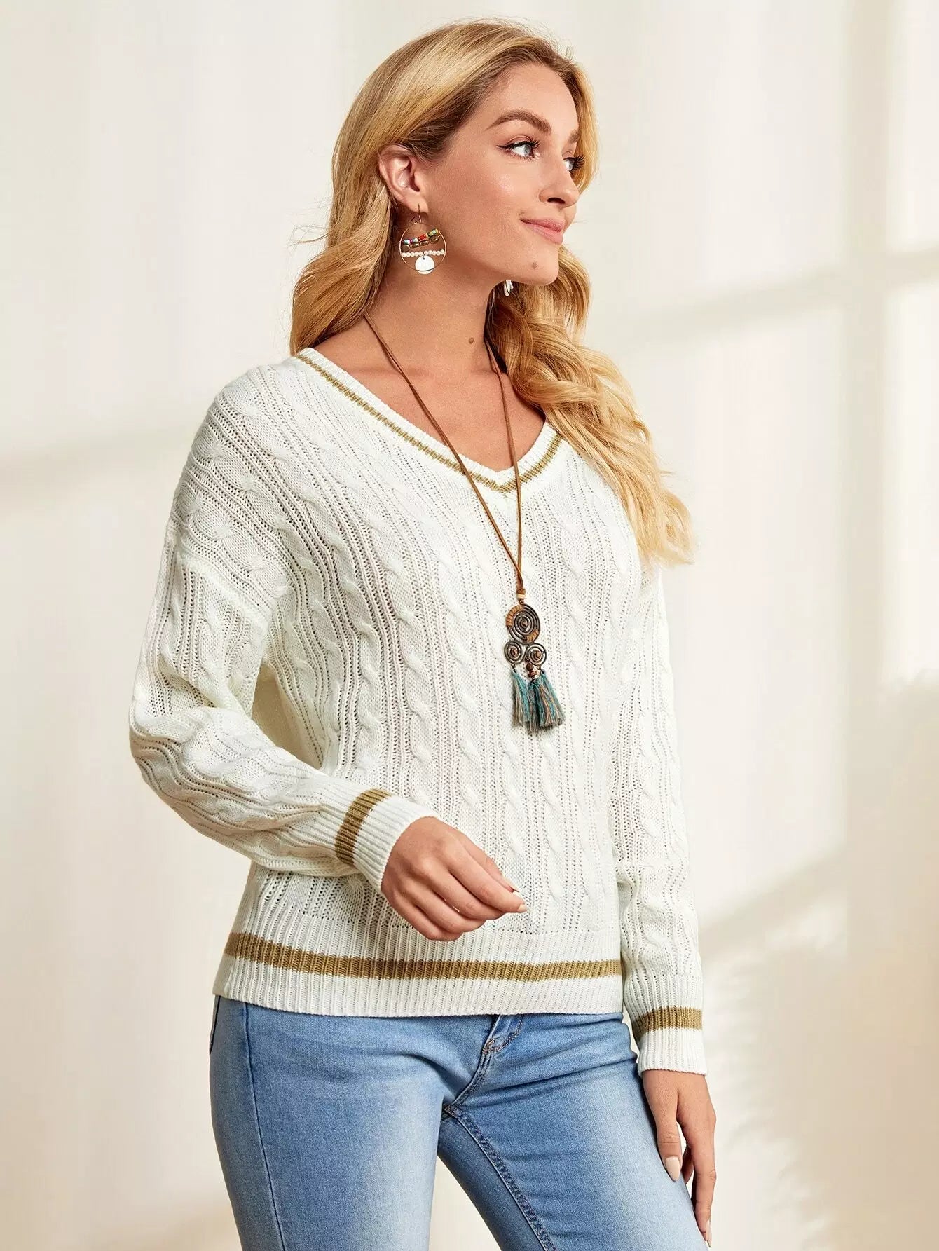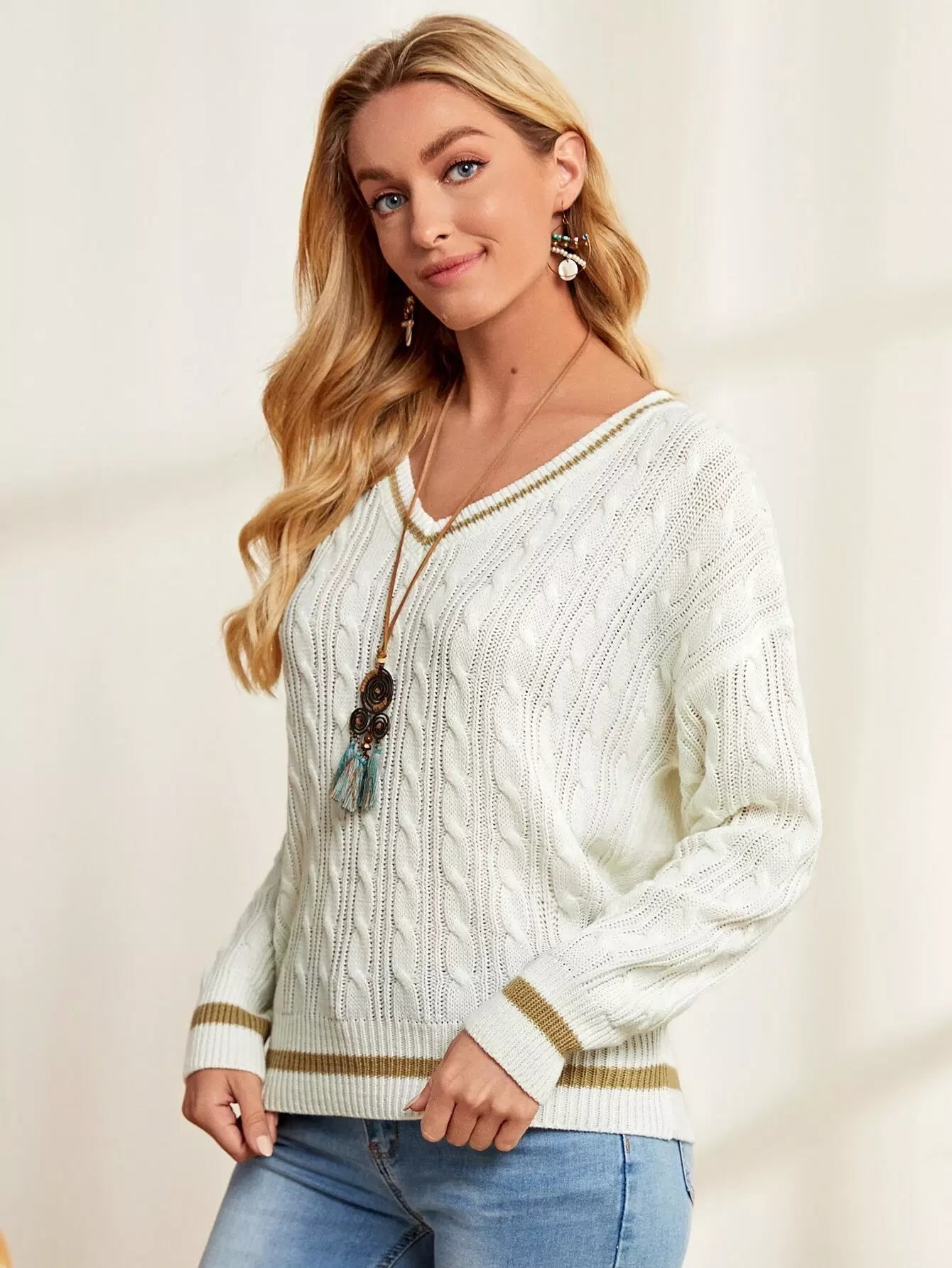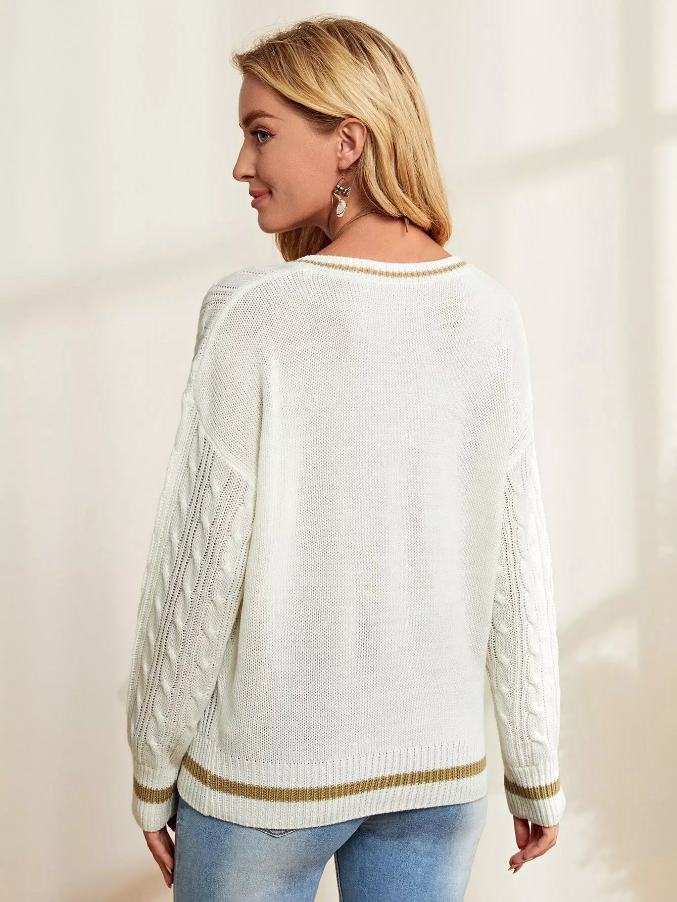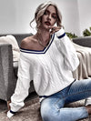 كنزة منسدلة الكتفين محبوكة بكابل محبوكة