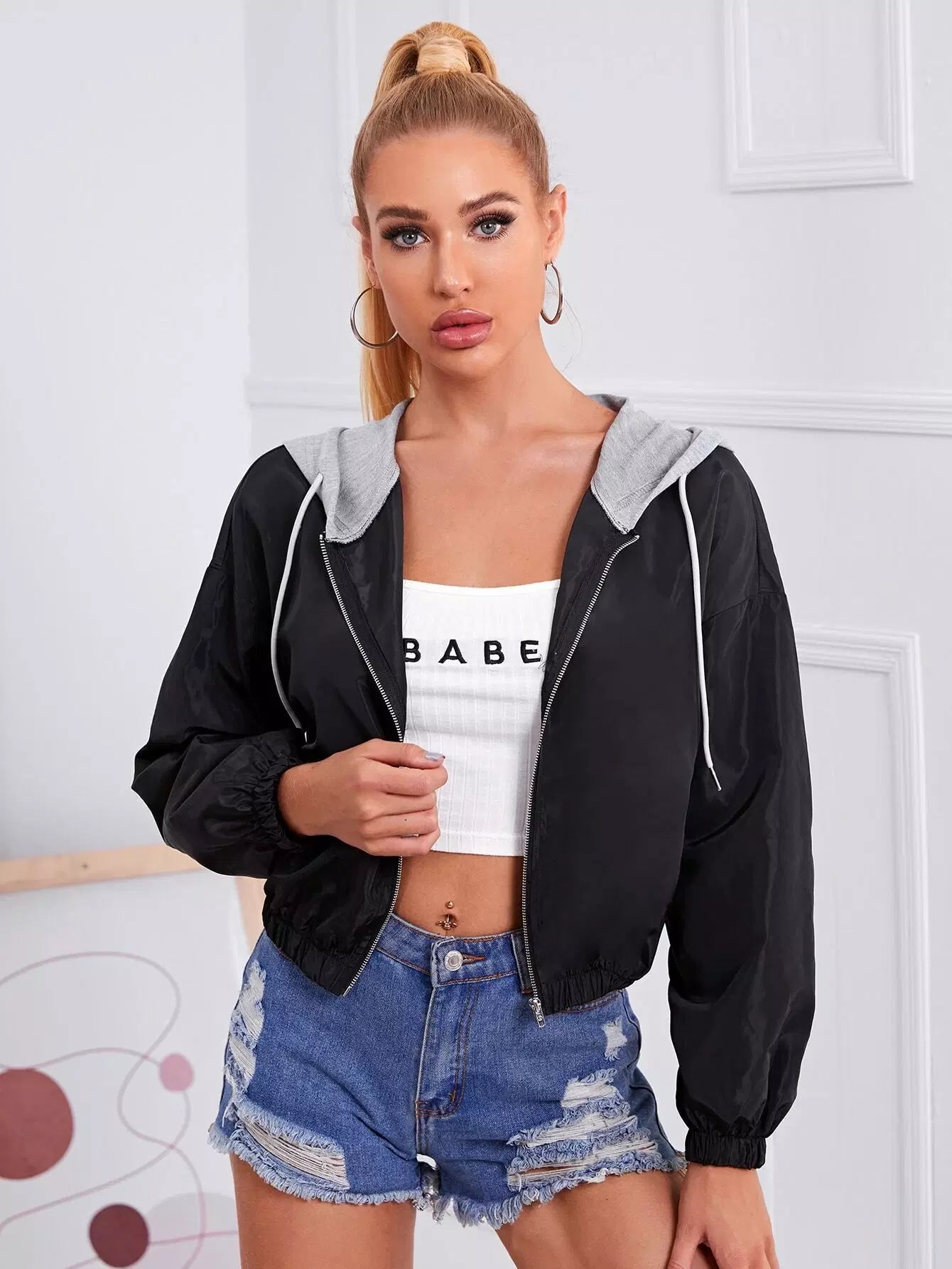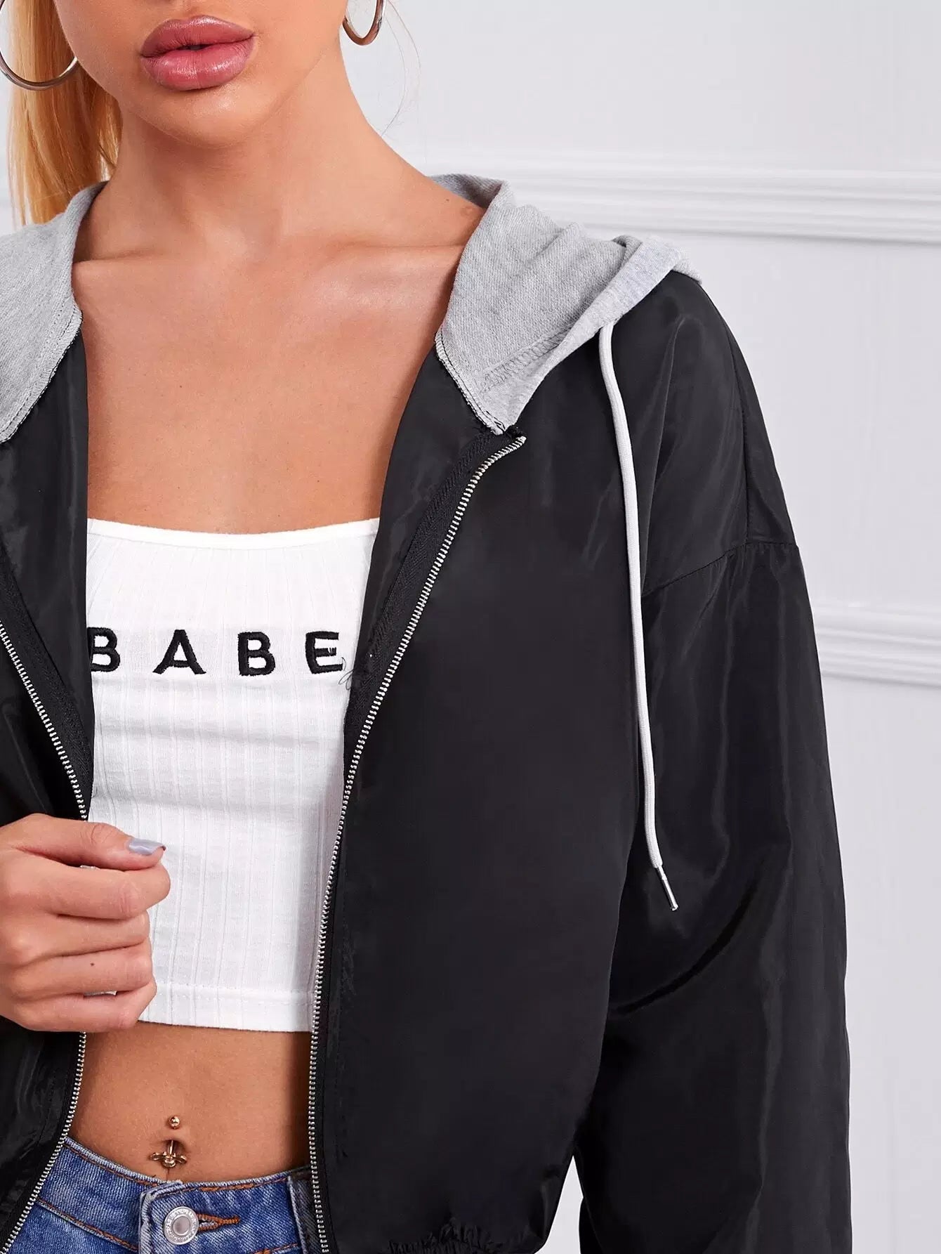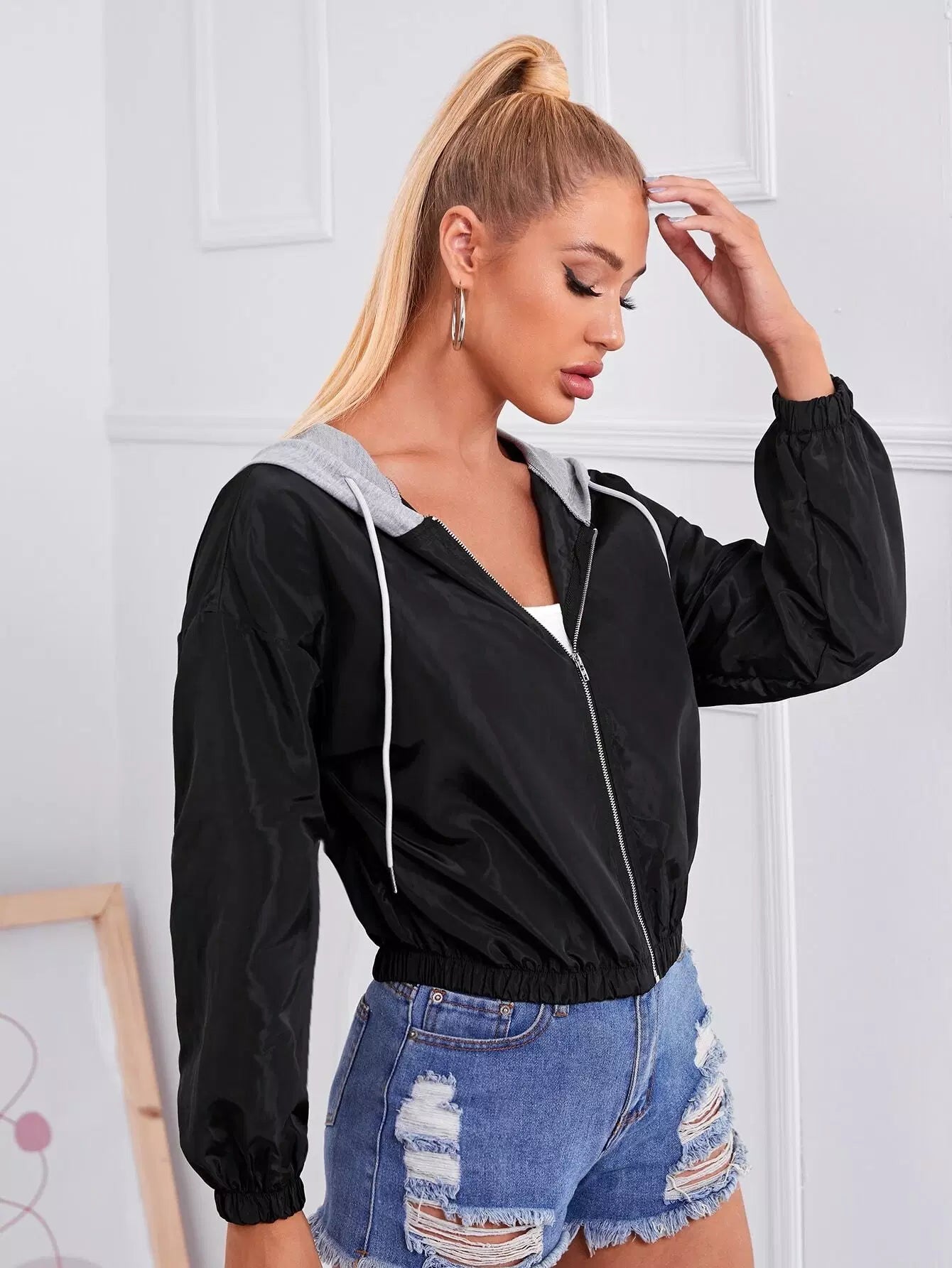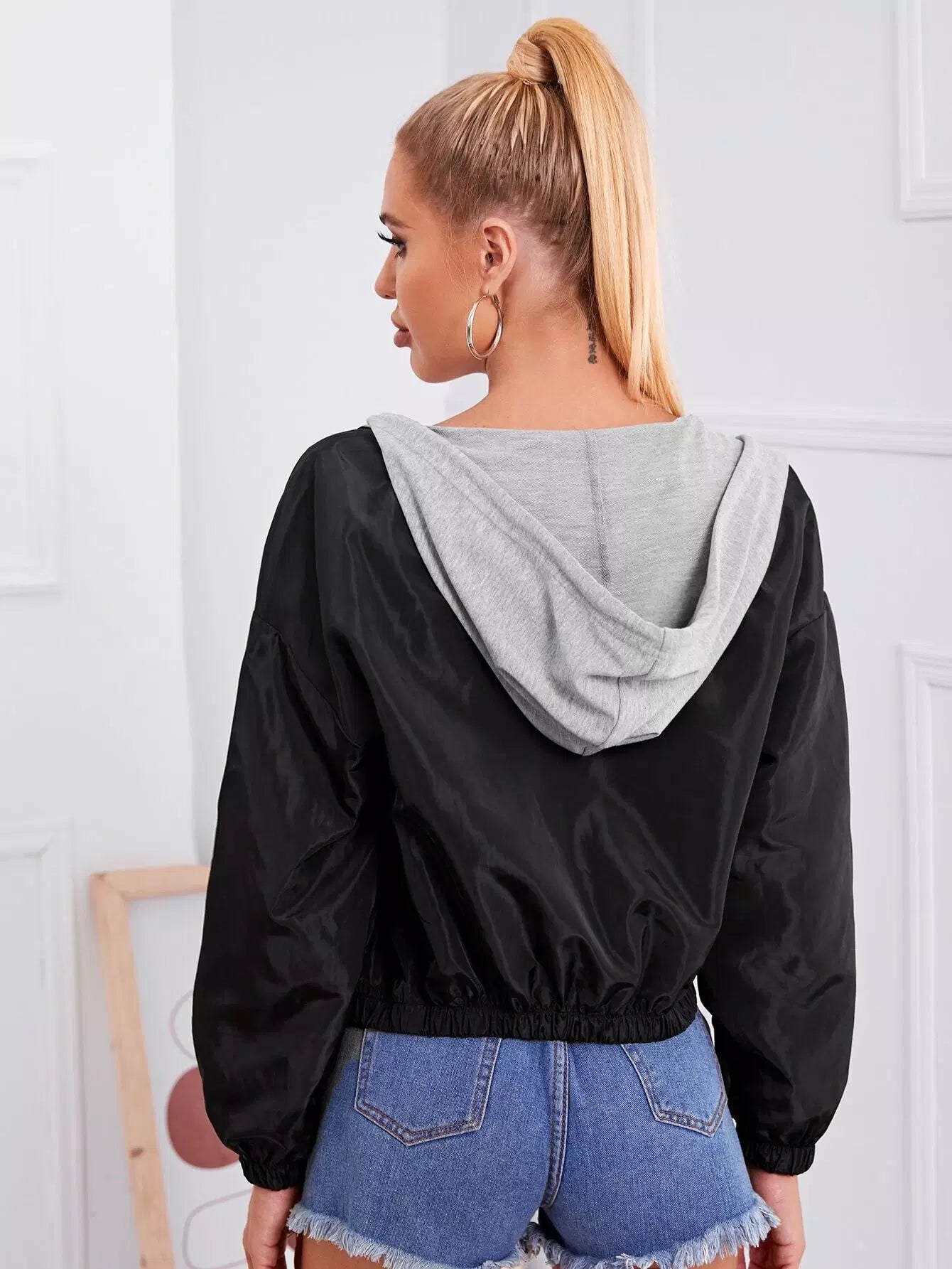جاكيت بغطاء رياح منسدل الكتفين بغطاء رياح بلون مغاير