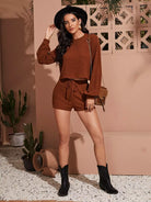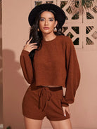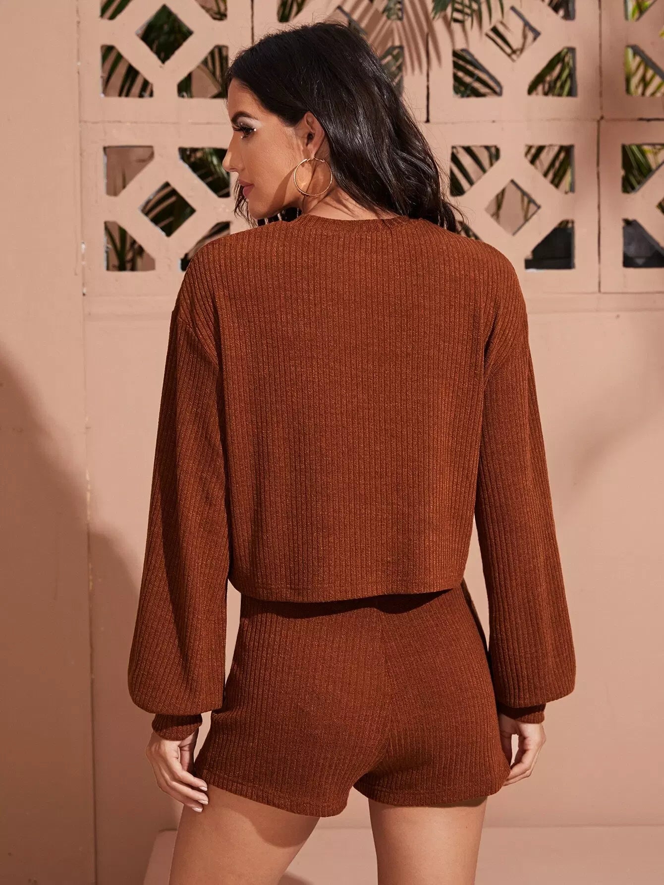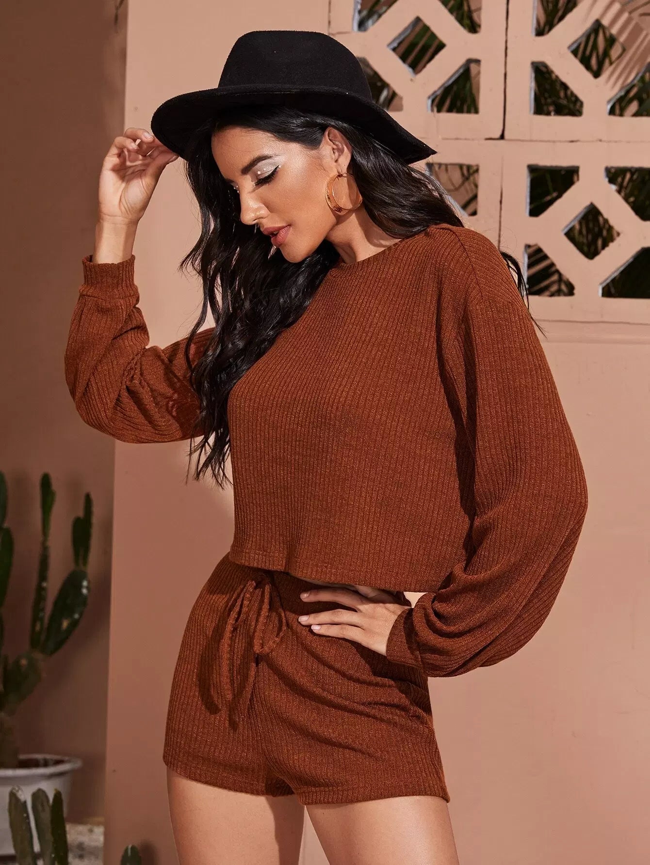 للنساء - طقم شورت وبلوزة قصيرة بأكتاف منسدلة