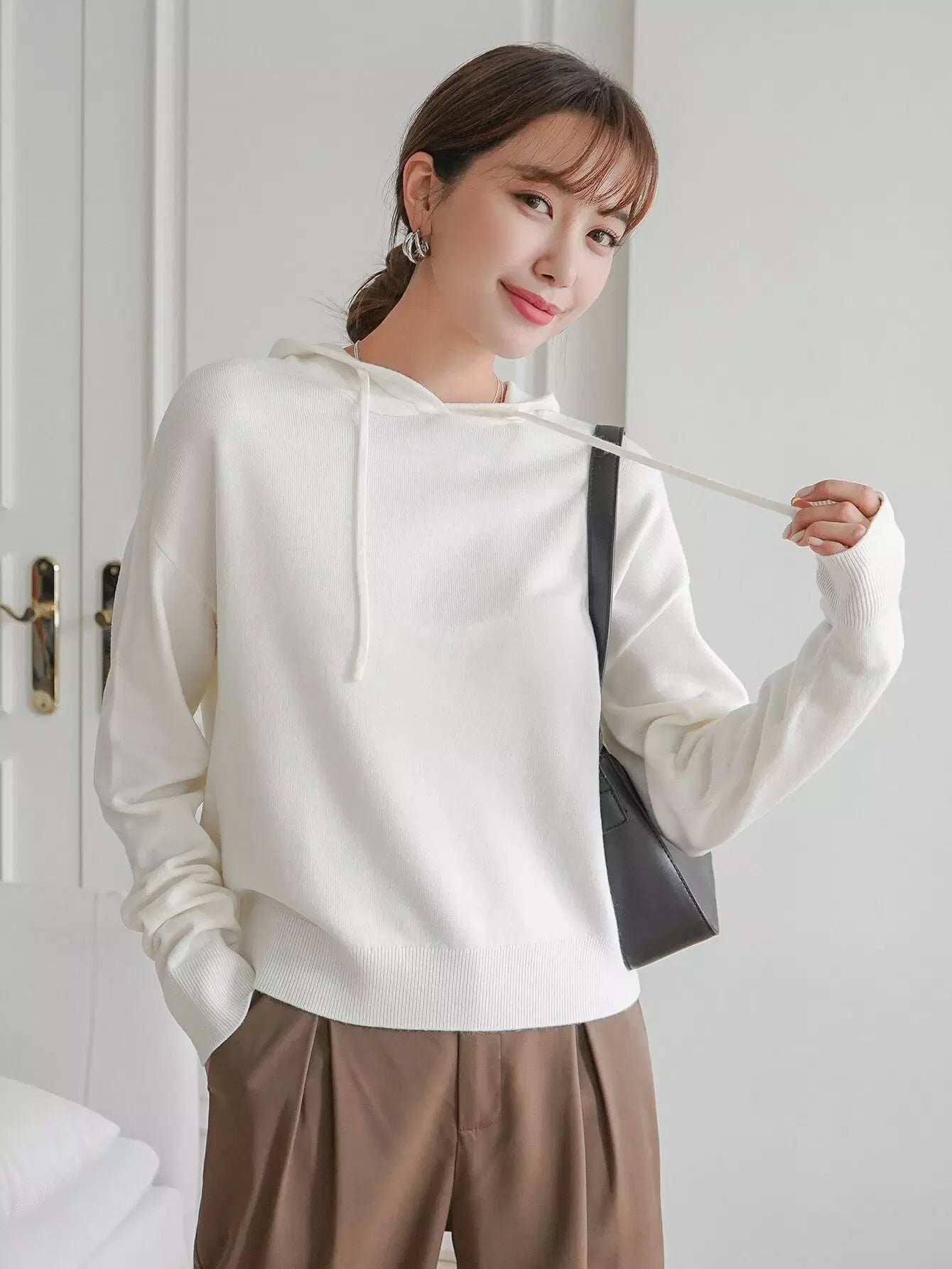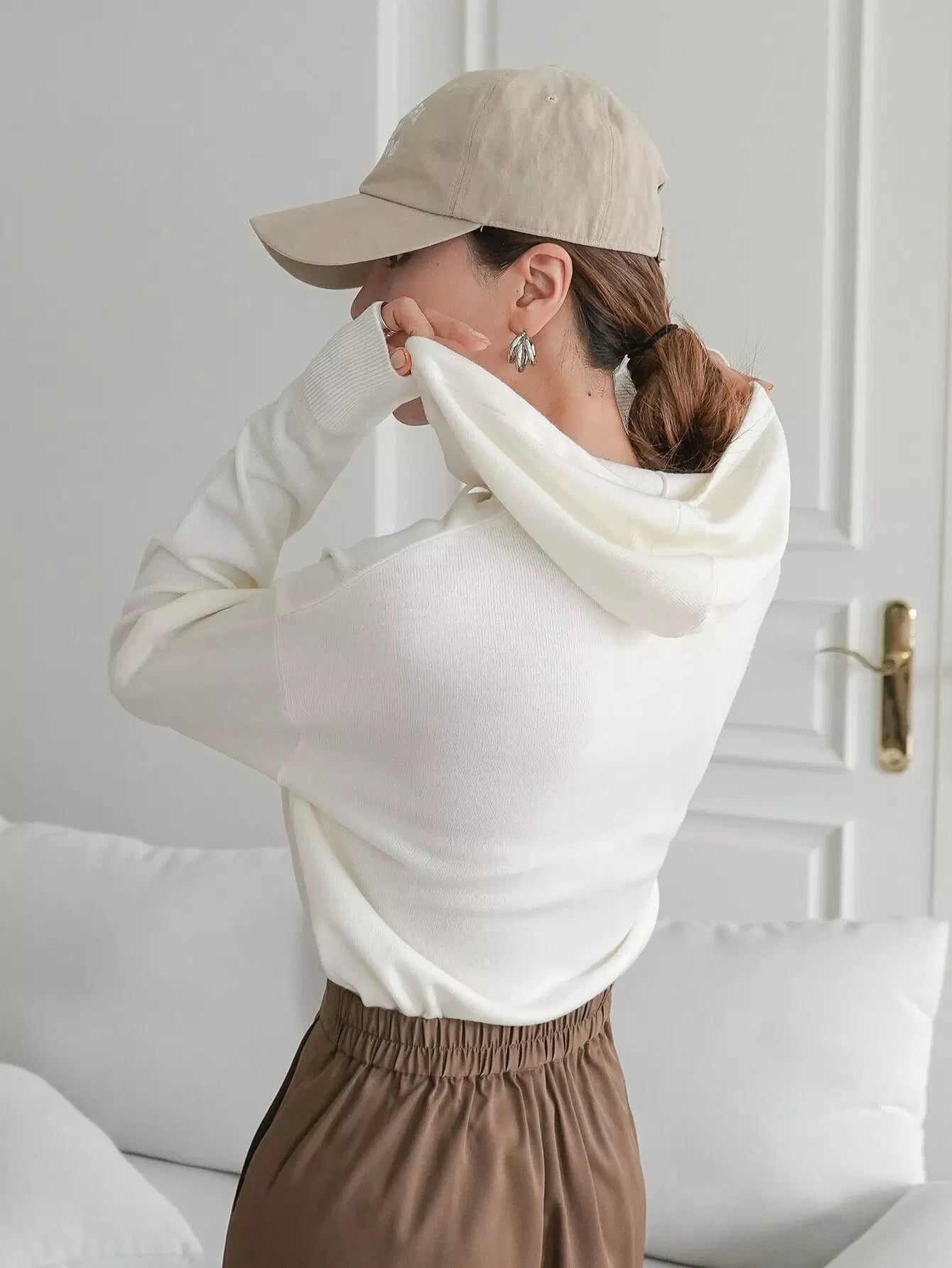 سترة منسدلة الكتفين برباط على الكتفين بقلنسوة