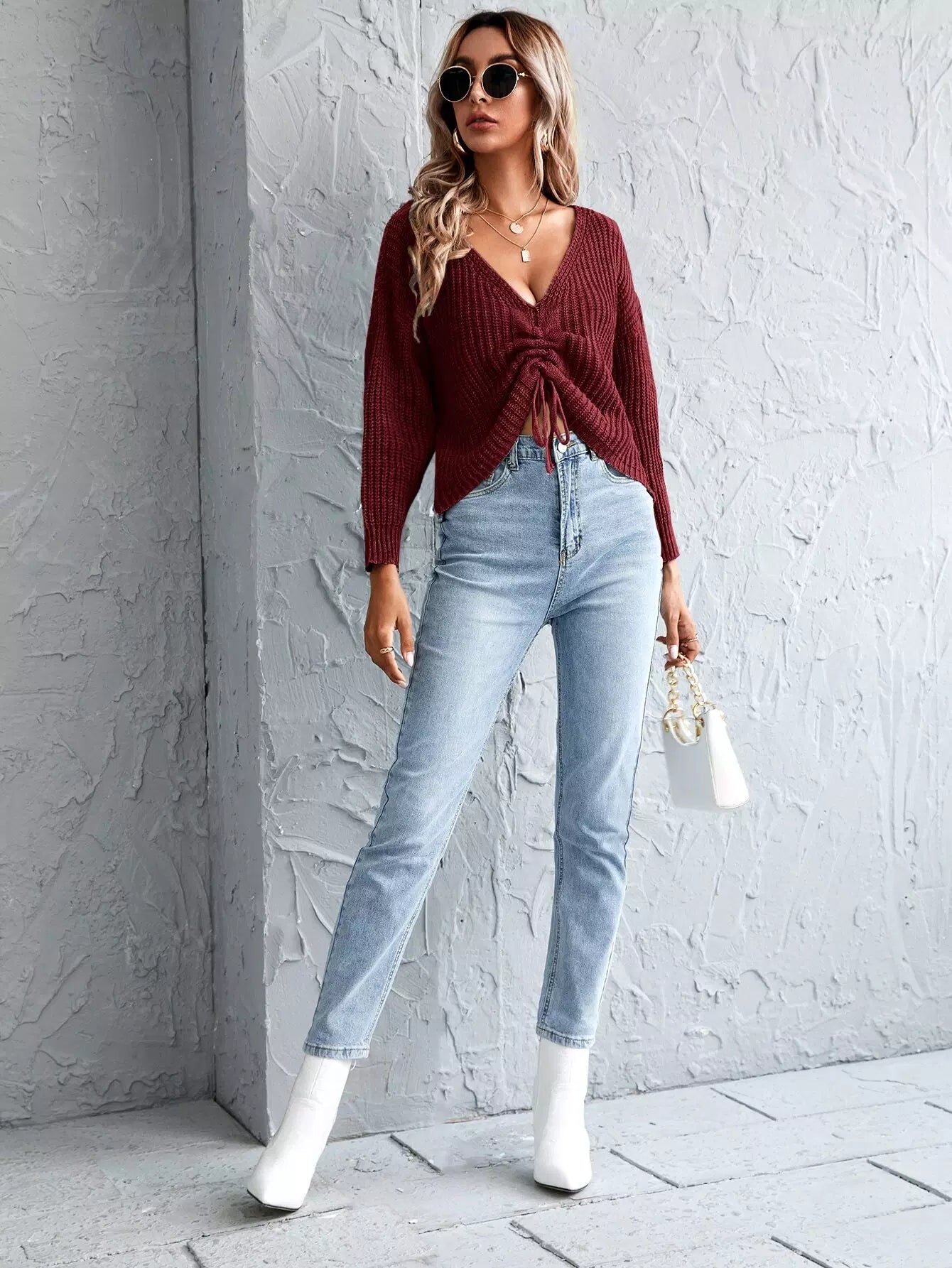 كنزة برباط منسدل على الأكتاف برباط منسدل