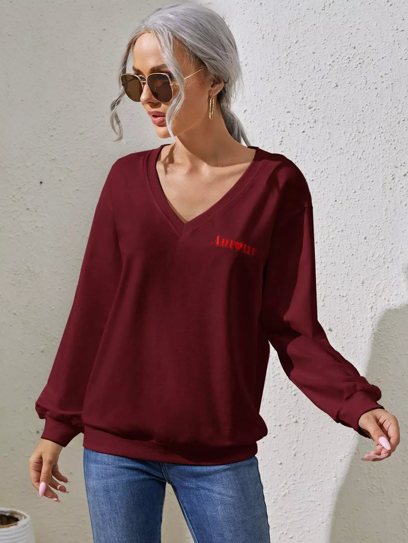 سويت شيرت منسدل الكتف مطرز بحروف منسدلة