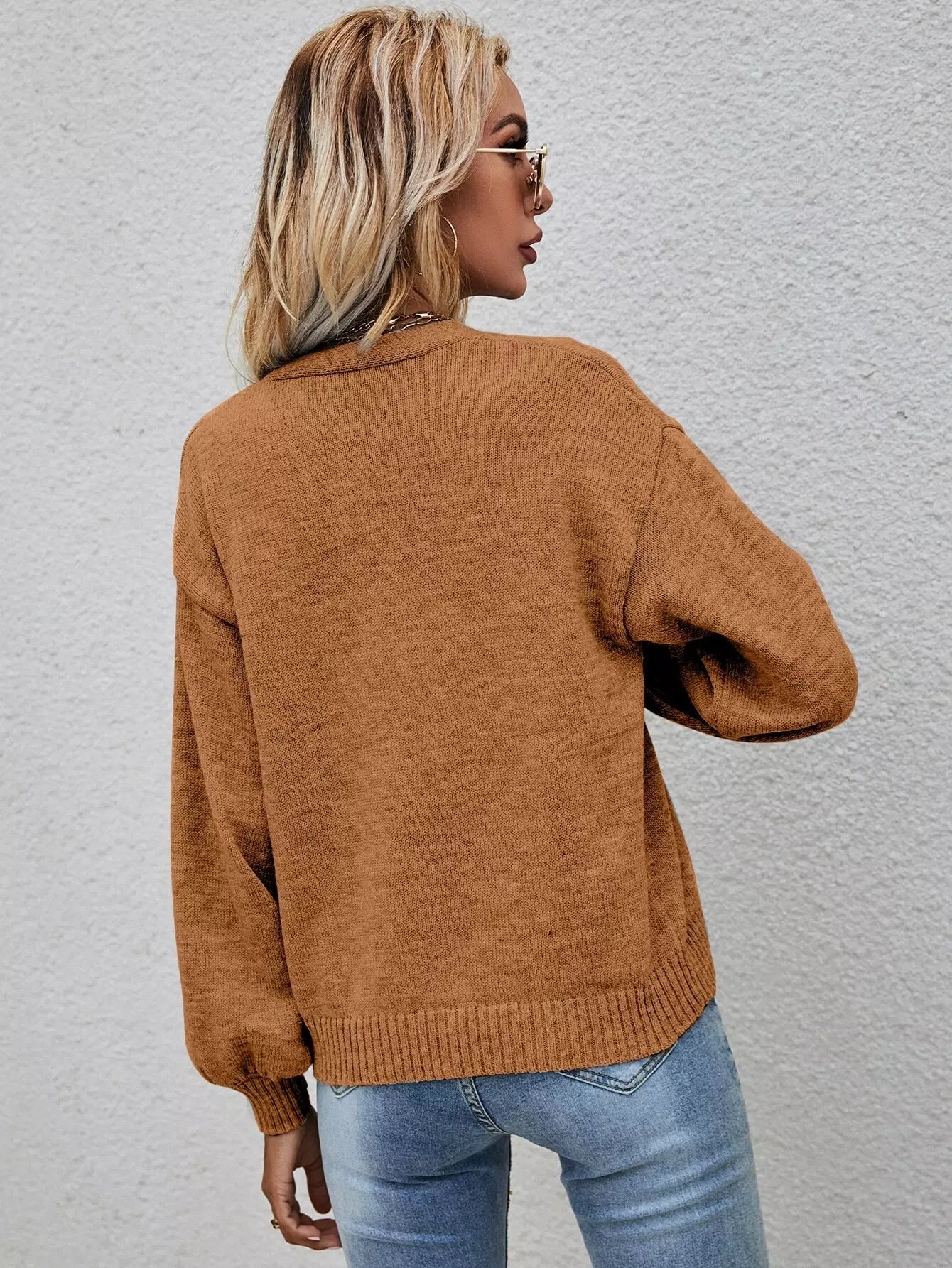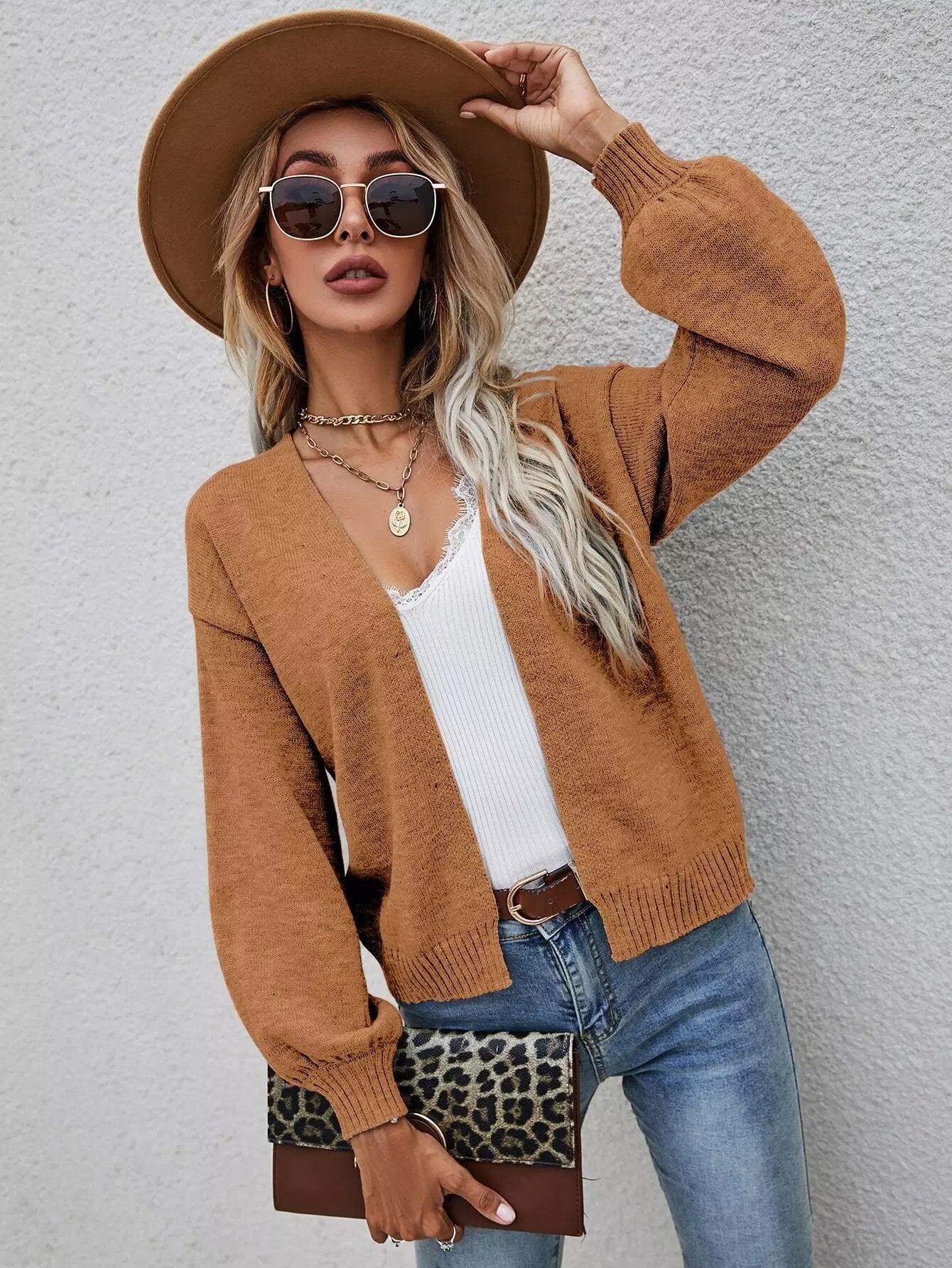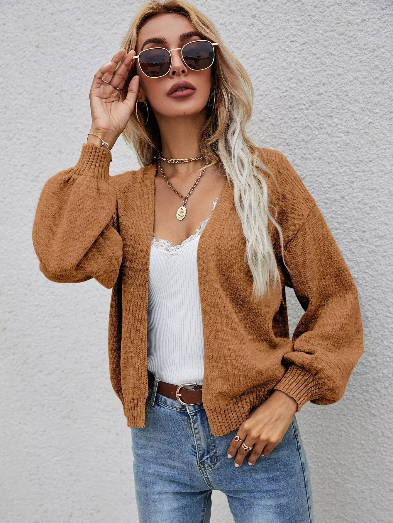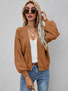 كارديجان محبوك بفتحة كتف منسدل الكتف محبوك