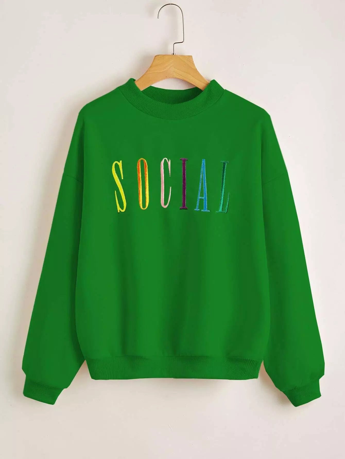 كنزة صوفية مطرزة بحروف منسدلة على الكتف