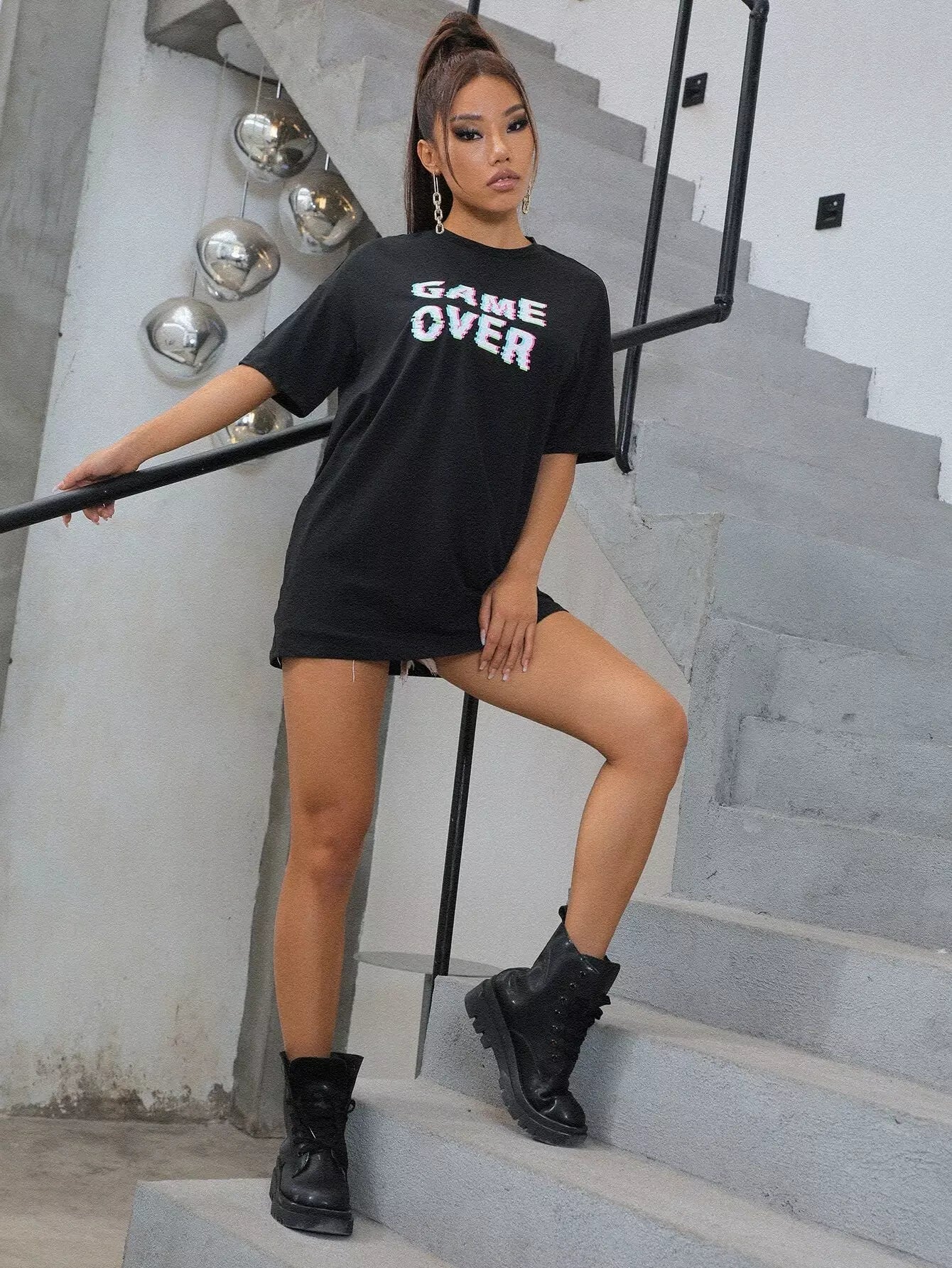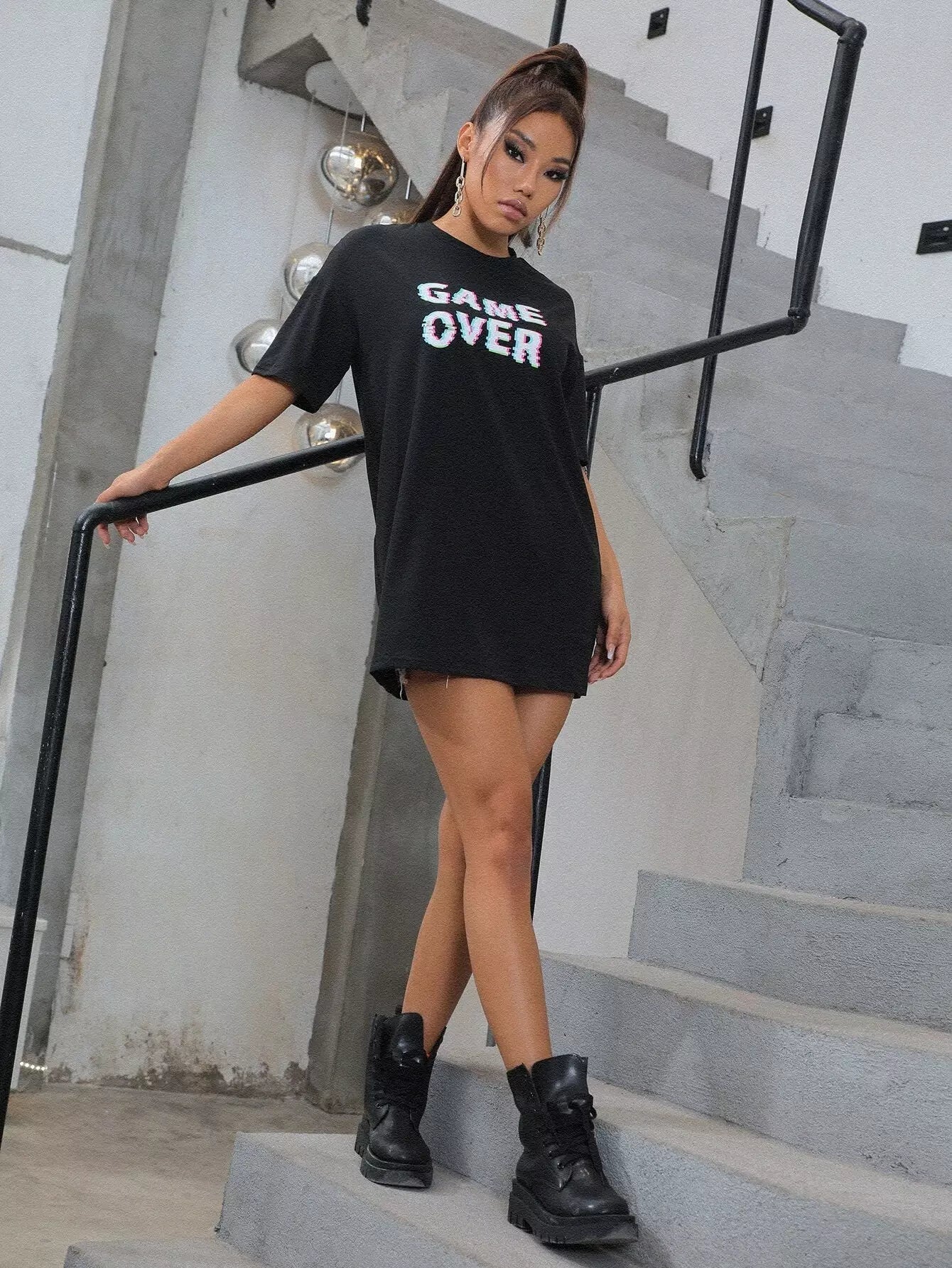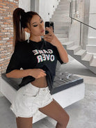 توب بدون أكتاف منسدل الكتف برسومات حروف منسدلة