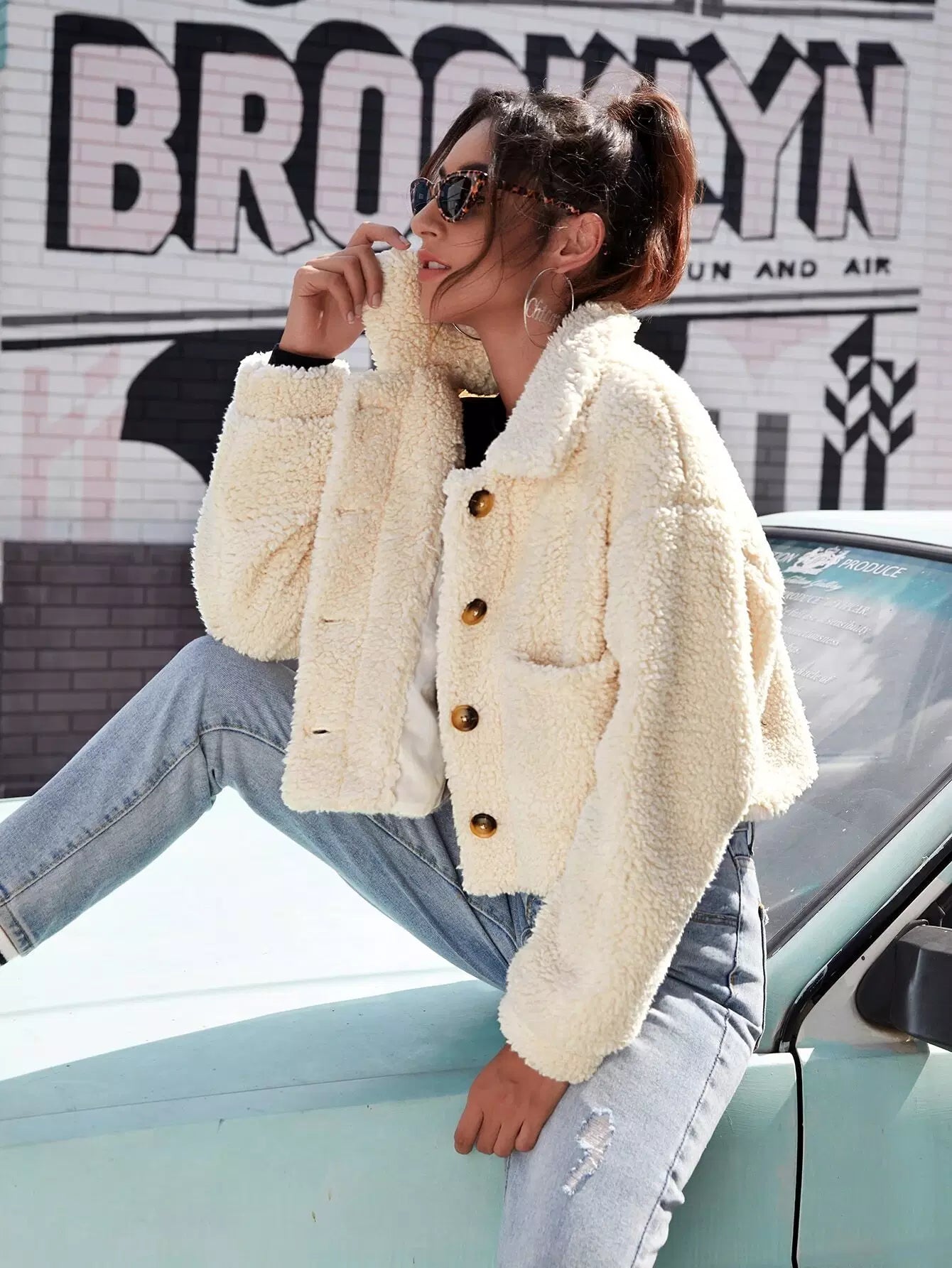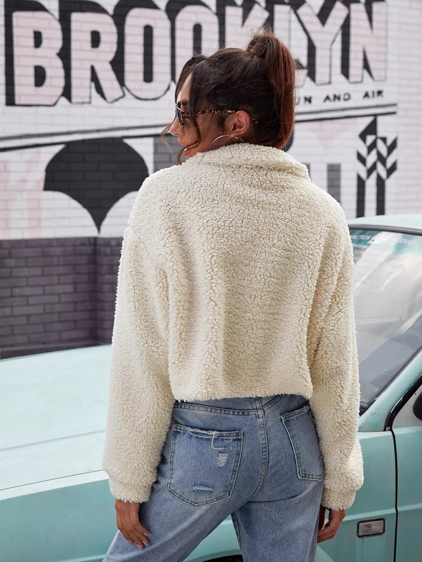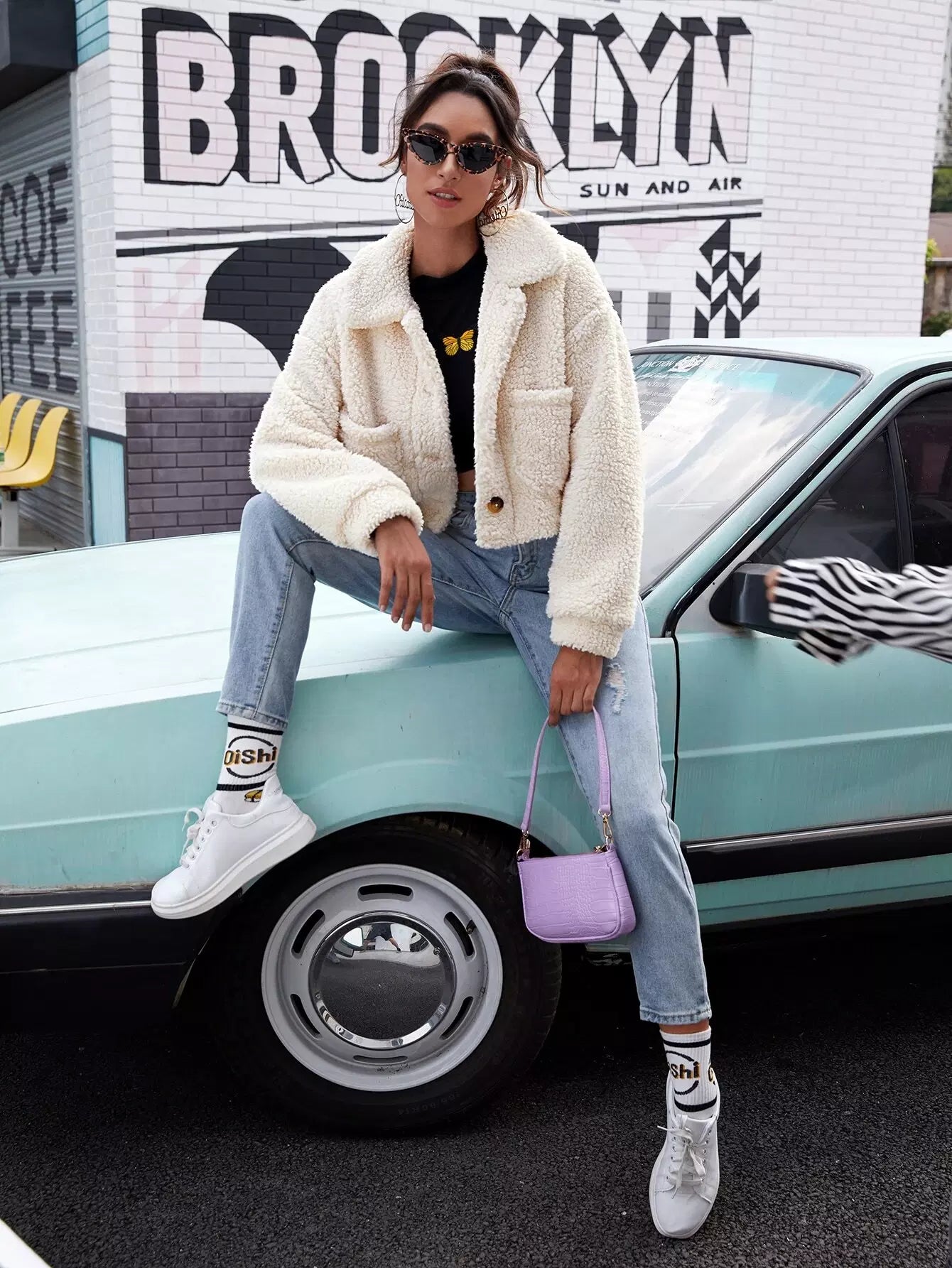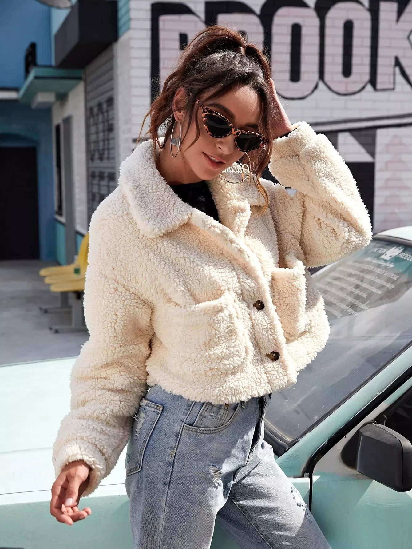 جاكيت تيدي بجيب منسدل الكتف برقعة منسدلة