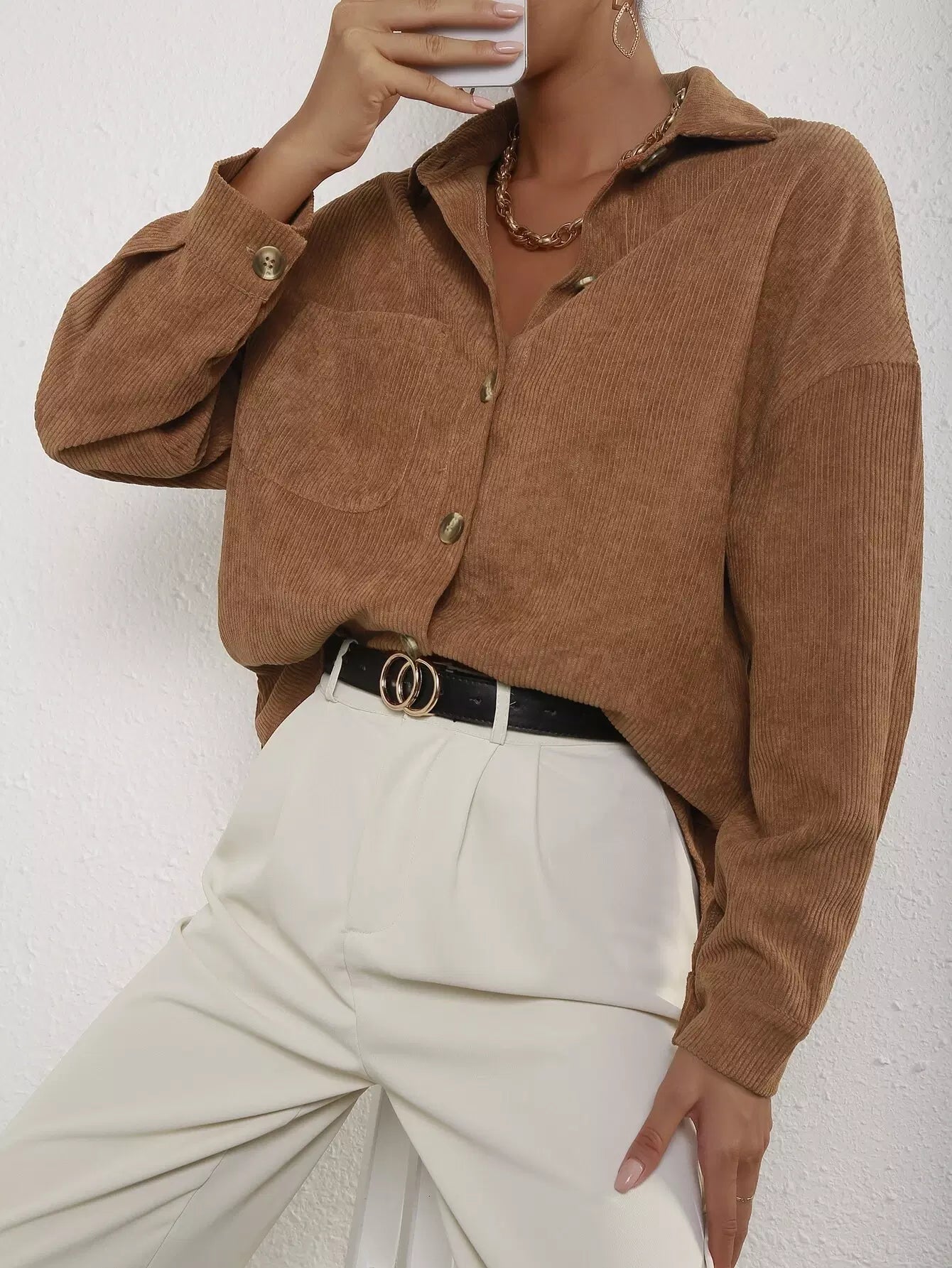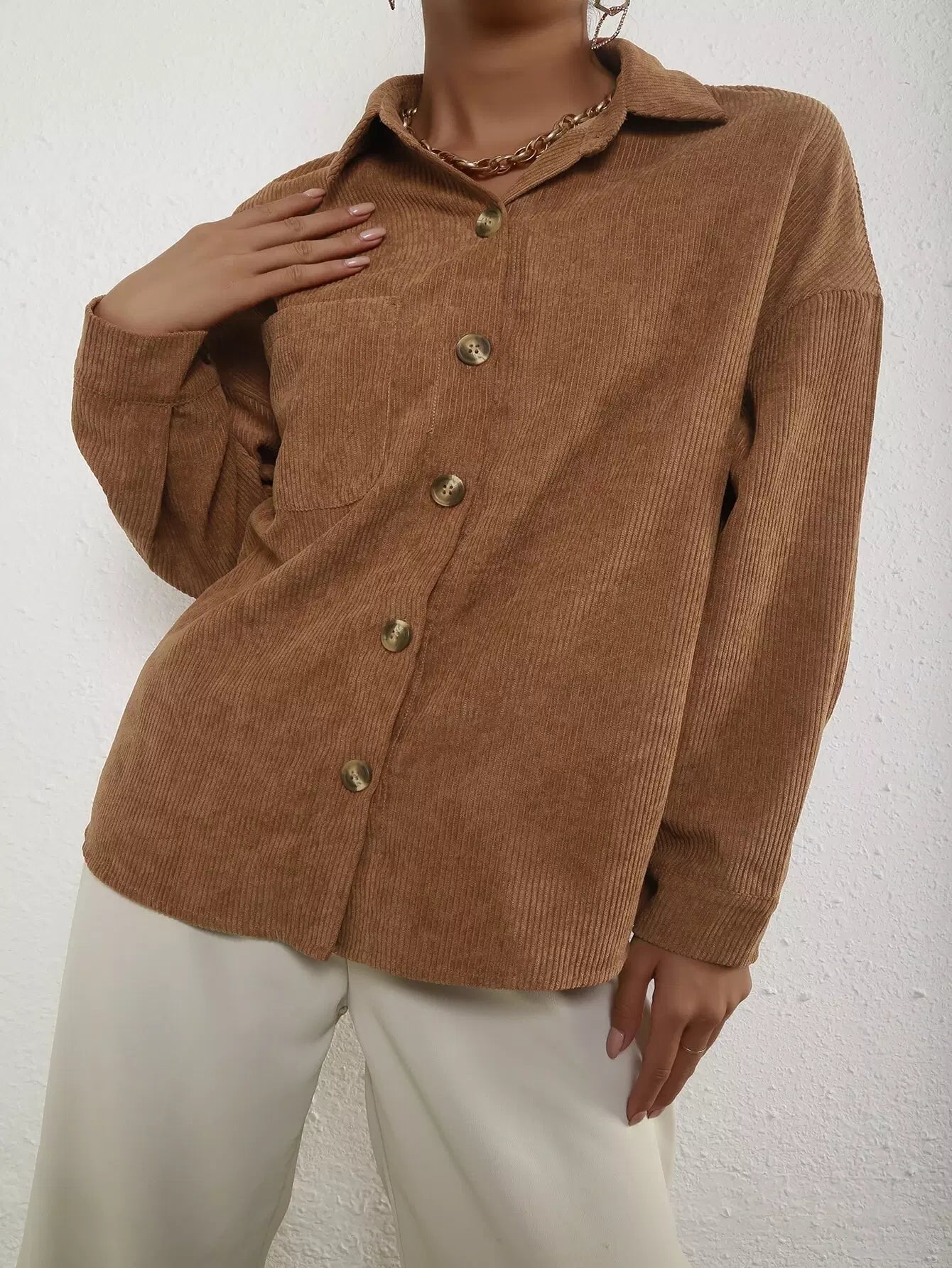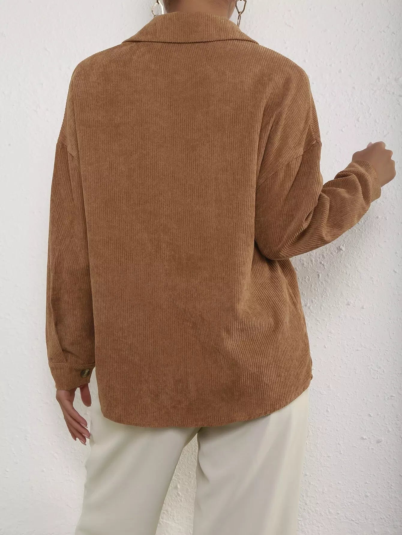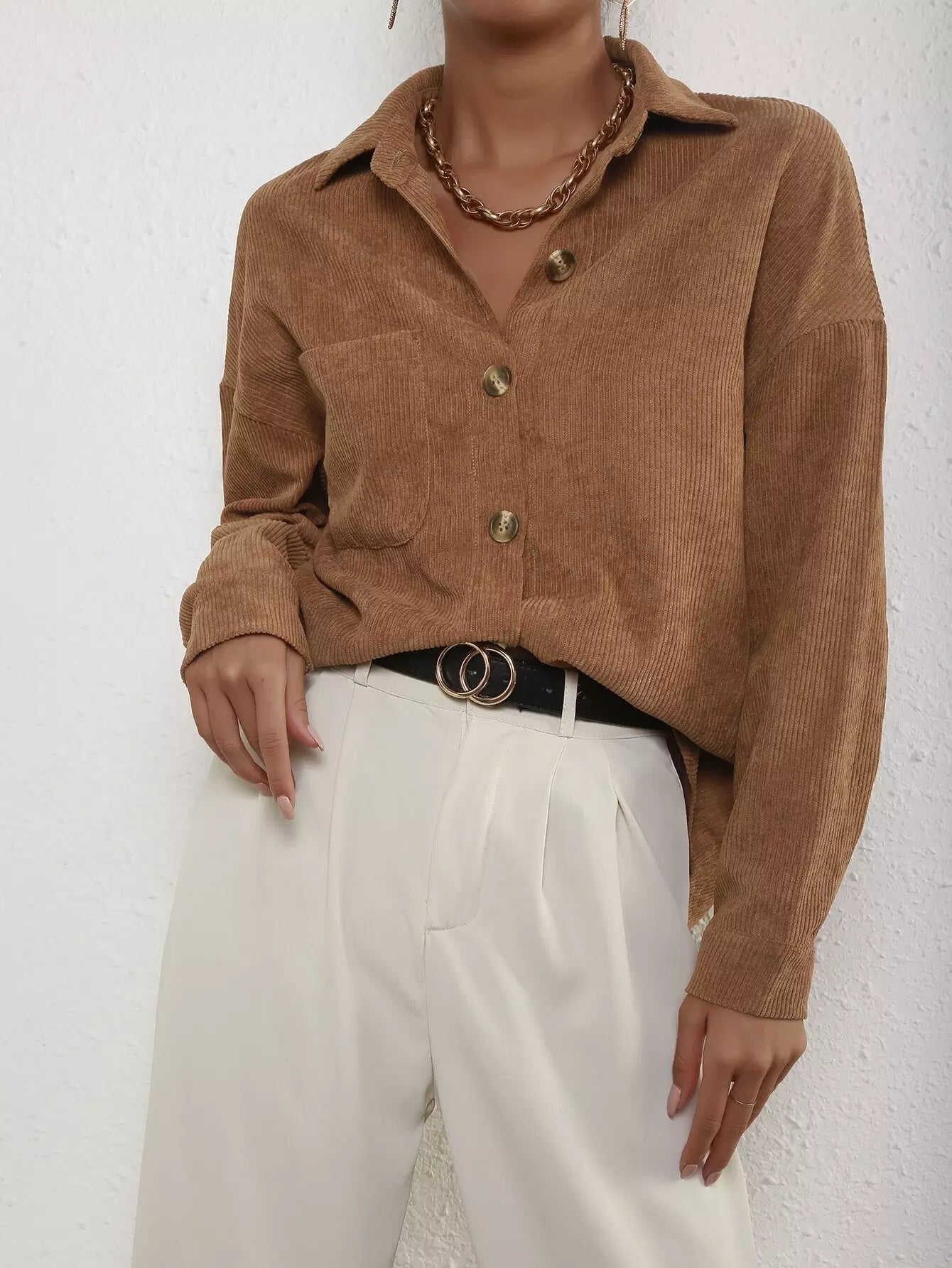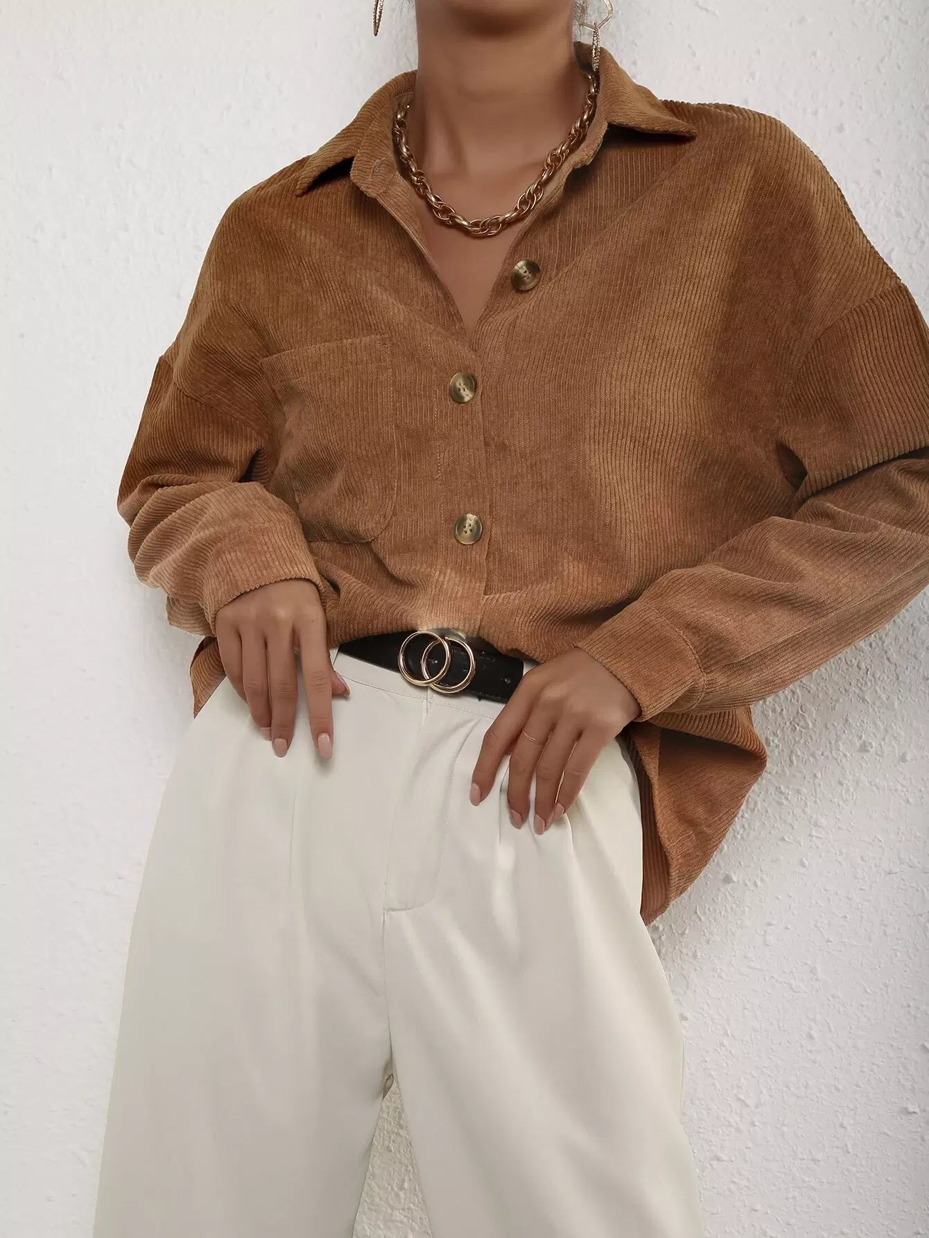 قميص سروال قصير قصير قصير منسدل الكتف مرقع بجيب منسدل