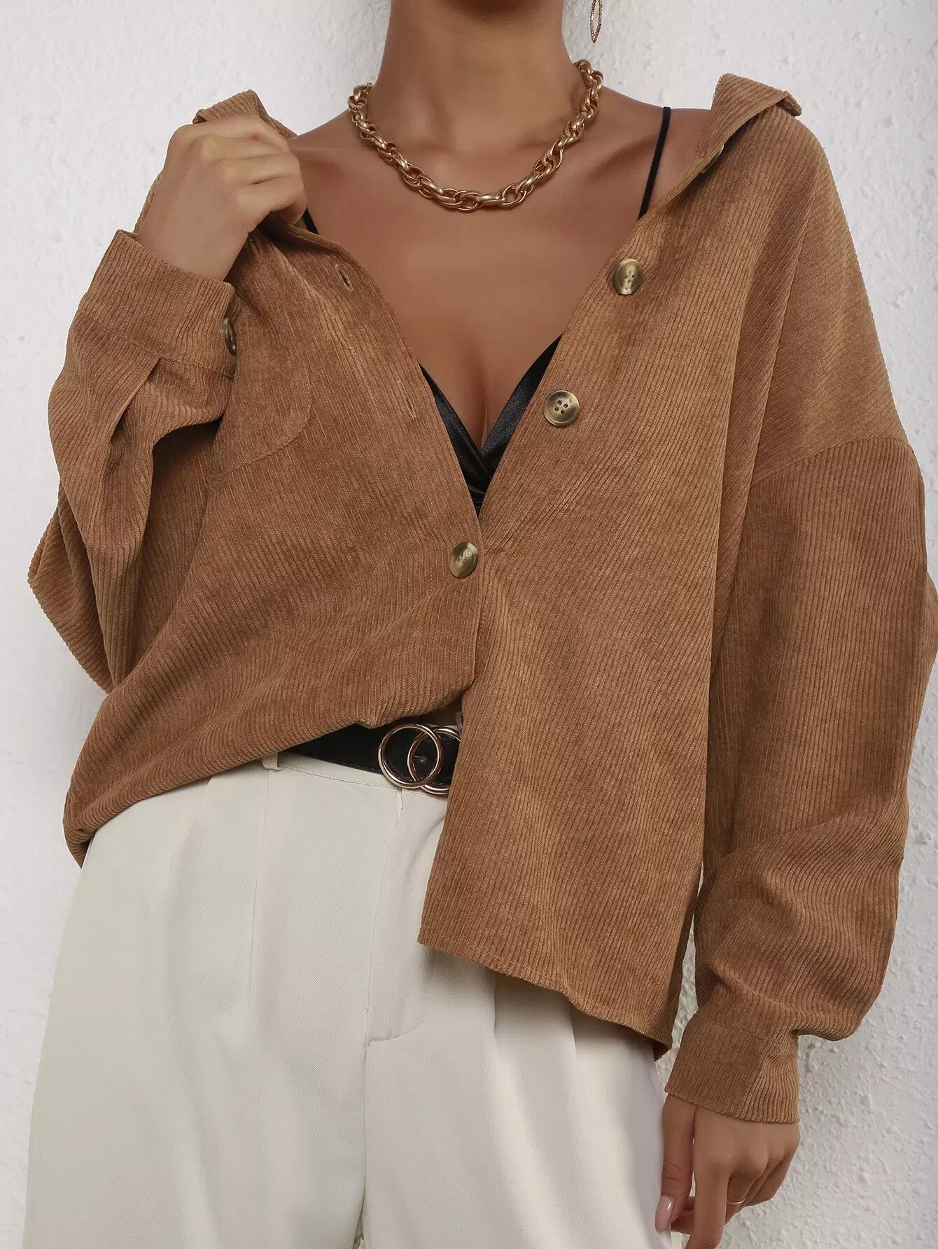 للنساء - قميص سروال قصير مرقع بجيب منسدل الكتف