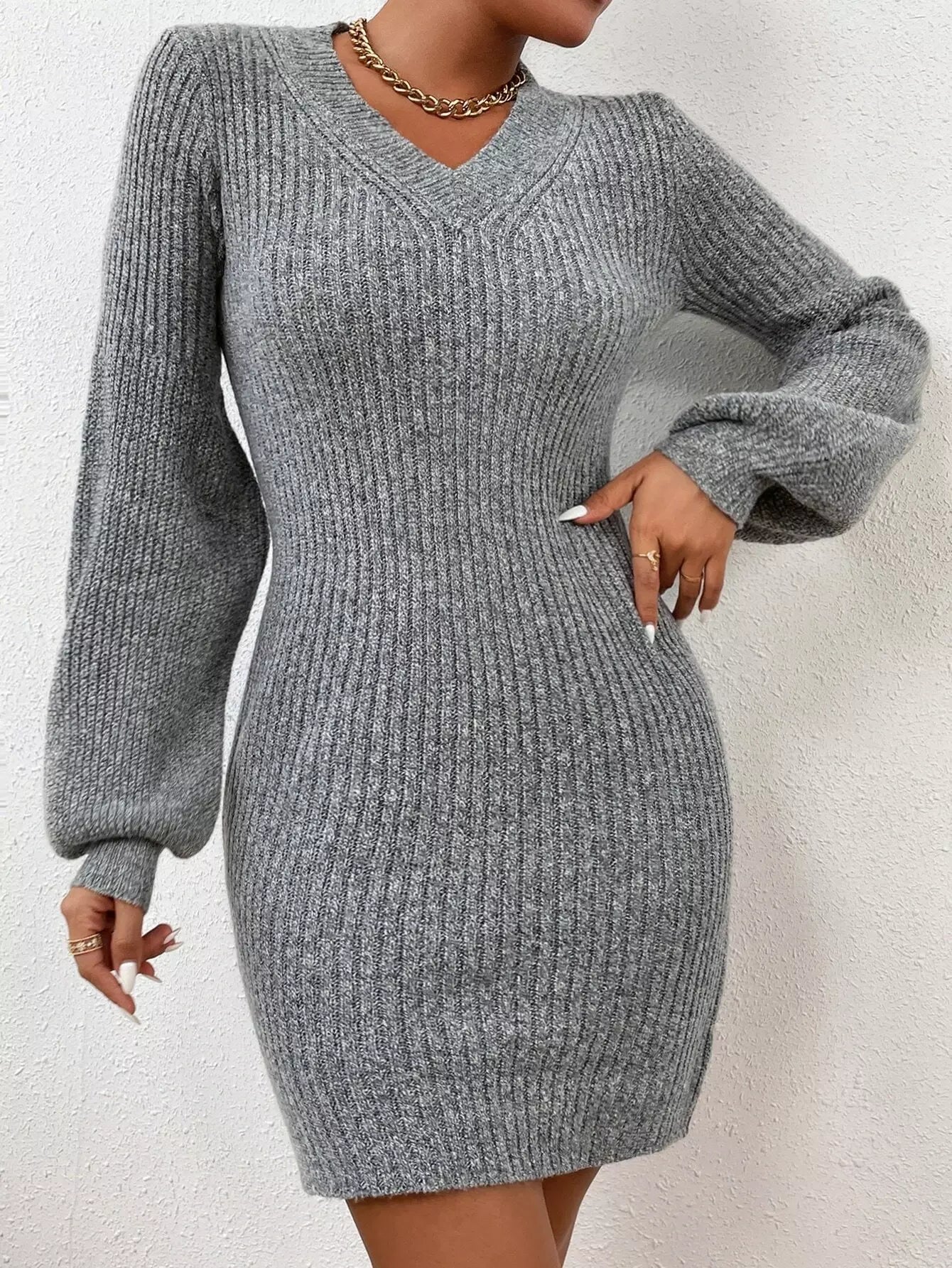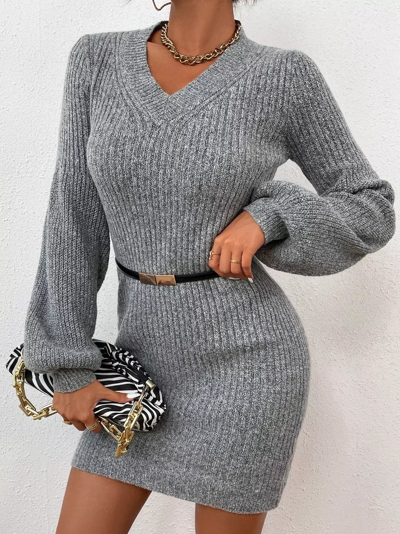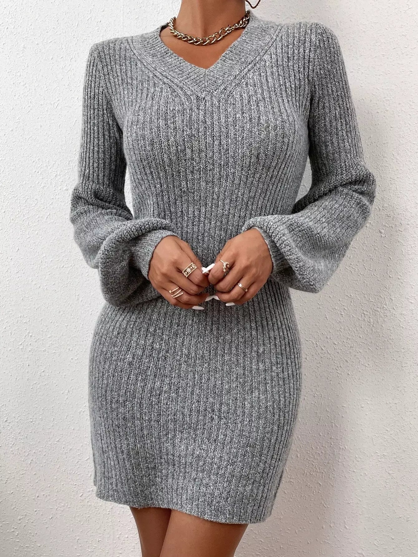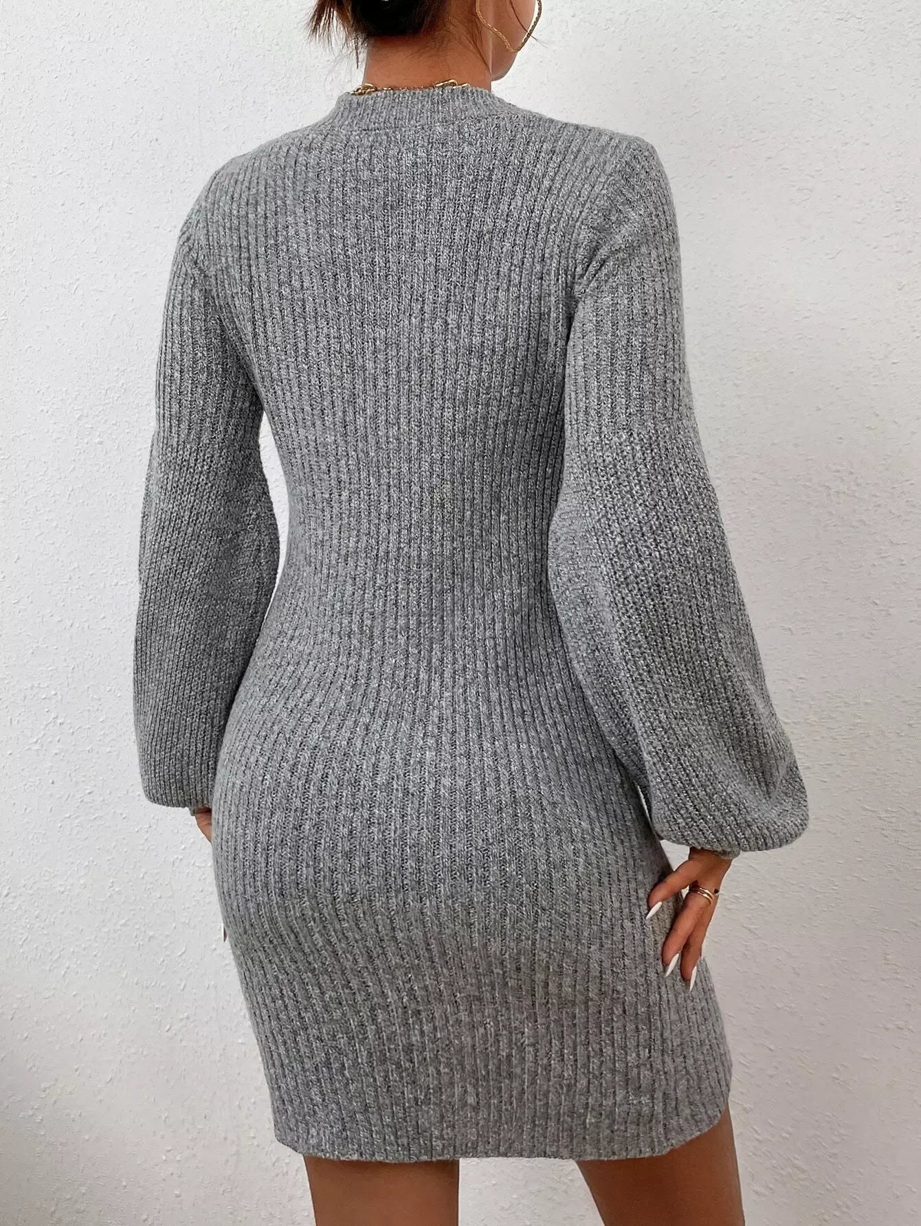 للنساء - فستان سترة مضلع بأكتاف منسدلة بدون حزام