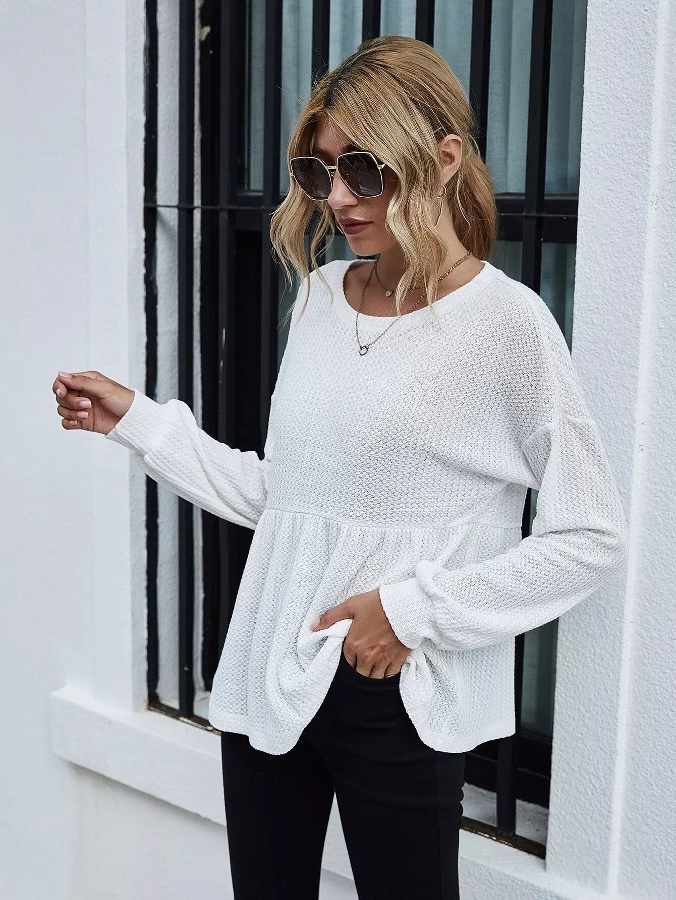للنساء - تي شيرت بحاشية مكشكشة وأكتاف منسدلة