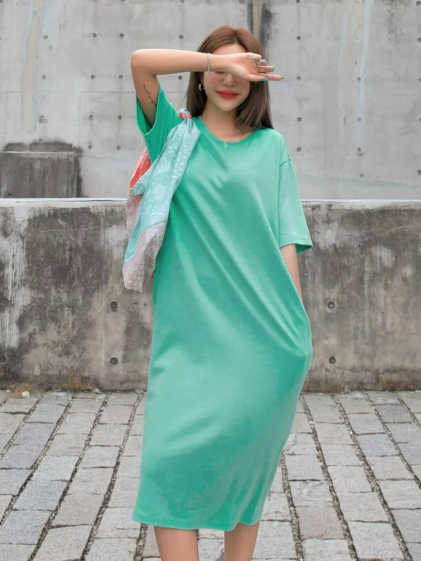 فستان بدون أكتاف منسدل الكتفين سادة