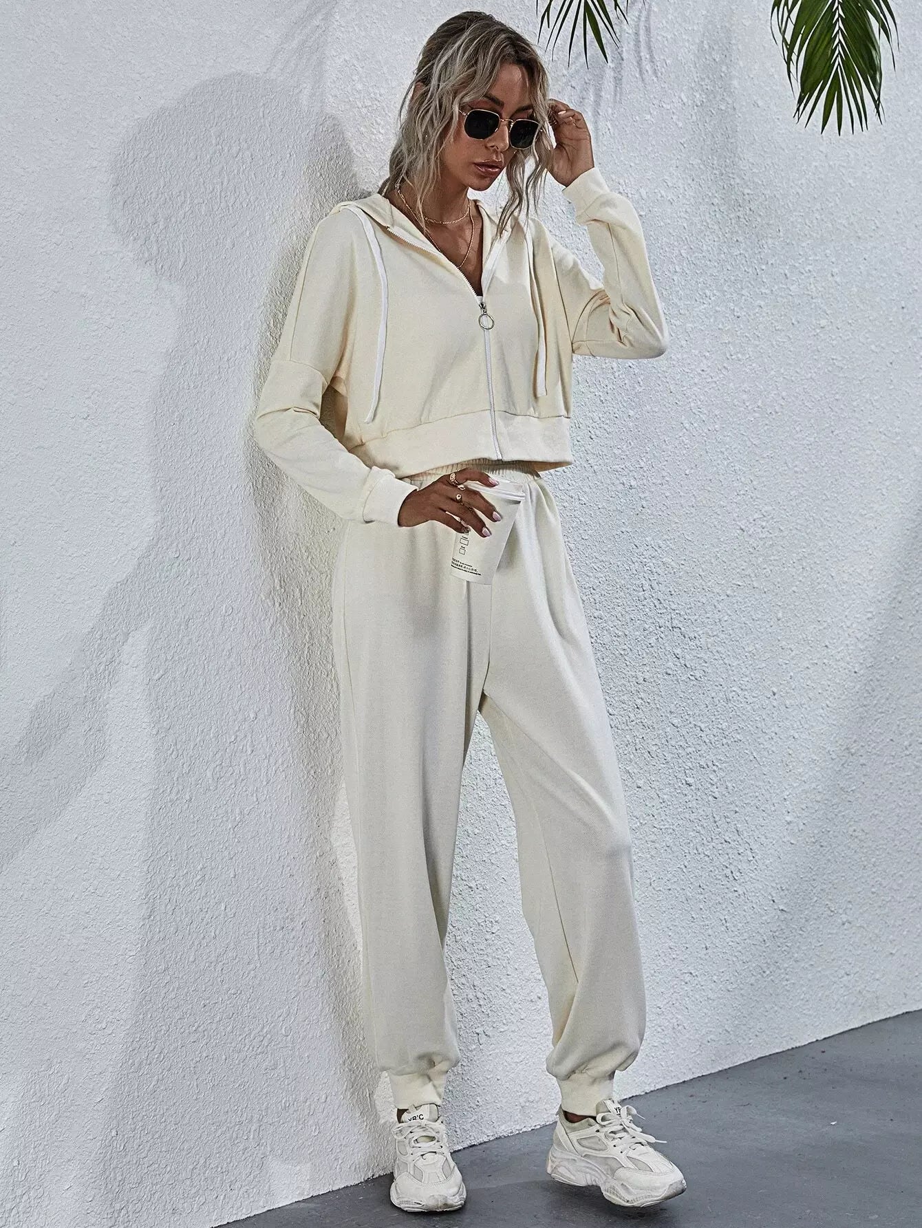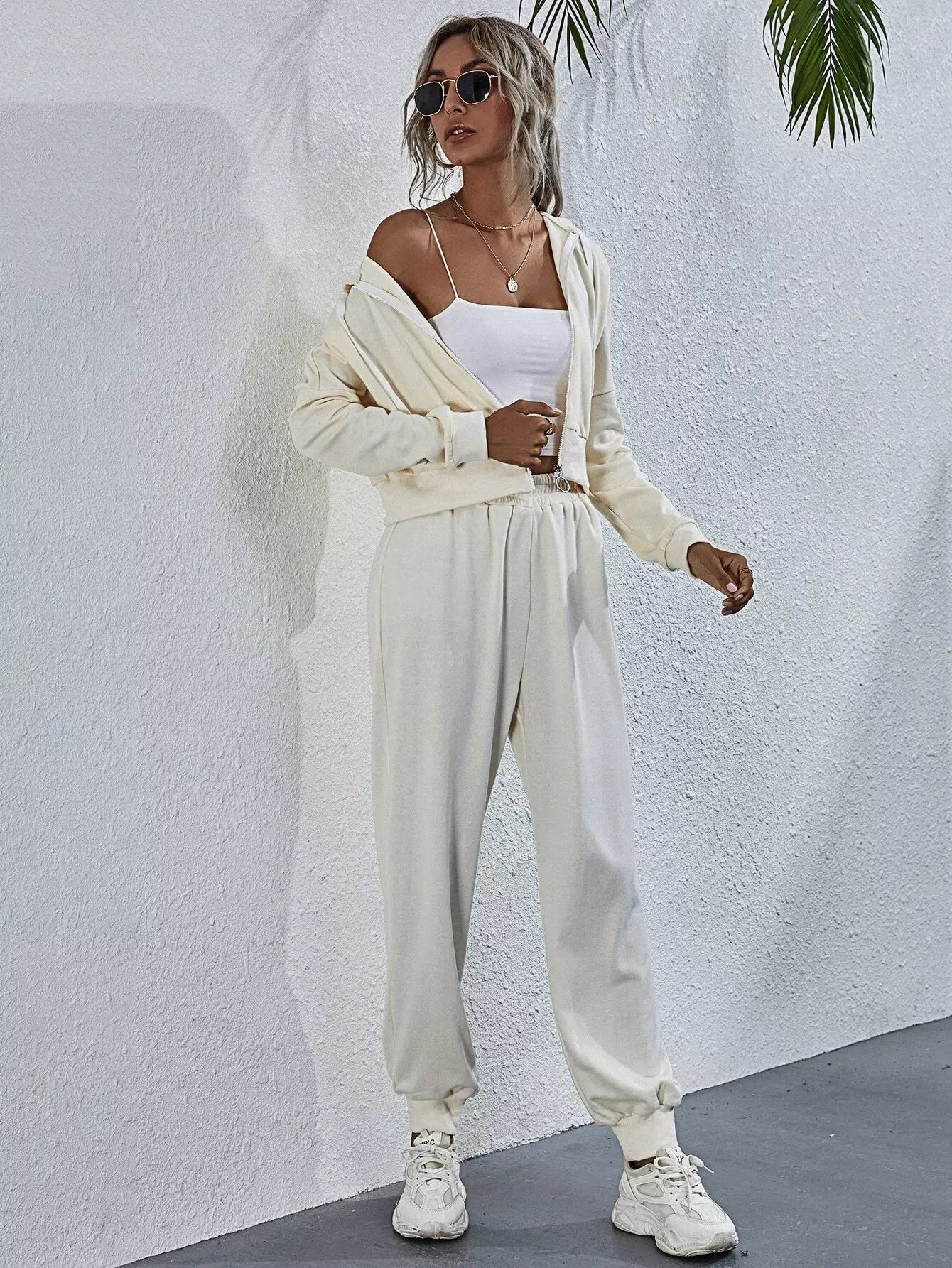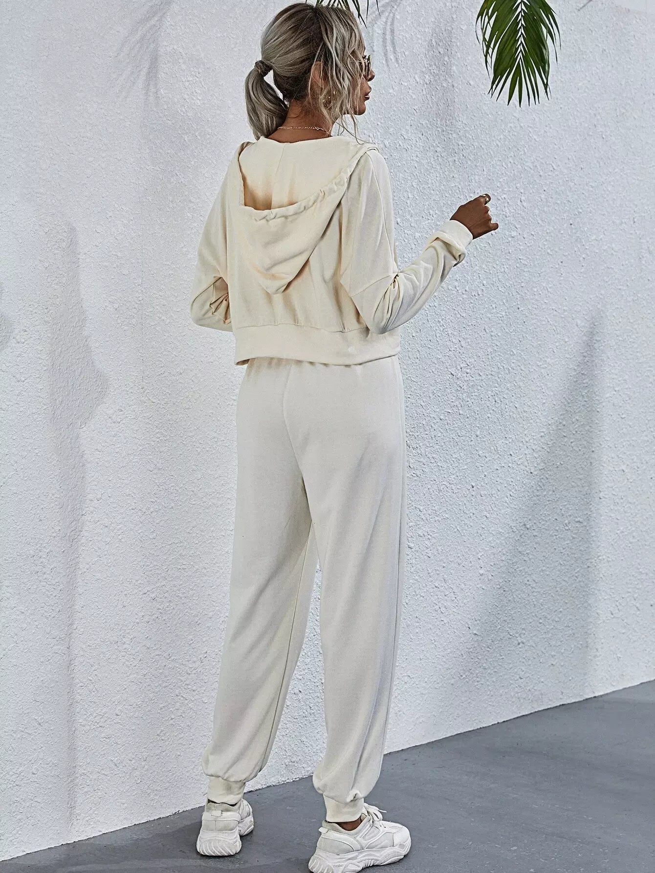 هودي منسدل الكتفين بسحاب وسراويل رياضية