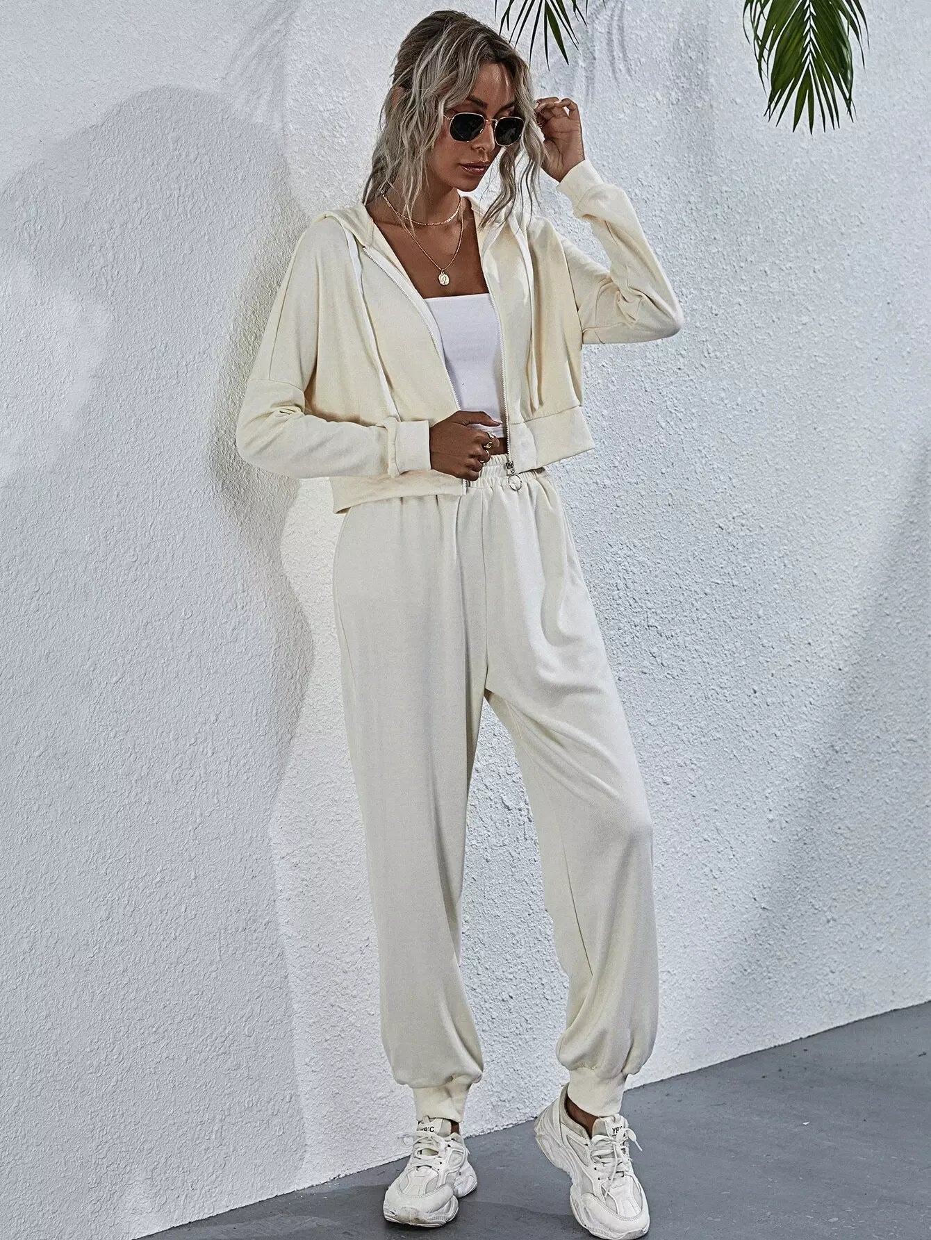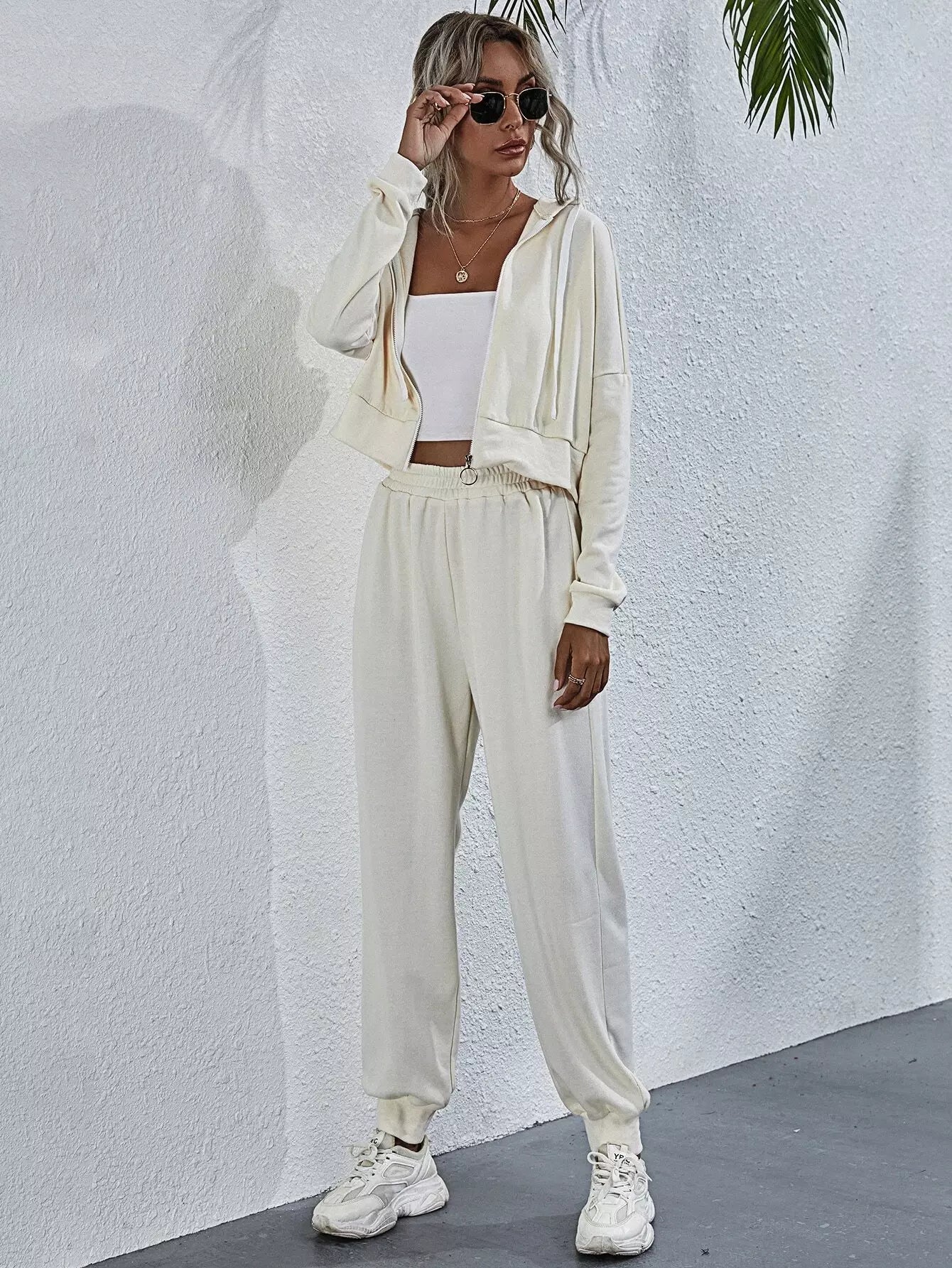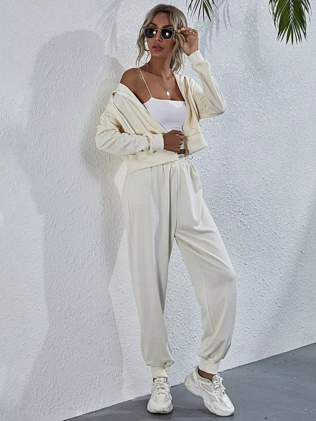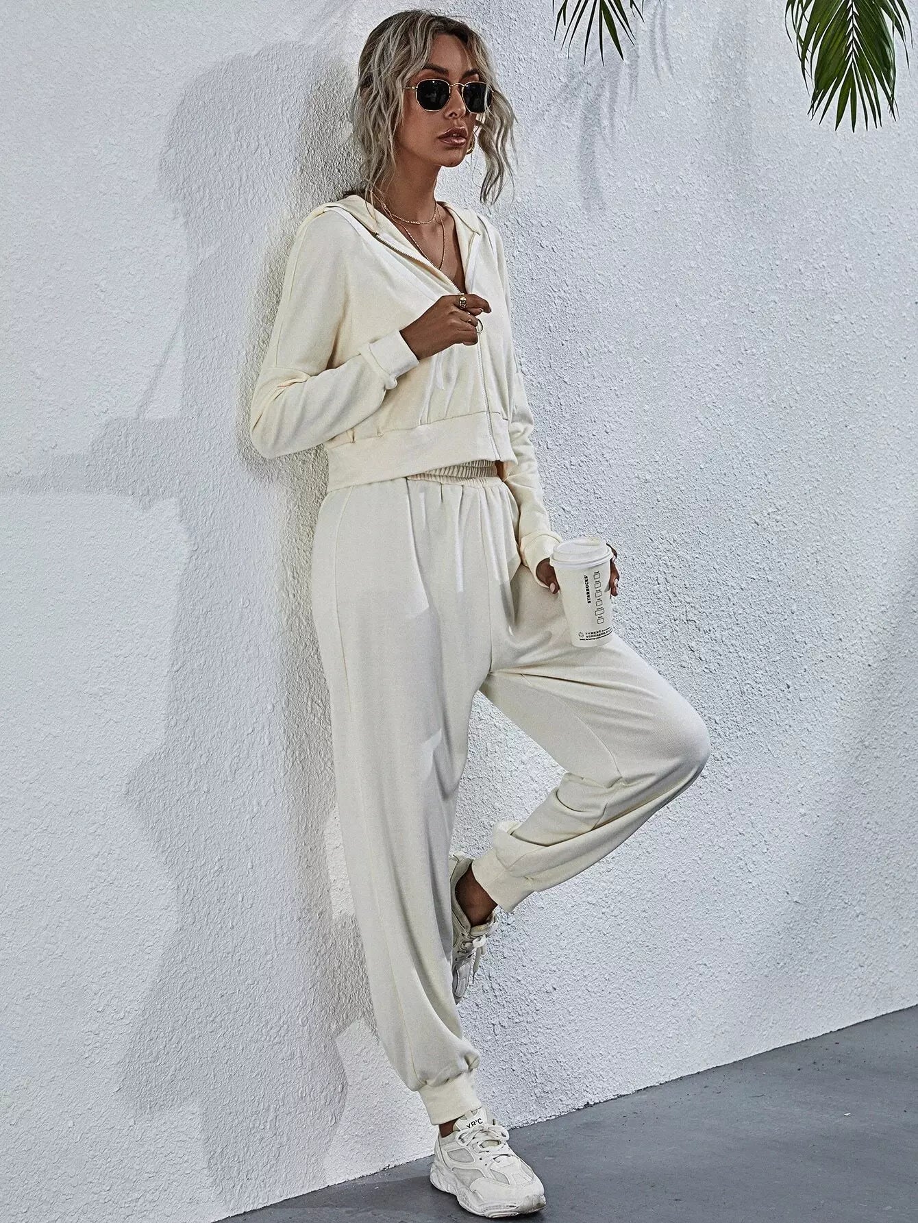 هودي منسدل الكتفين بسحاب وسراويل رياضية