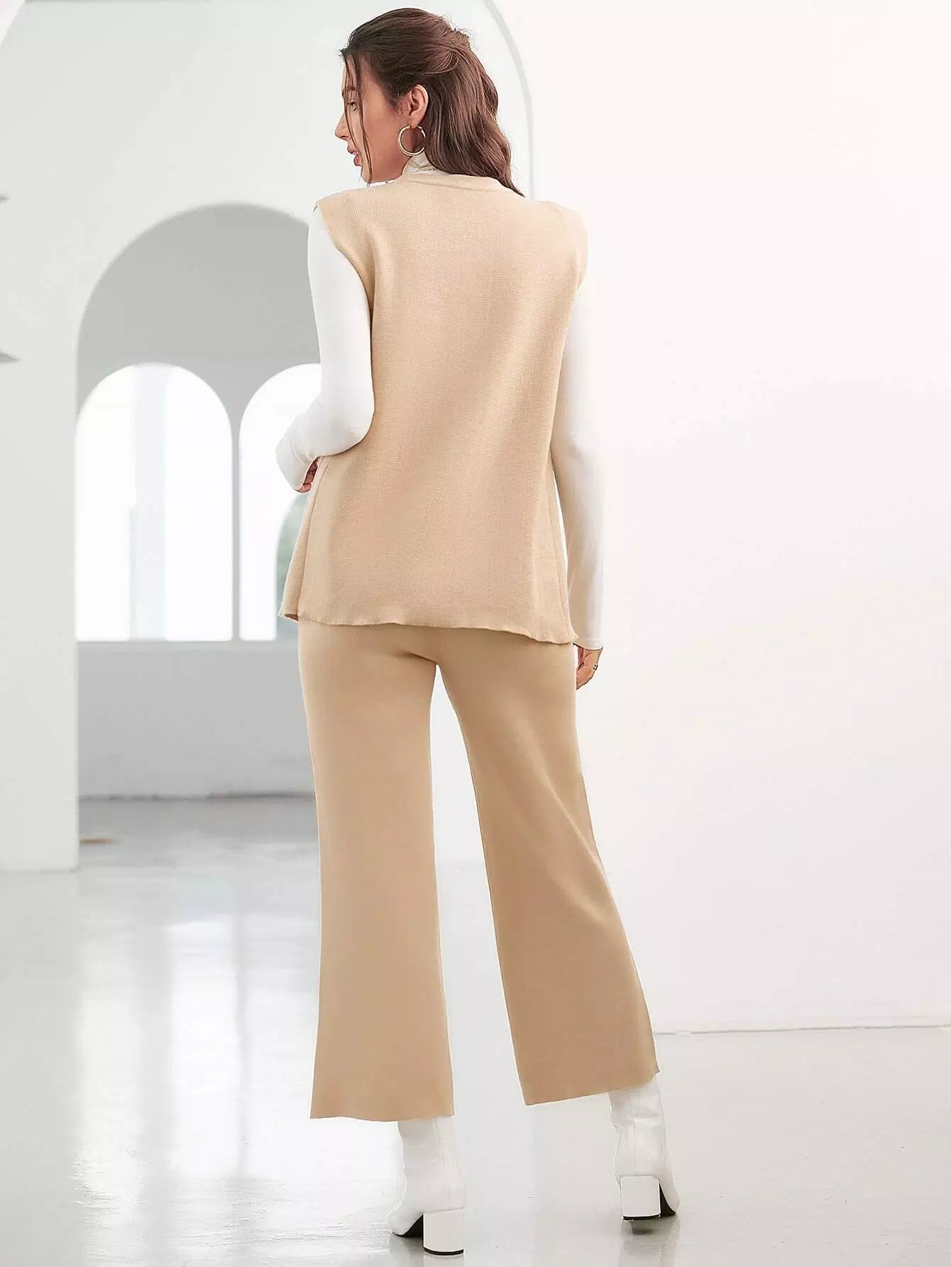 سترة كارديجان بجيوب مزدوجة وبنطلون محبوك بدون بلوزة