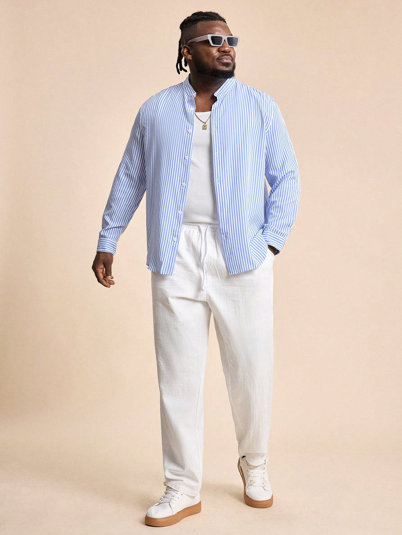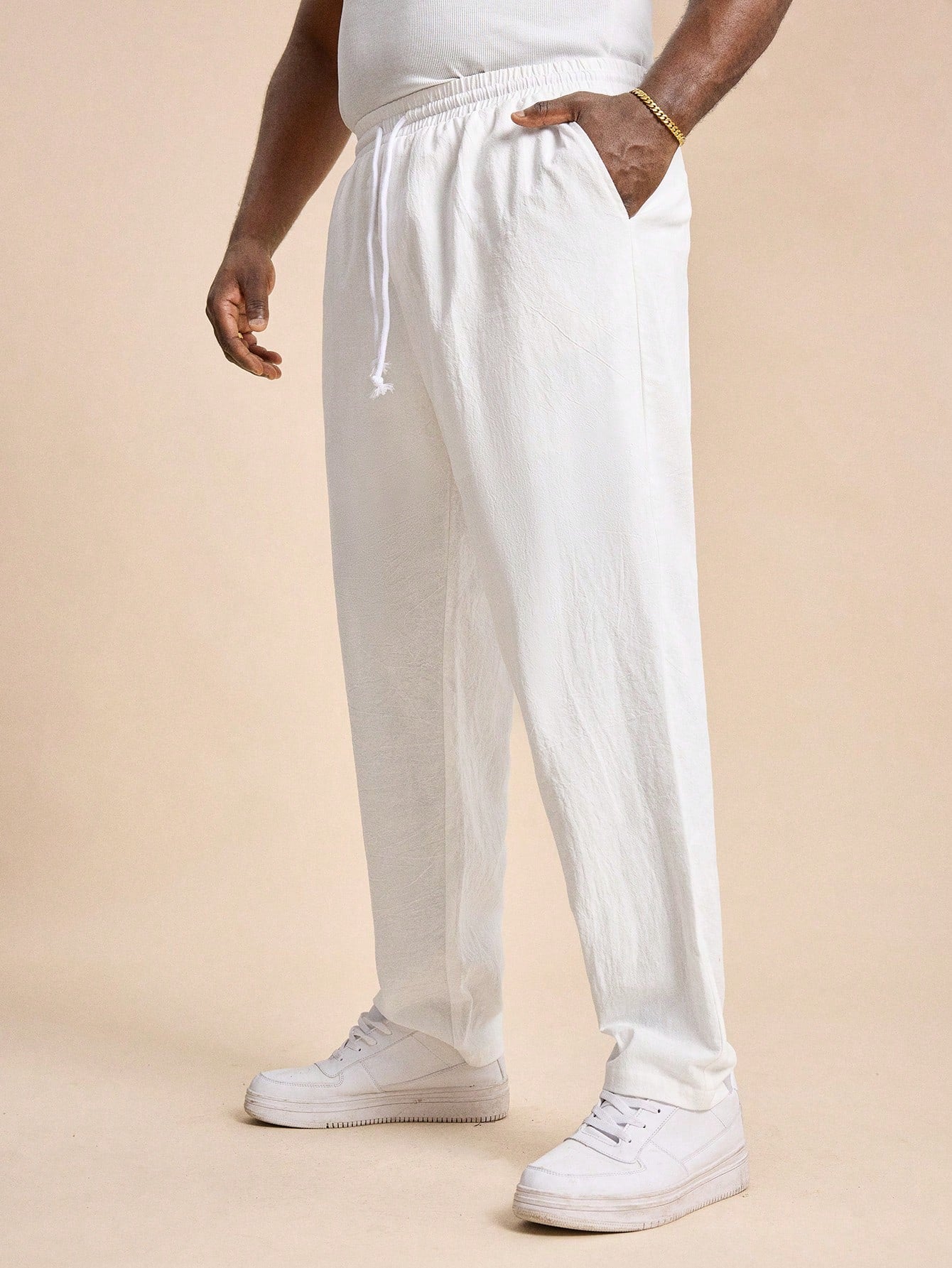 بنطال رجالي طويل أبيض منسوج بقصة ضيقة، مقاسات كبيرة من إيزيفو، مناسب للارتداء اليومي، بمقاسات كبيرة.