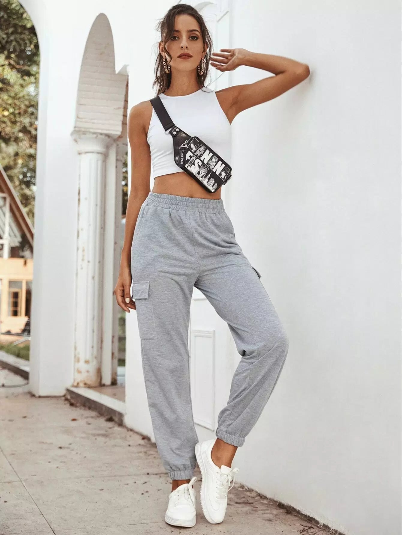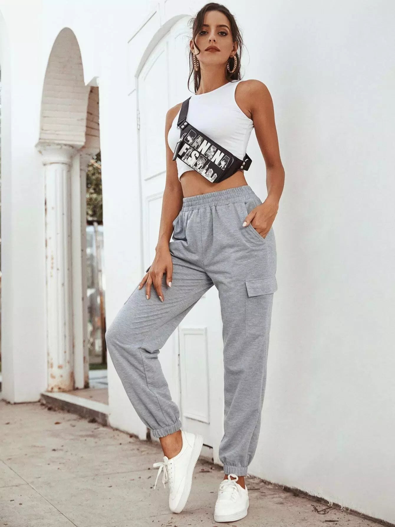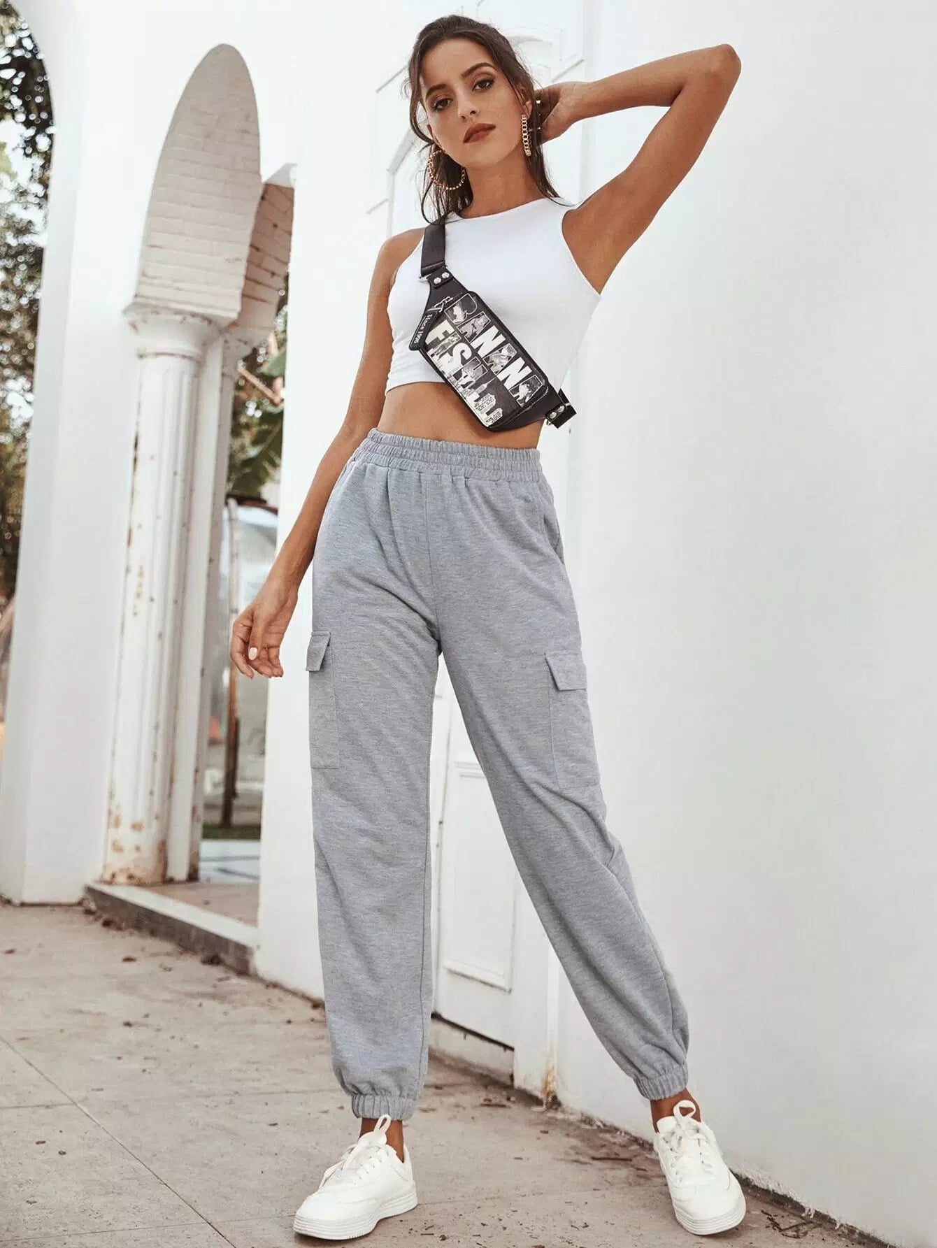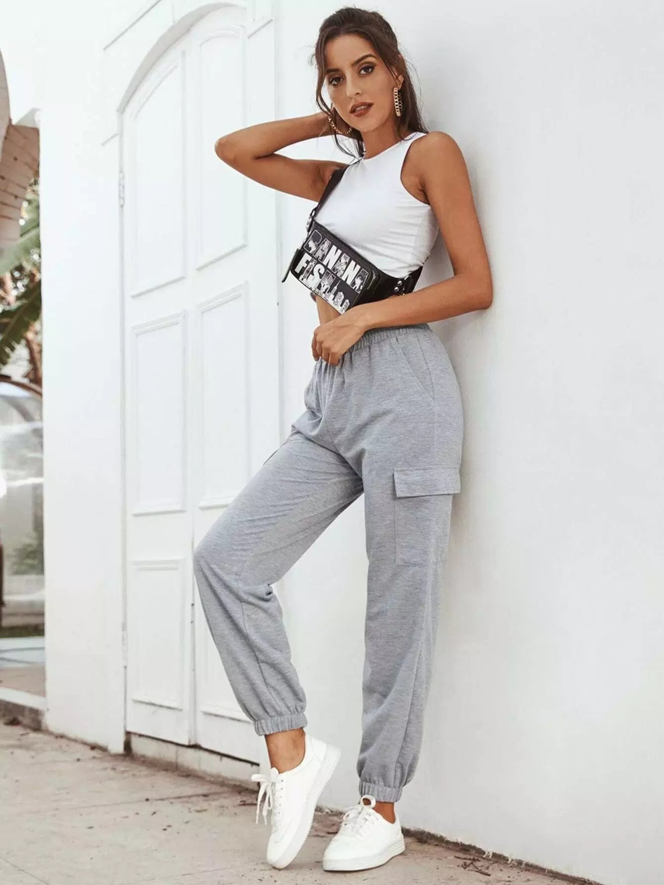 بنطلون رياضي بخصر مطاطي بخصر مطاطي