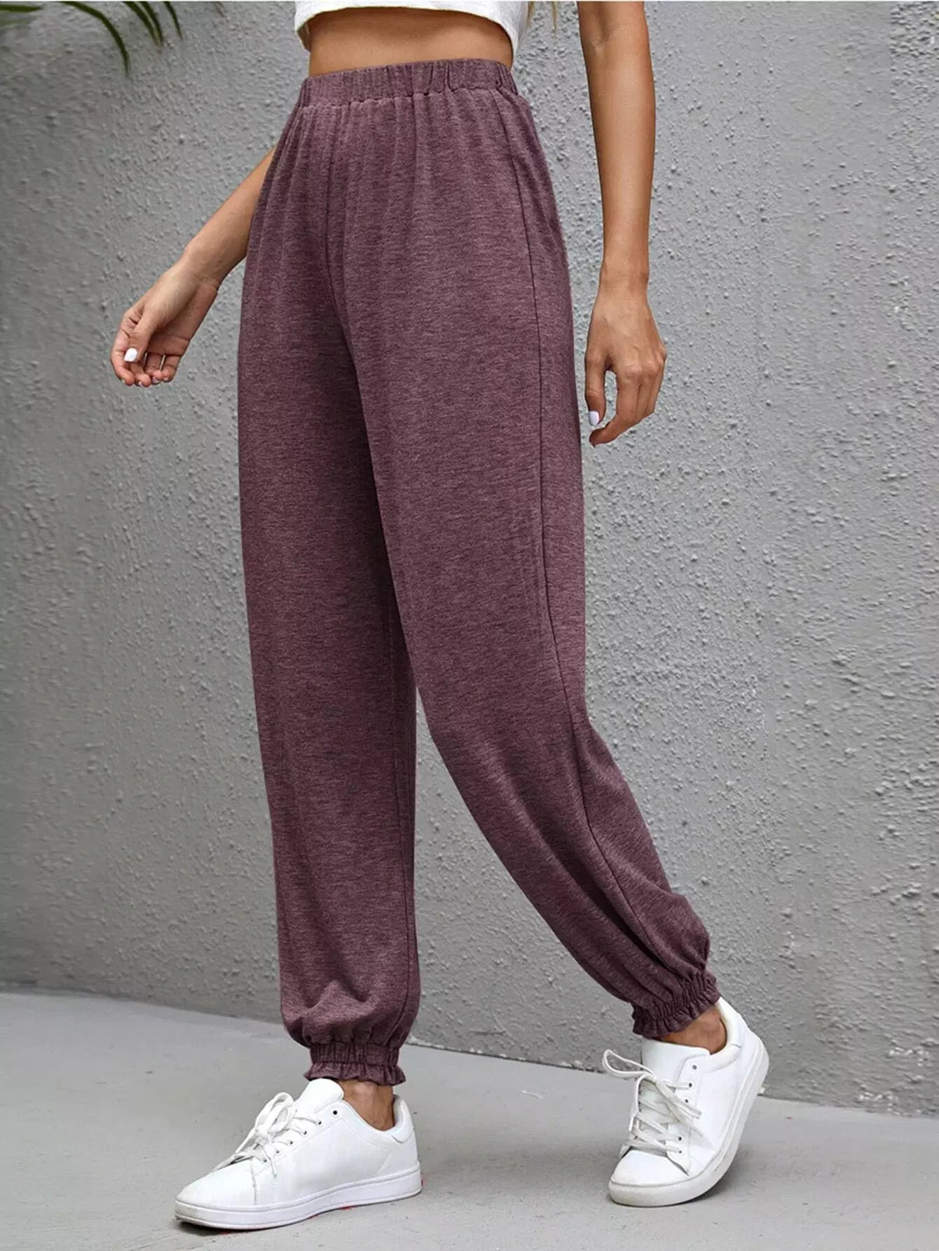بنطلون رياضي بخصر مطاطي سادة