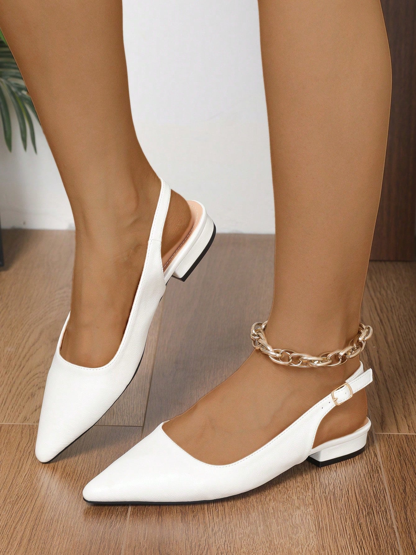 أحذية نسائية أنيقة بلون موحد - مزودة بحزام للكاحل