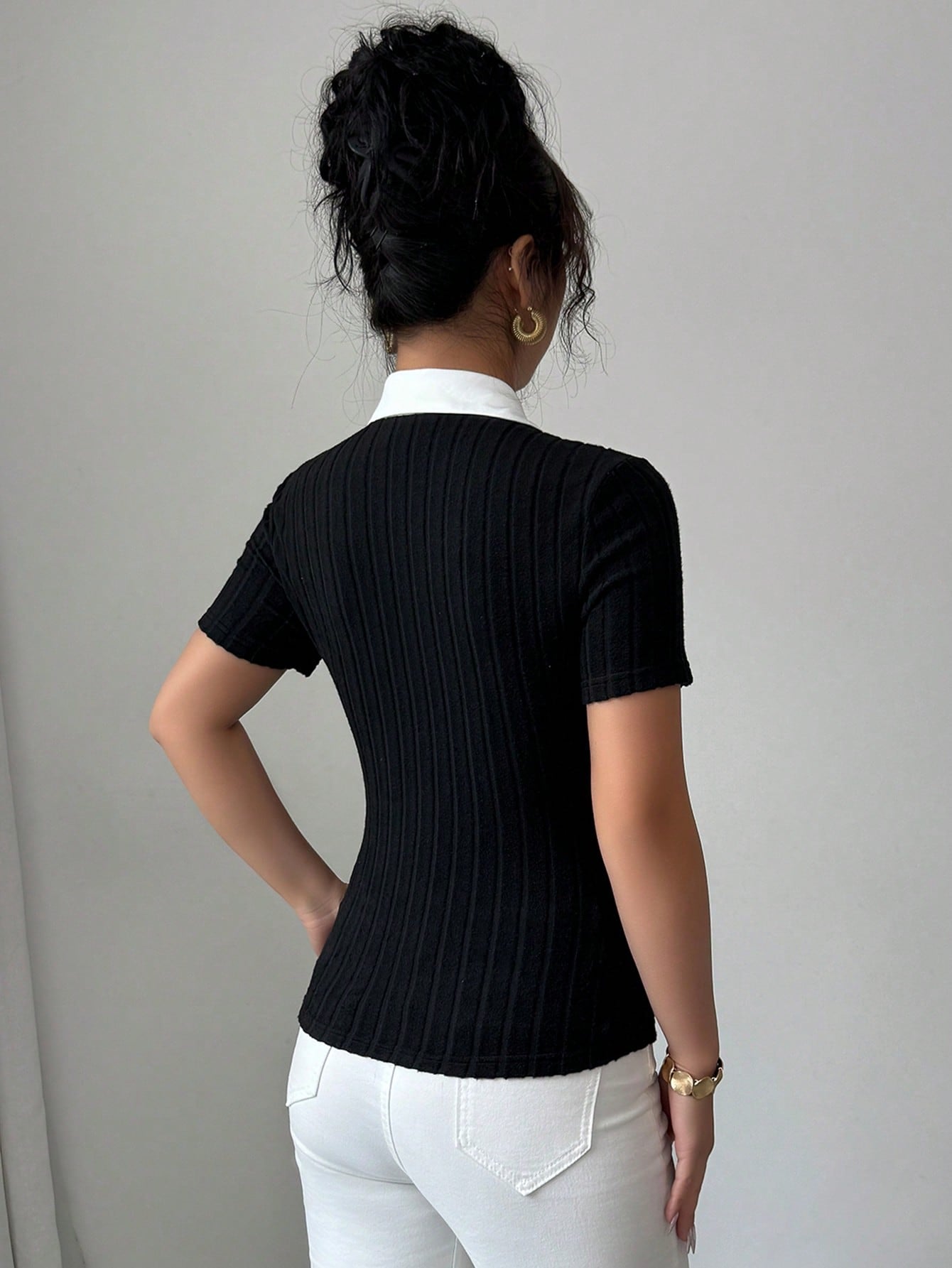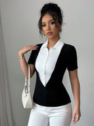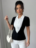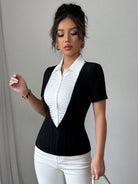 Elenzga Casual Vacation & Commute 2 In 1 Shirt Collar T-Shirt For Women