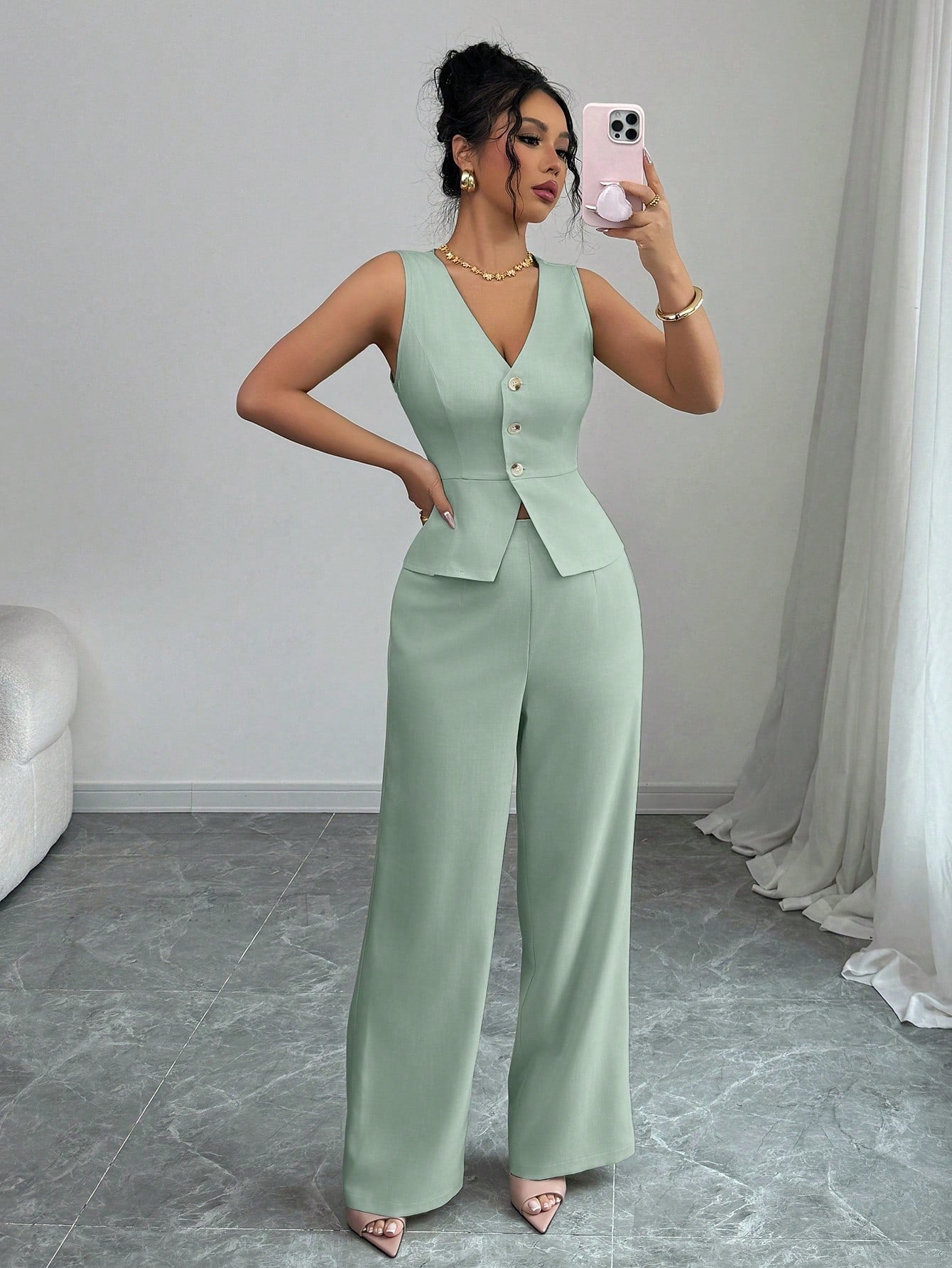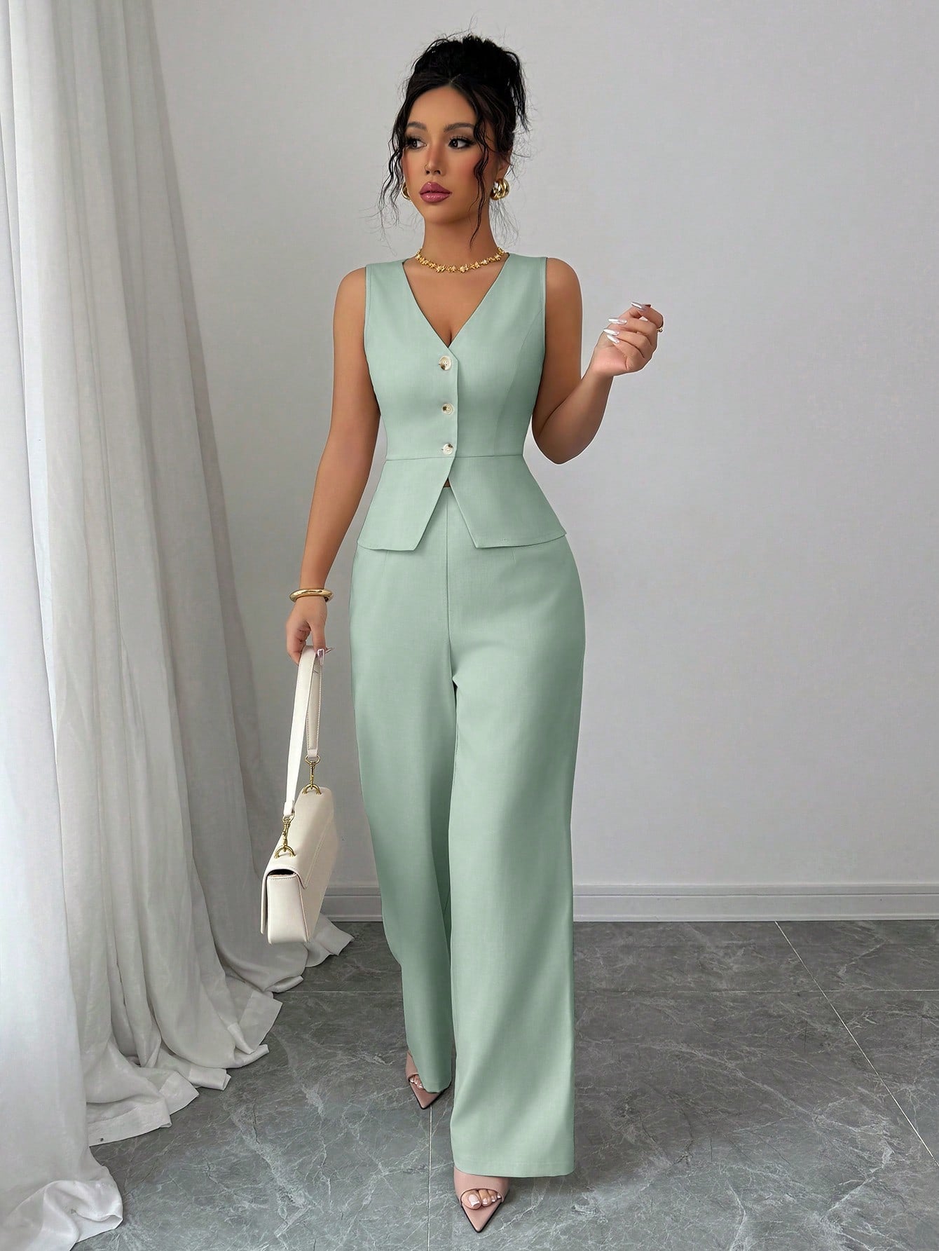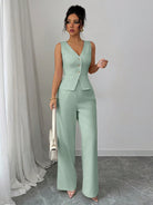 طقم بدلة نسائية أنيقة بدون أكمام من إيلينزغا، يتكون من بليزر وبنطال