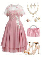 فستان Ellevyn نسائي بمقاسات كبيرة من الشيفون بلون أزرق داكن، أنيق لحفلات الزفاف والحفلات، ربيع/صيف