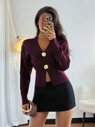 كارديجان نسائي أنيق وعصري بتصميم بسيط وغير متماثل وأزرار محبوكة من إيليريسا