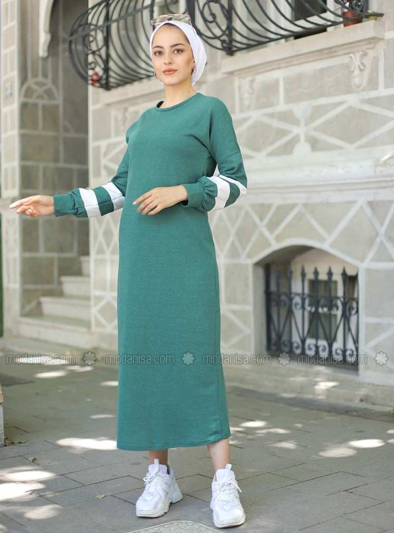 فستان زمردي مخطط غير مُبطن